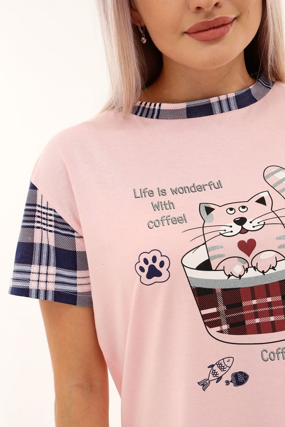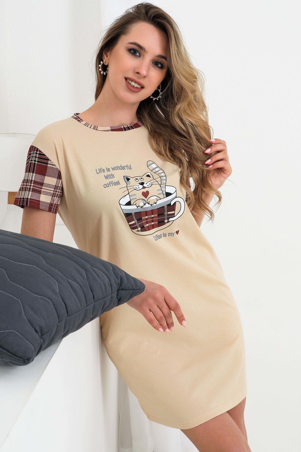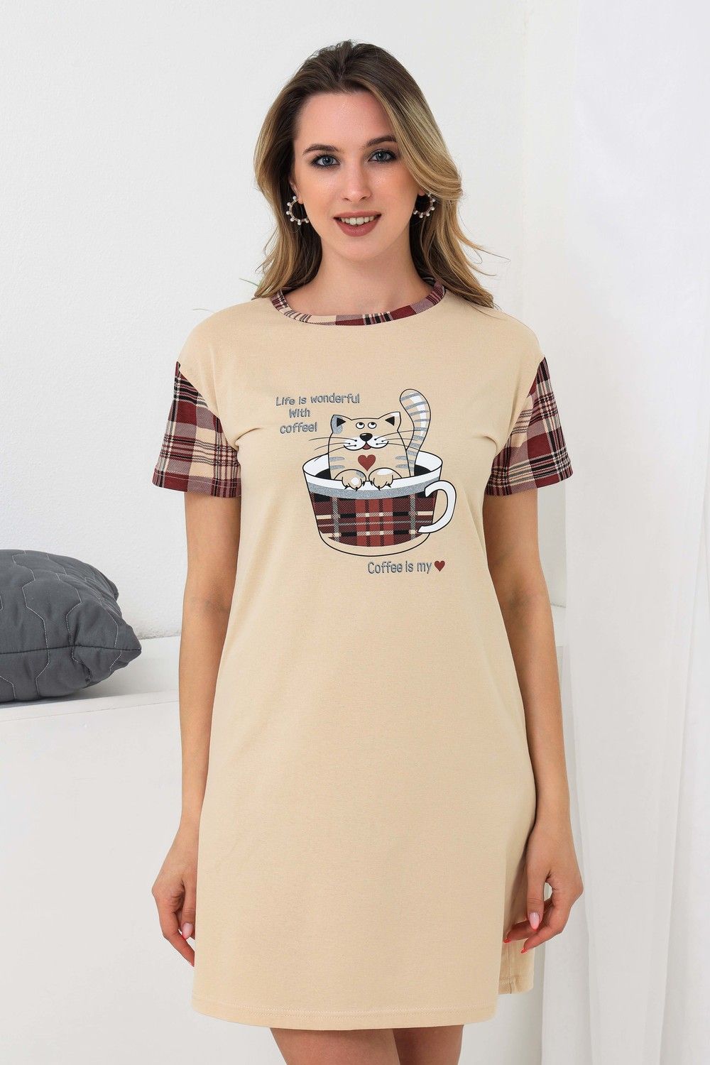 Молодёжная сорочка в виде удлинённой свободной футболки с милым симпатичным принтом. Можно использовать в качестве домашней туники.