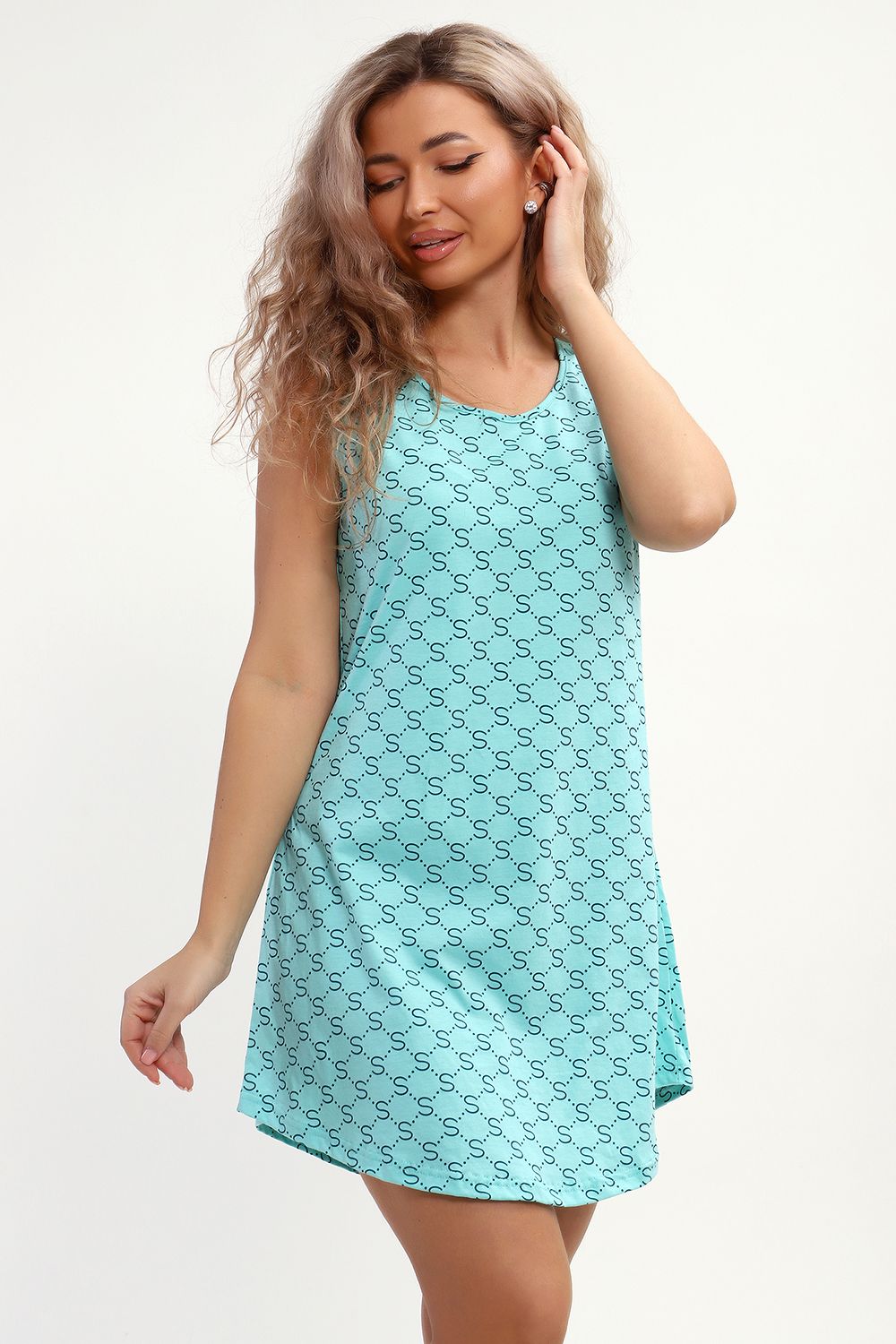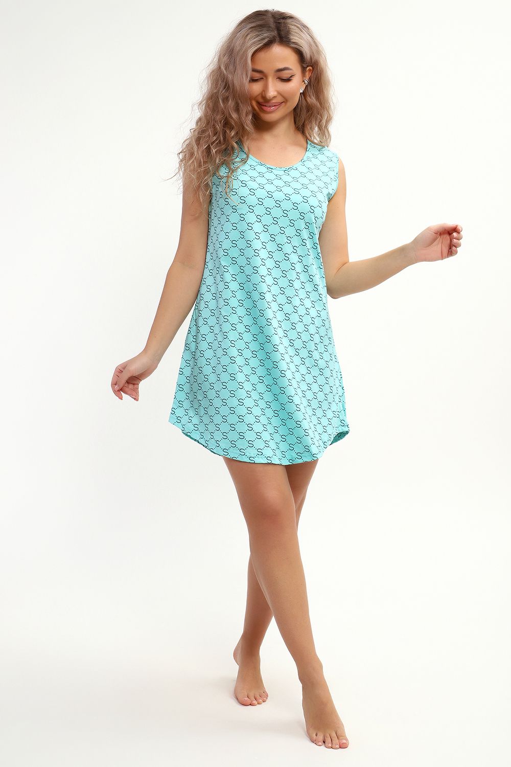 Сорочка маечного фасона без рукава с закругленным подолом. Подходит для сна и отдыха.