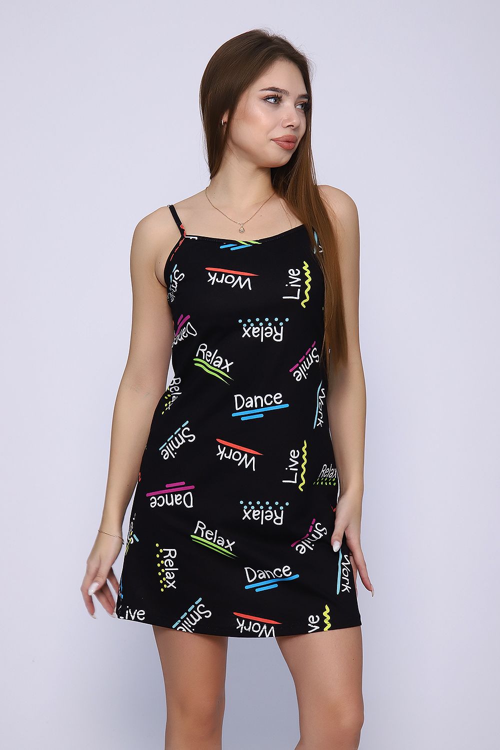 Сорочка женская на бретелях. Данная модель выполнена из трикотажного полотна кулирка (хлопок 100%). Отличная модель для дома и сна.