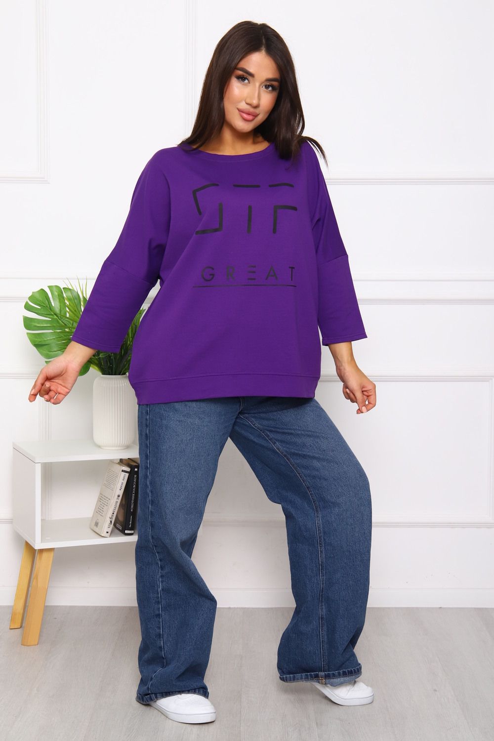 Свитшот 375702 оверсайз трикотажный - фиолетовый