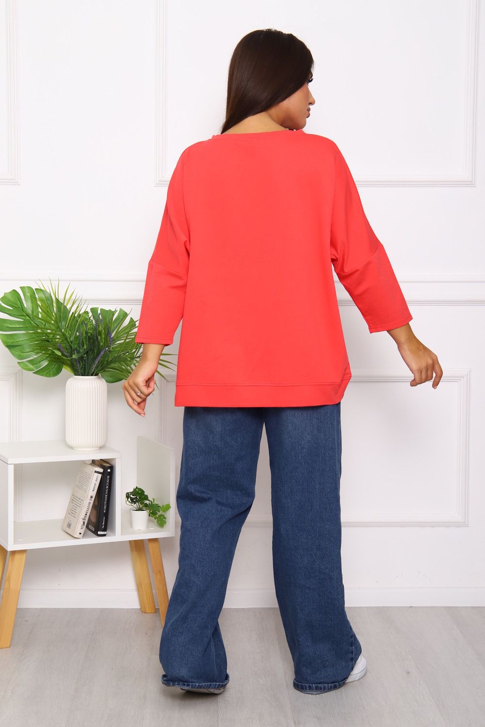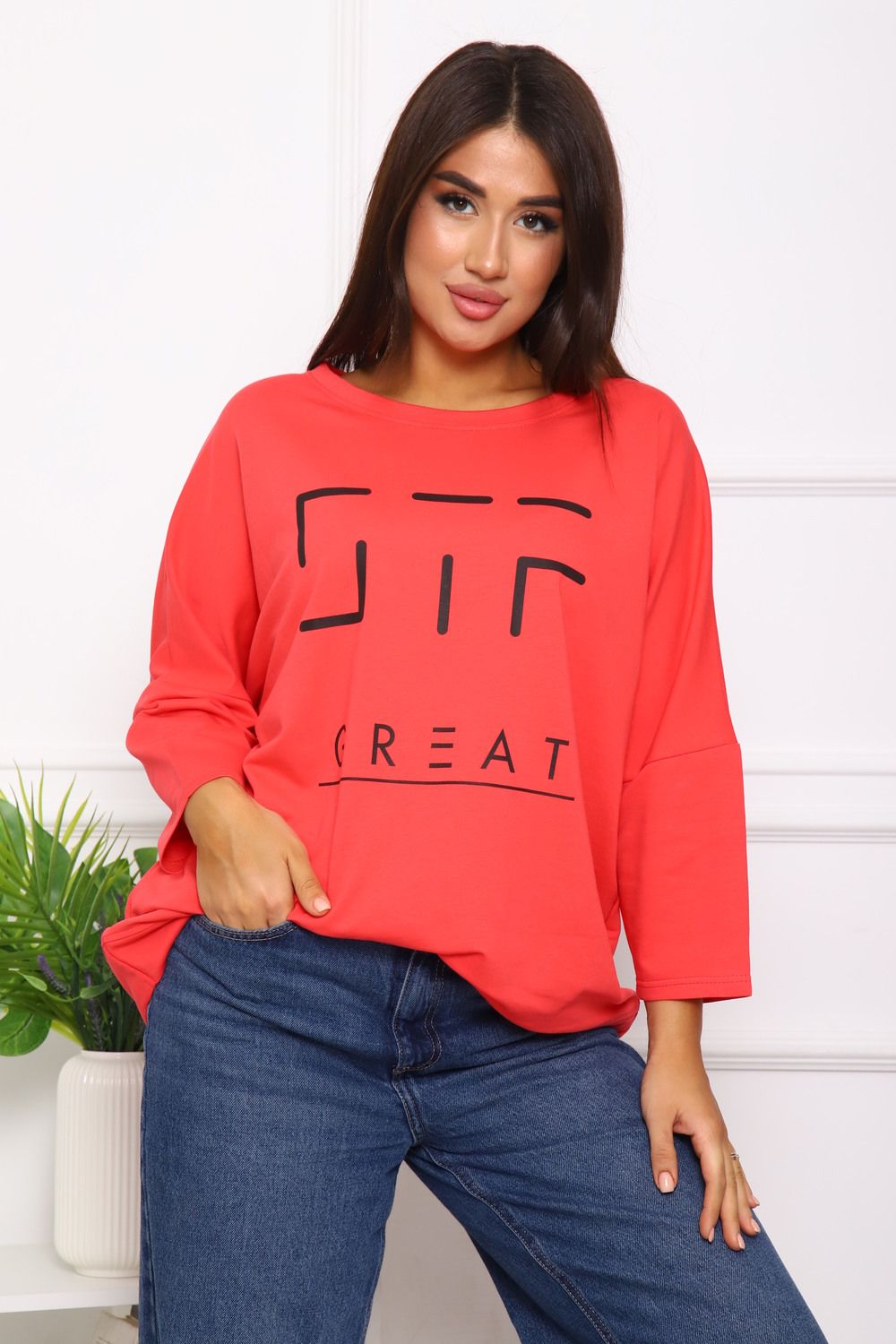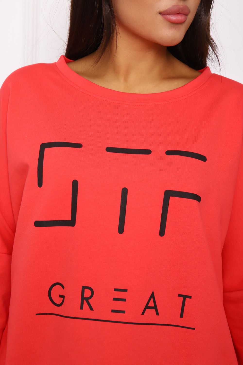 Свитшот 375702 оверсайз трикотажный - коралловый
