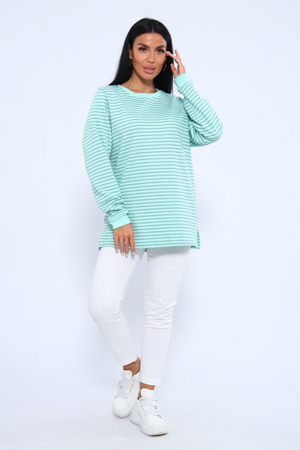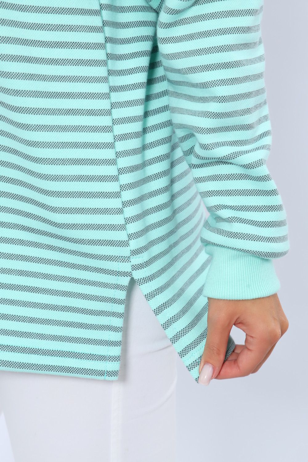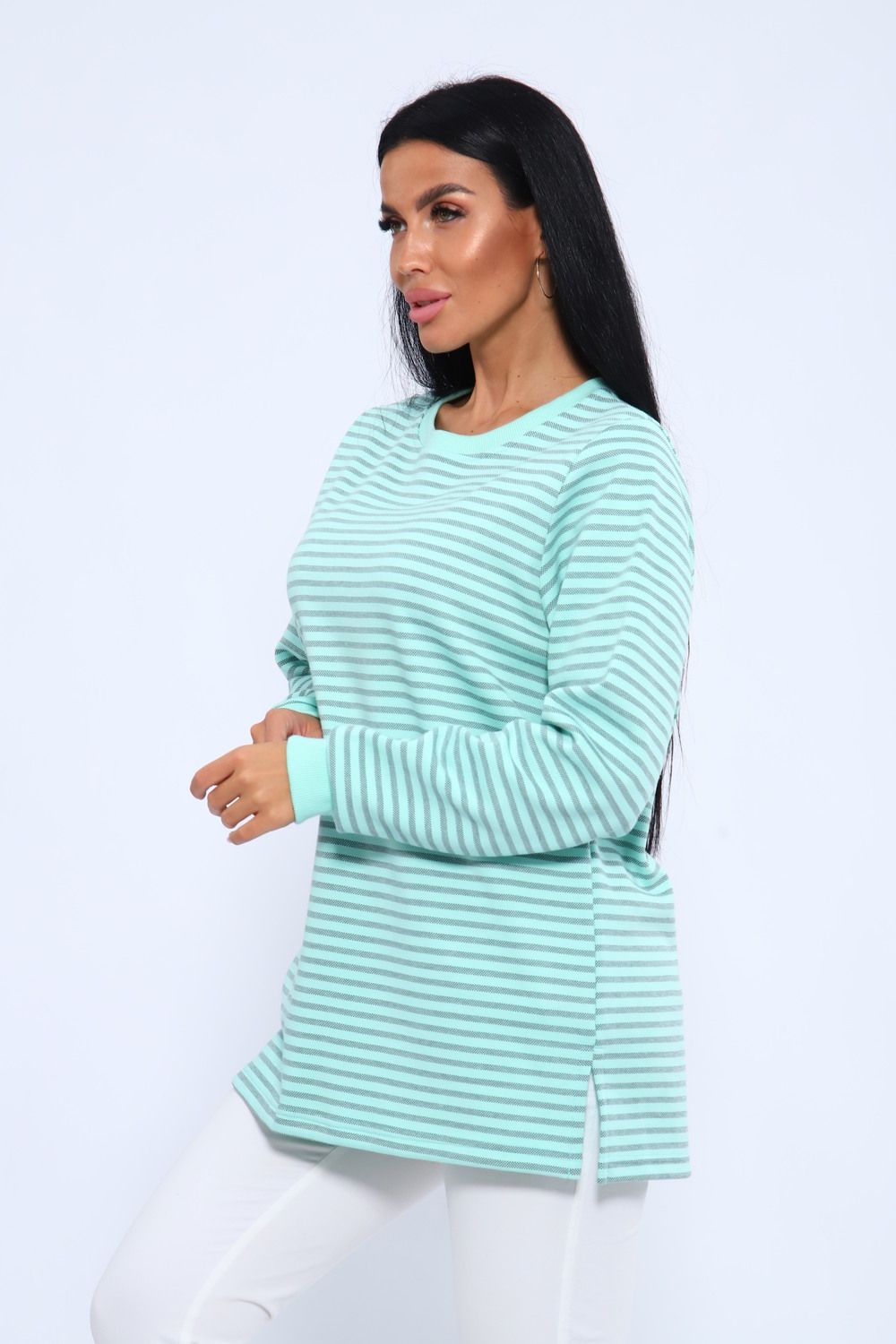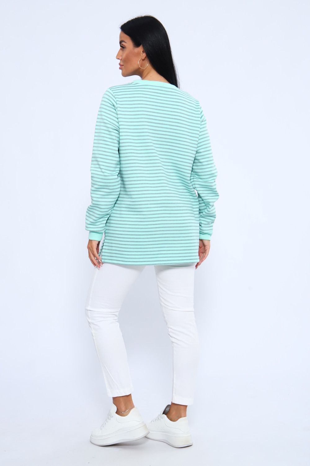 Свитшот 375709 в полоску повседневный трикотажный - бирюзовый