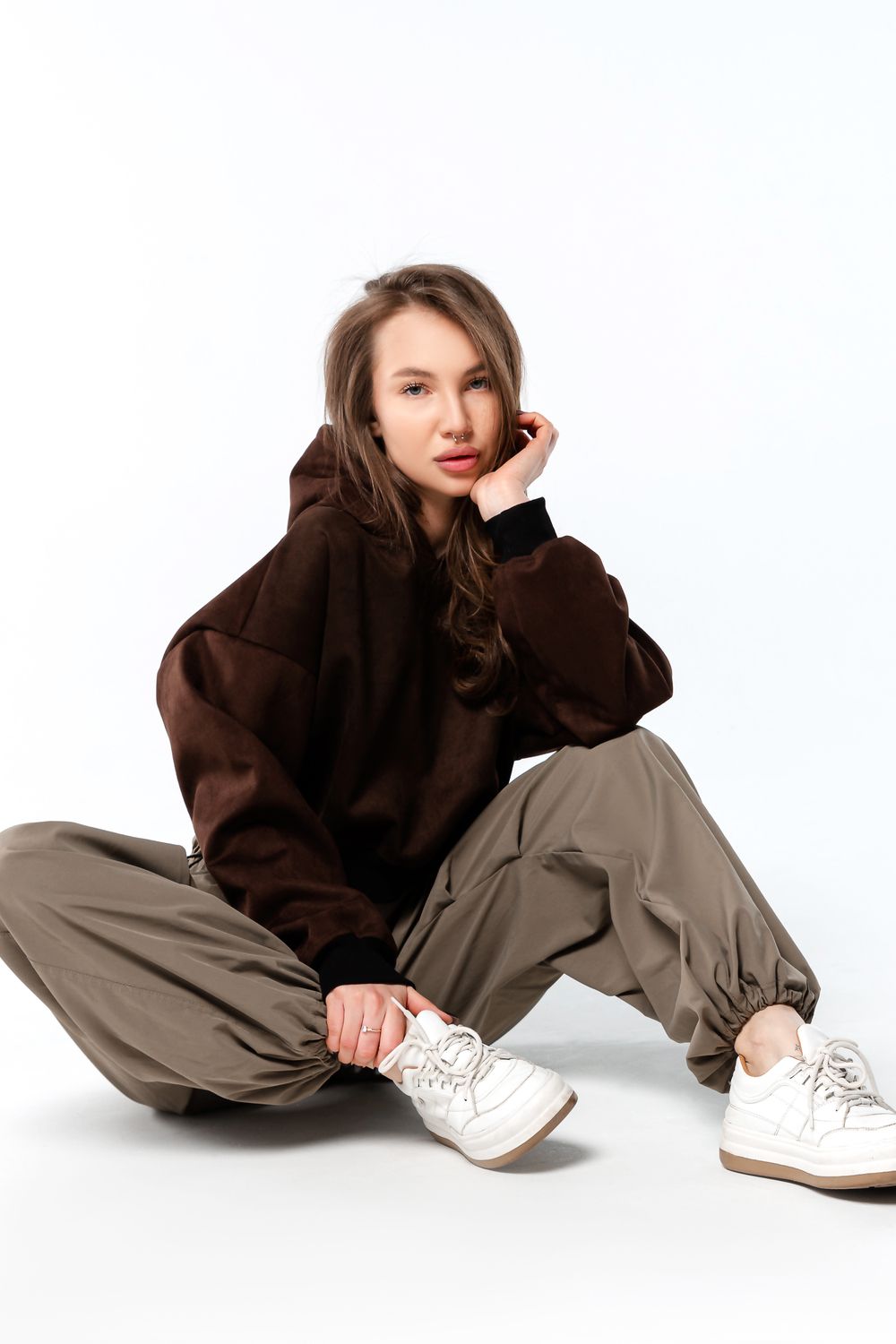 Свитшот 4 оверсайз короткий - темно-коричневый