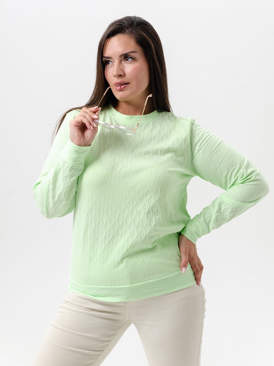 Женский свитшот - базовая вещь вашего гардероба. Свитшот с округлой горловиной, на рукавах манжеты, снизу на кофте пояс, выполнен из легкой, приятной ткани. Удобный и яркий, подойдет для повседневной носки.