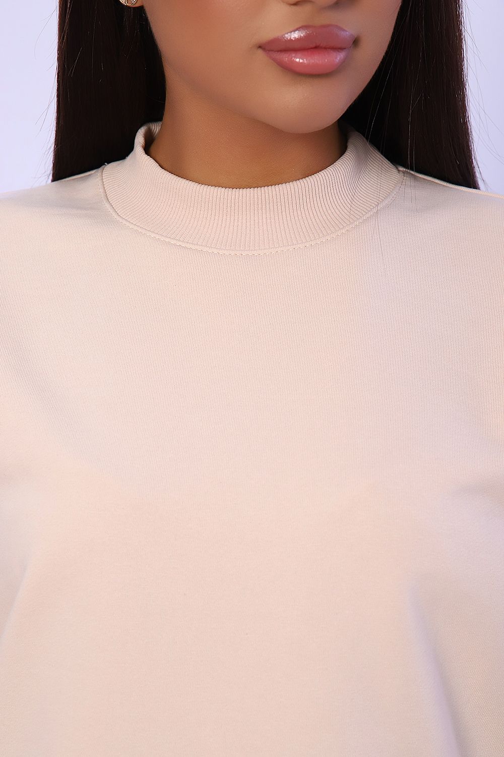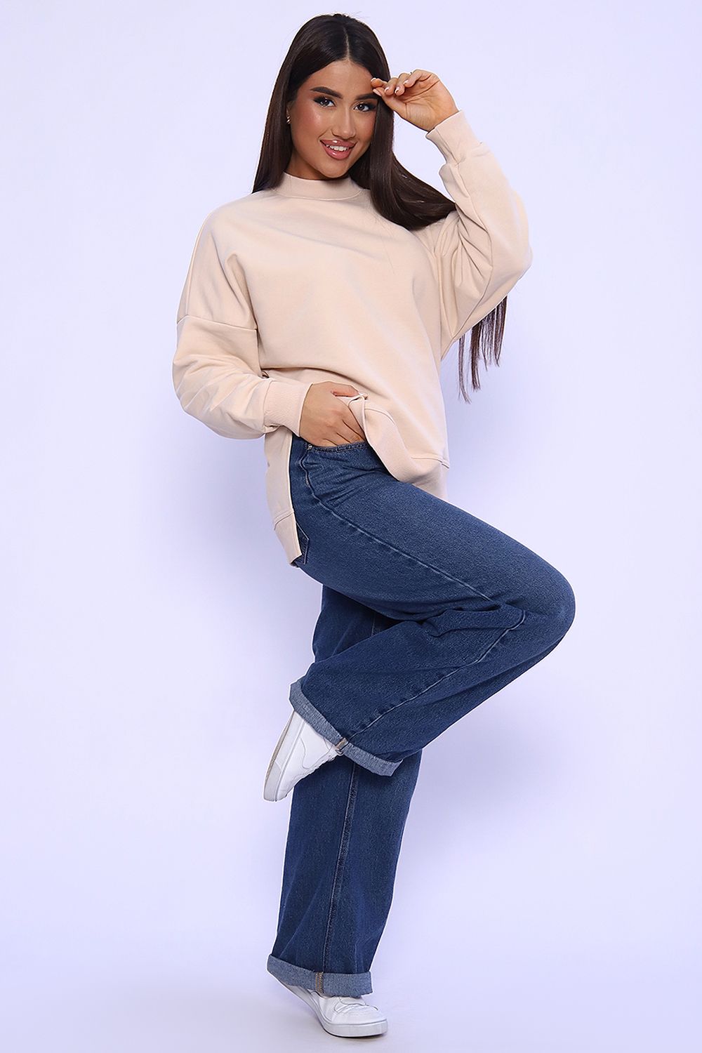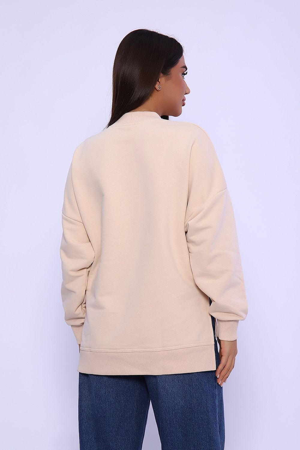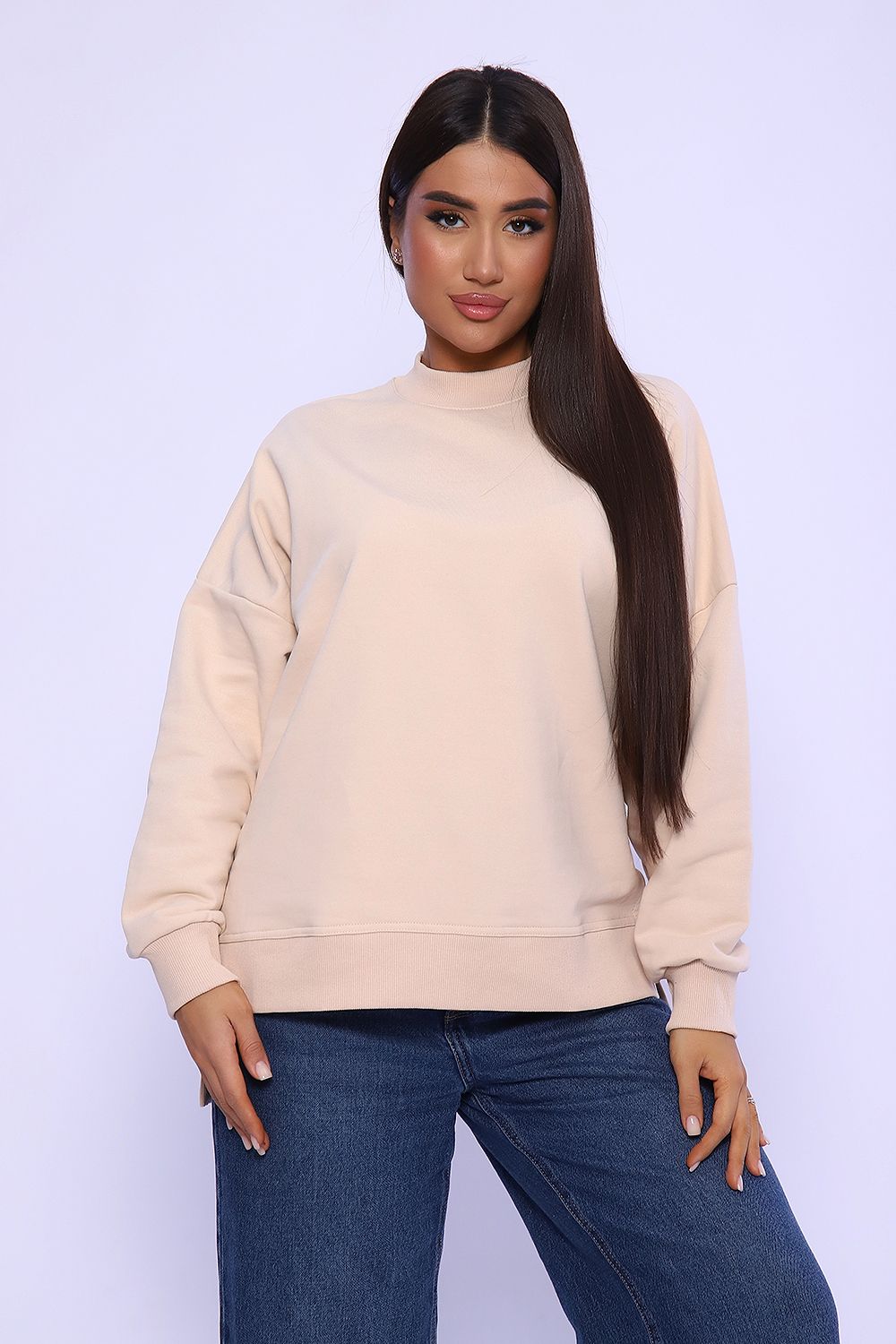 Свитшот женский выполнен в классических цветах. Особенность этой модели - спущенный рукав (летучая мышь), удлиненная спинка и боковые разрезы. Округлая горловина декорированная отстрочкой. Свитшот изготовлен из футера 3‑х нитки (петля). В 52 и 54 размеры, по спинке шов.