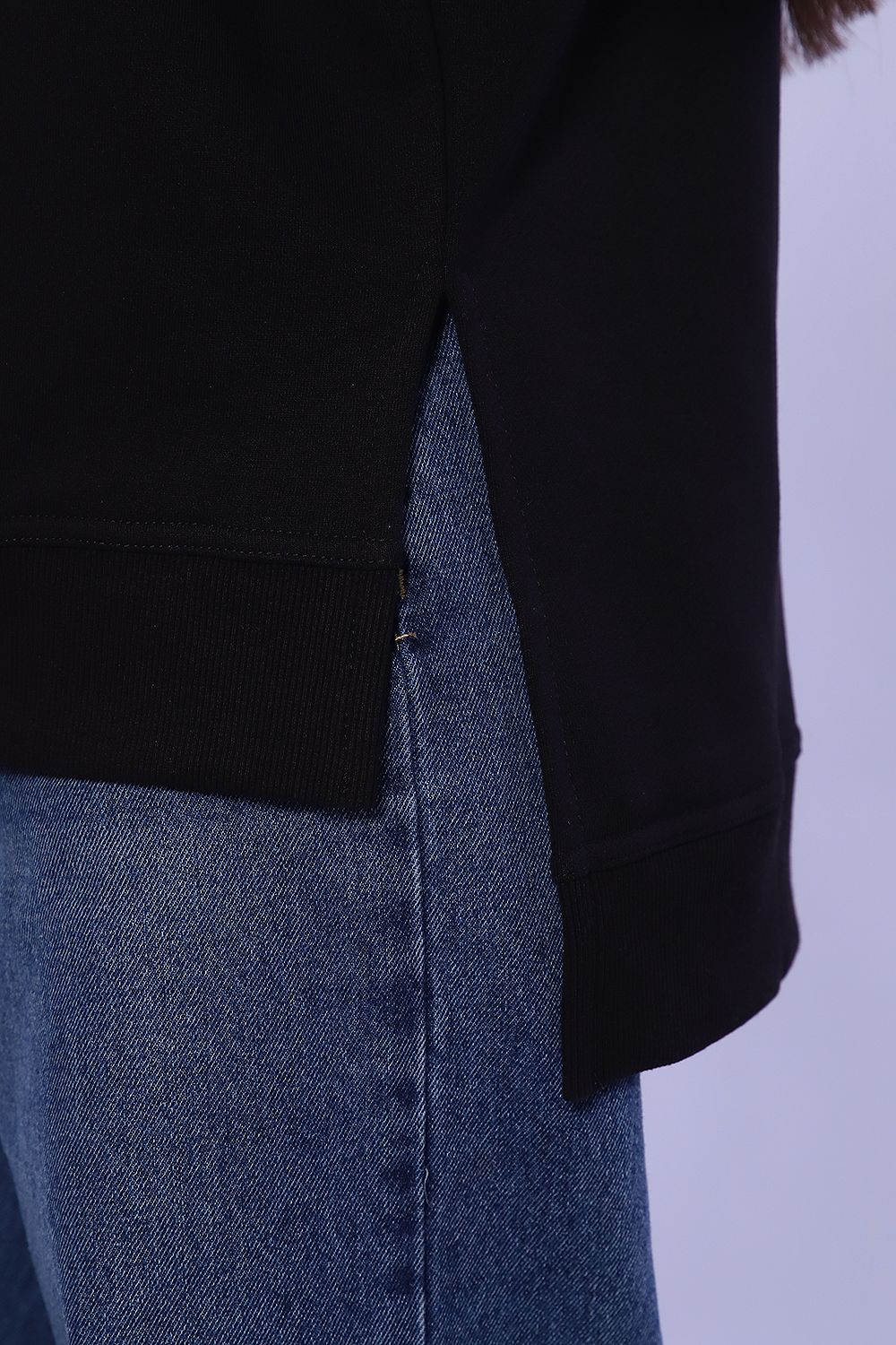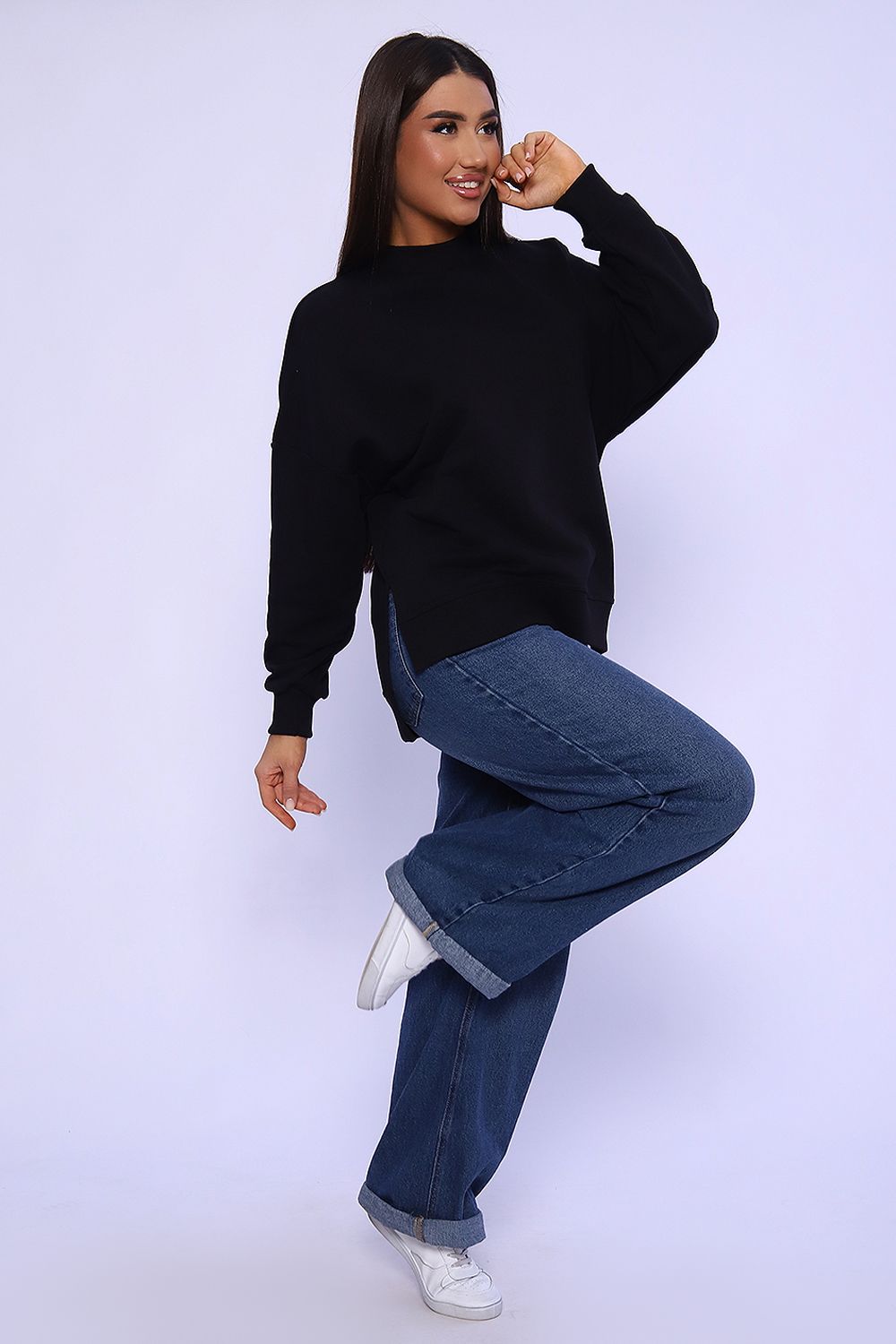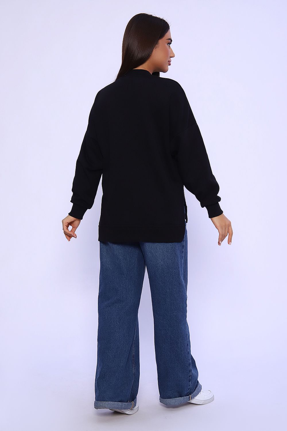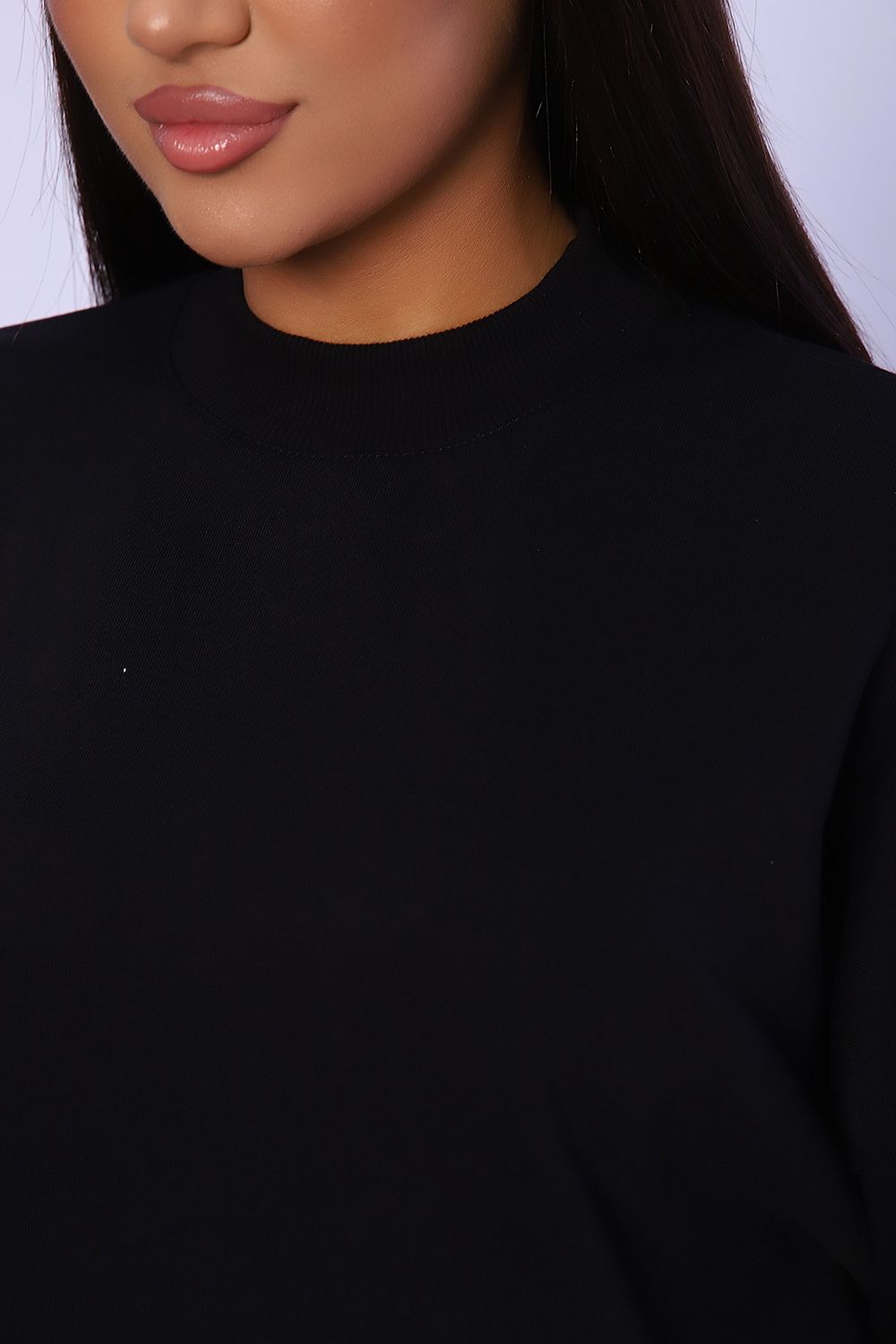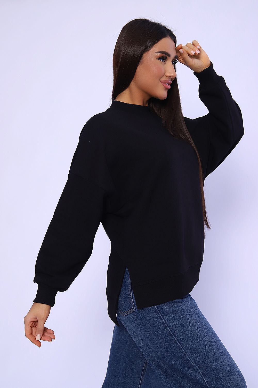 Свитшот женский выполнен в классических цветах. Особенность этой модели - спущенный рукав (летучая мышь), удлиненная спинка и боковые разрезы. Округлая горловина декорированная отстрочкой. Свитшот изготовлен из футера 3‑х нитки (петля). В 52 и 54 размеры, по спинке шов.