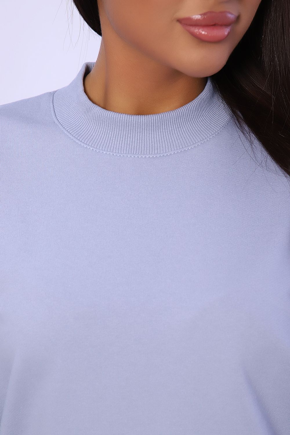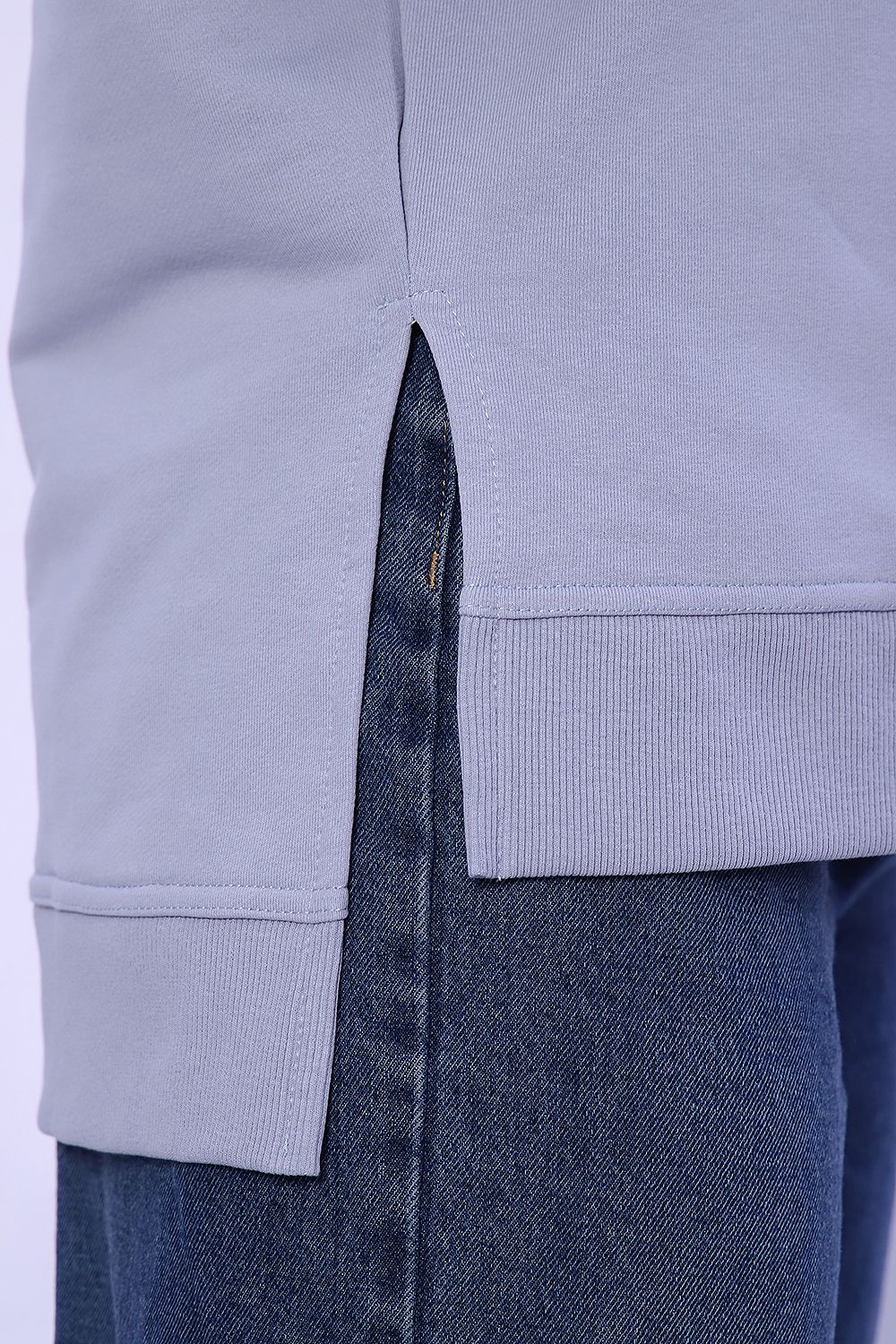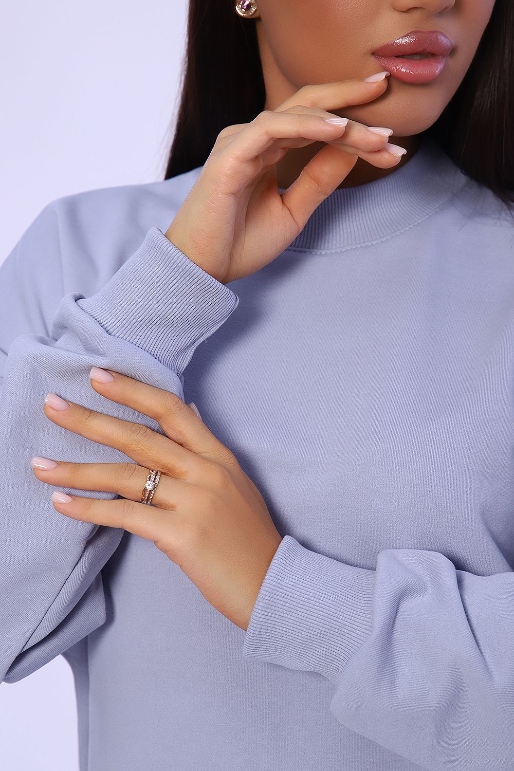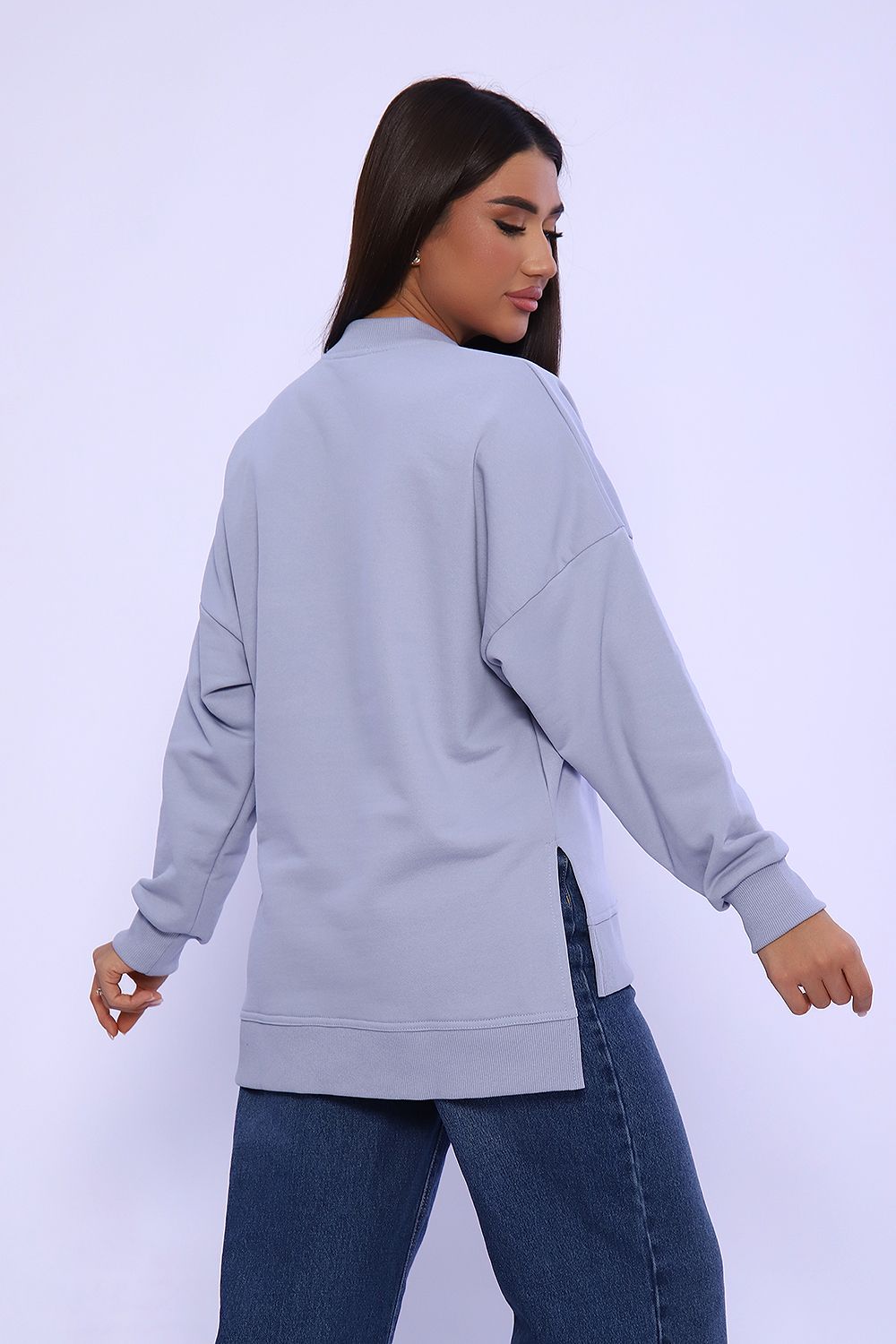 Свитшот женский выполнен в классических цветах. Особенность этой модели - спущенный рукав (летучая мышь), удлиненная спинка и боковые разрезы. Округлая горловина декорированная отстрочкой. Свитшот изготовлен из футера 3‑х нитки (петля). В 52 и 54 размеры, по спинке шов.