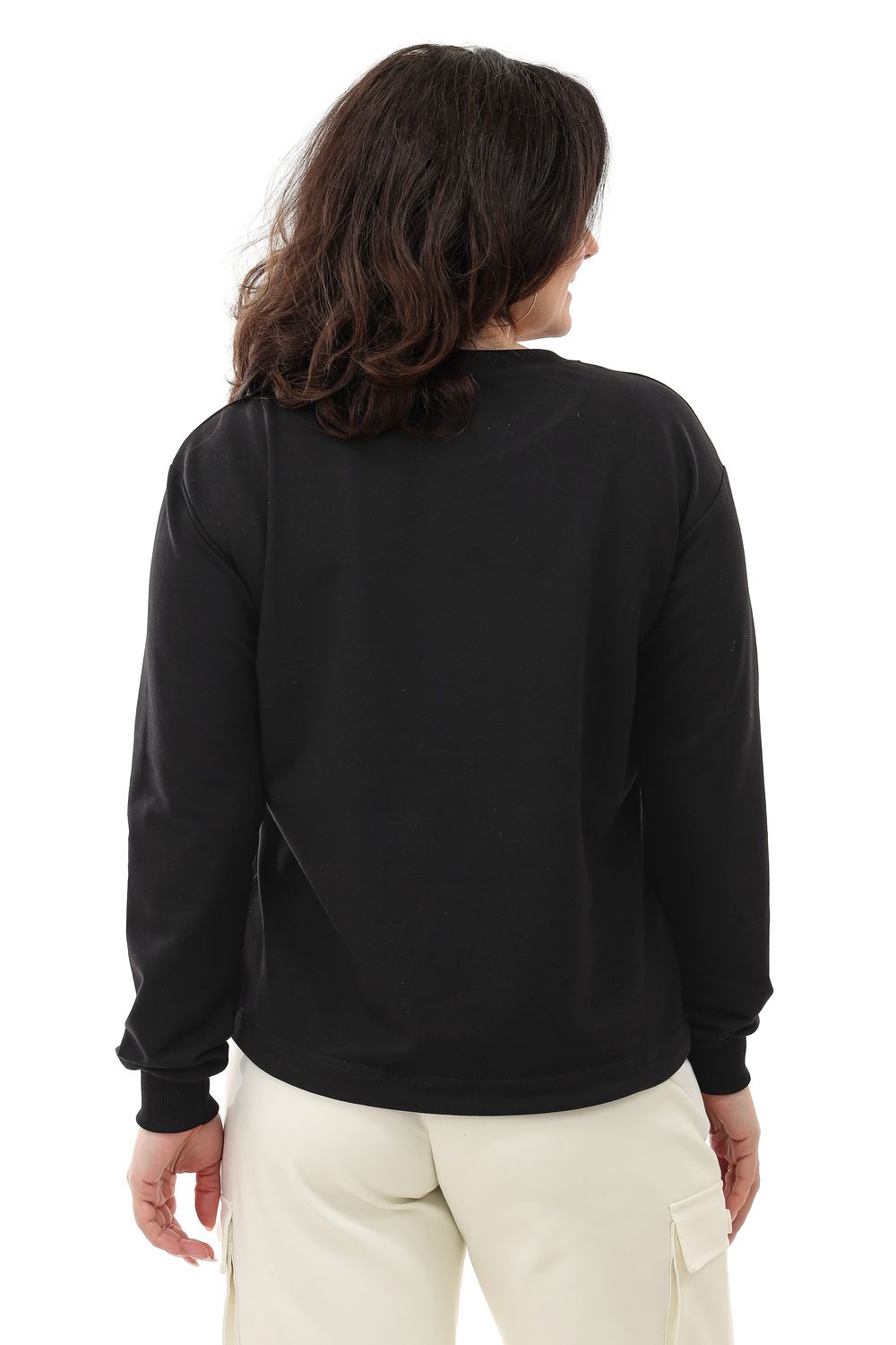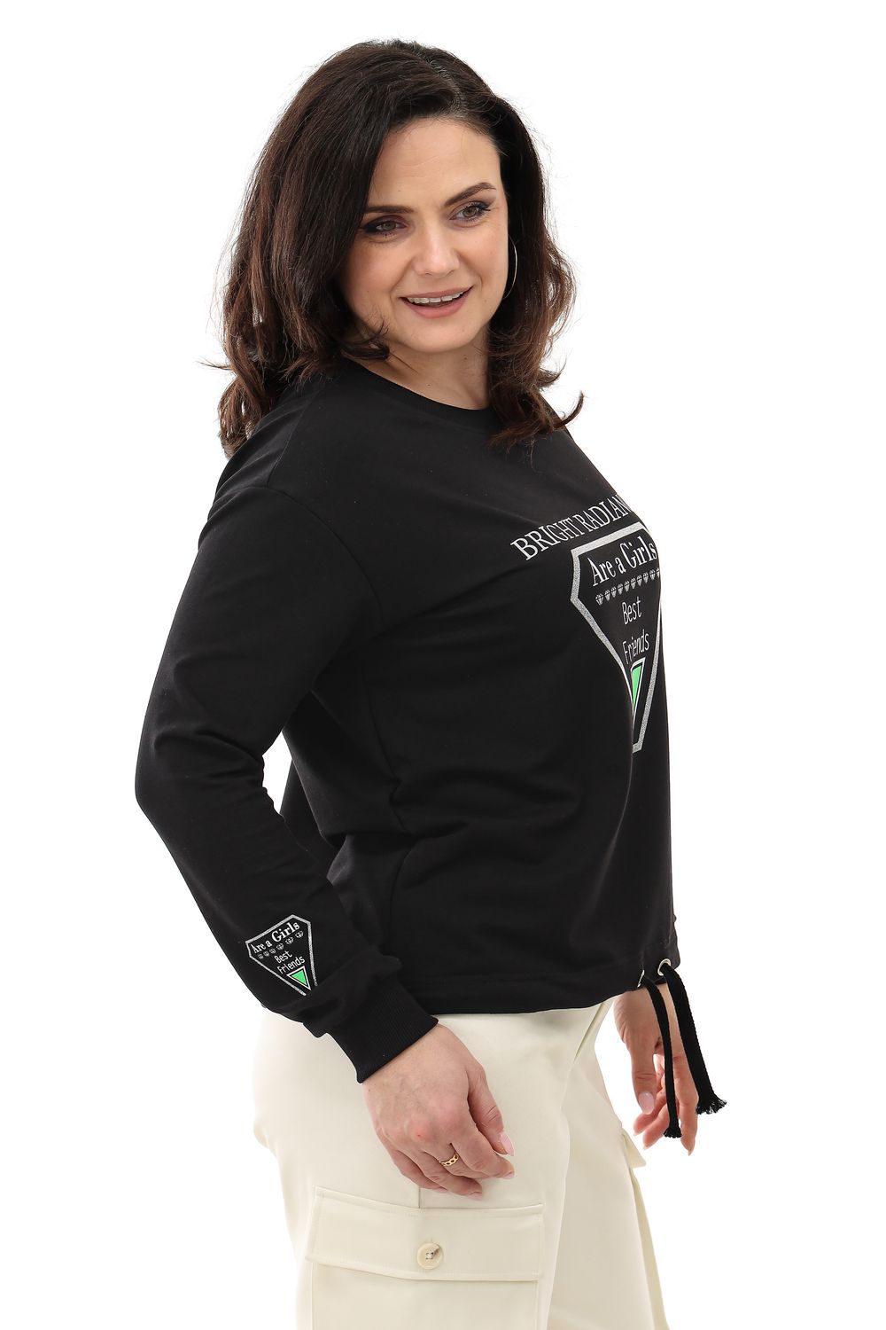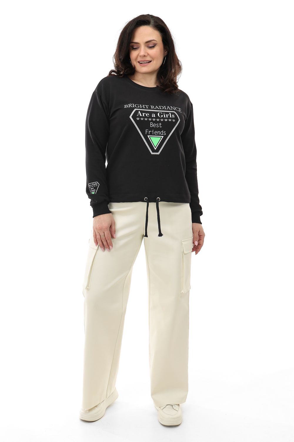 Свитшот свободного силуэта, прямого кроя. На переде печать с серебром, которое будет эффектно искриться на солнце. Линия плеча спущена. Манжеты из кашкорсе подобраны в тон ткани. Низ изделия регулируется шнуром.