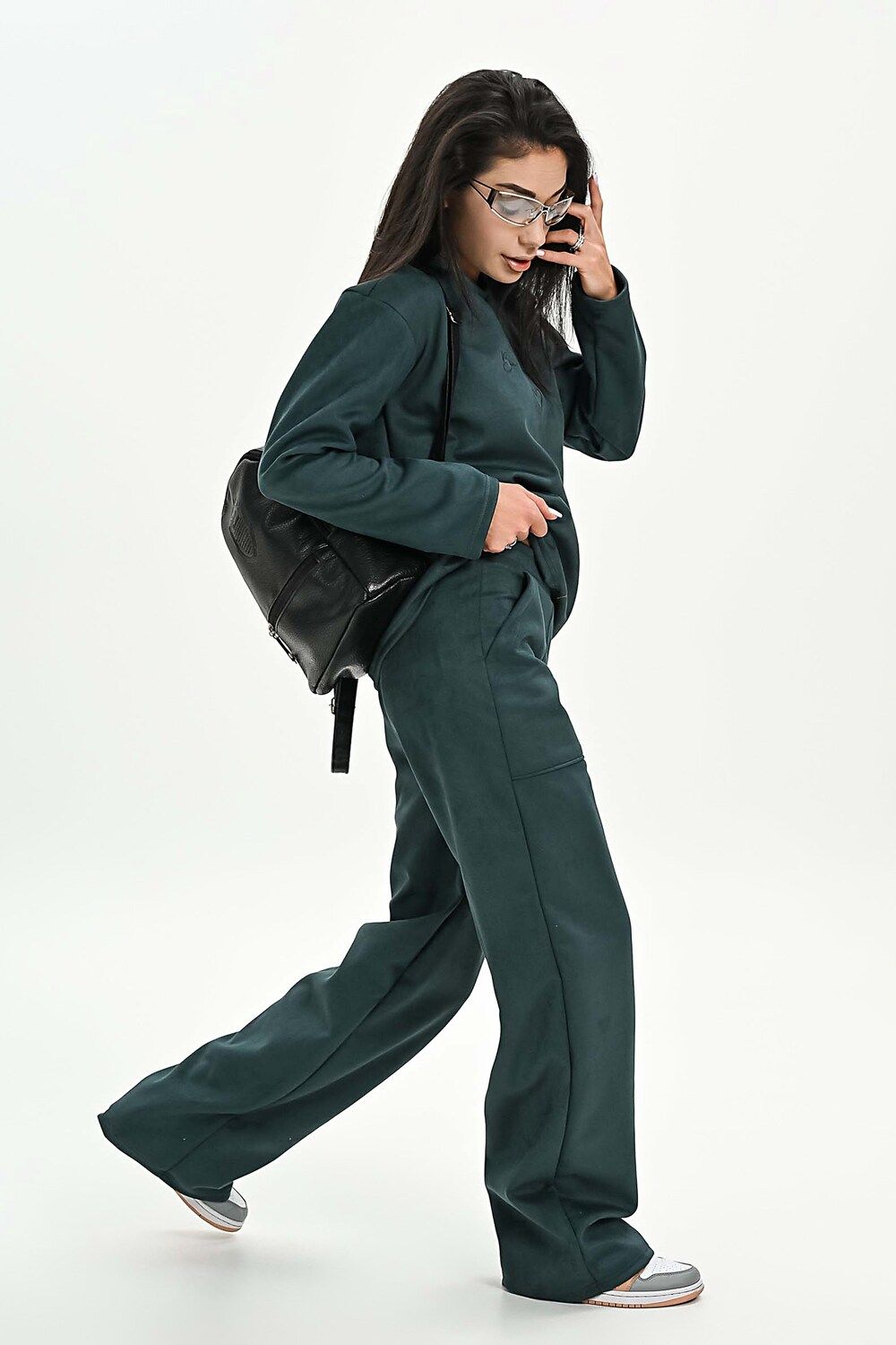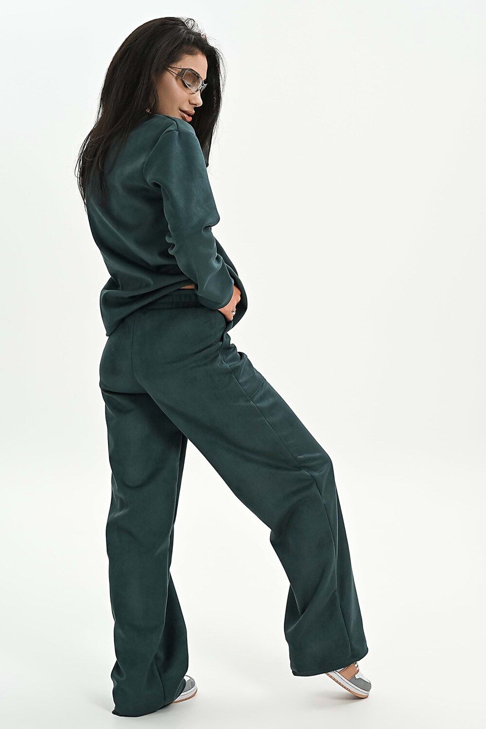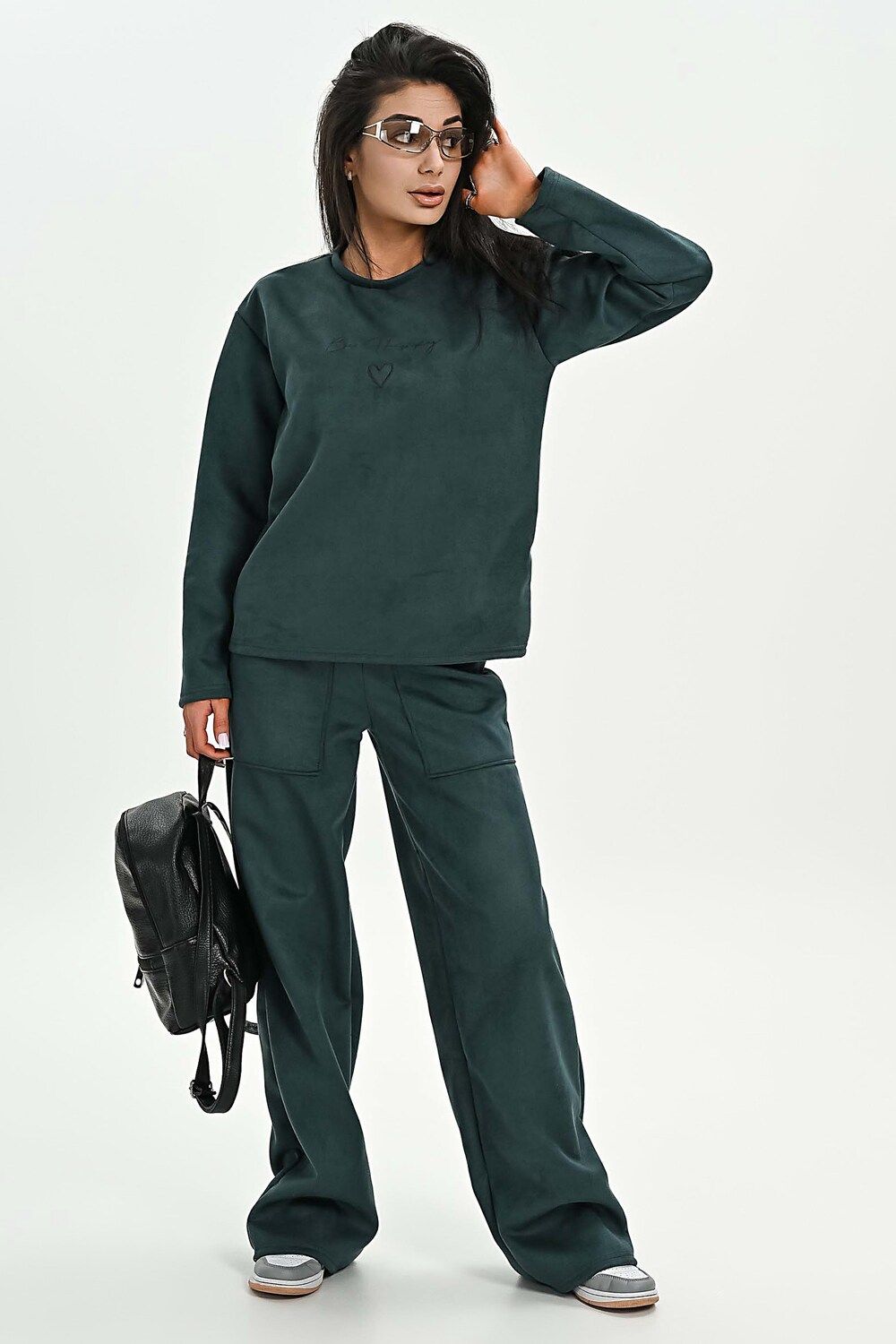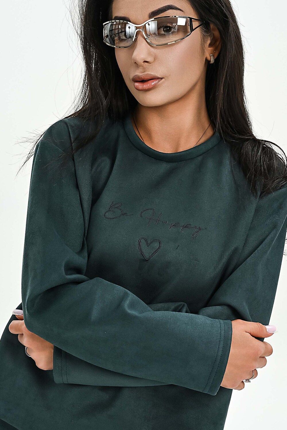 Свитшот из мягкой эко замши - изумрудный