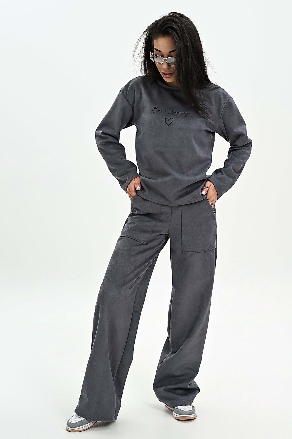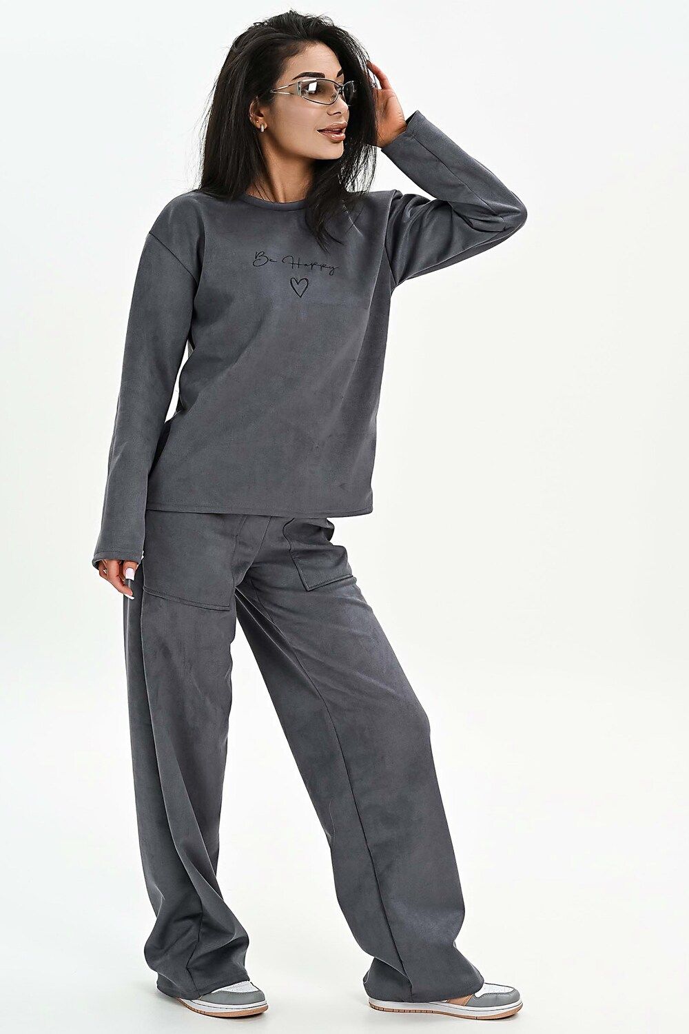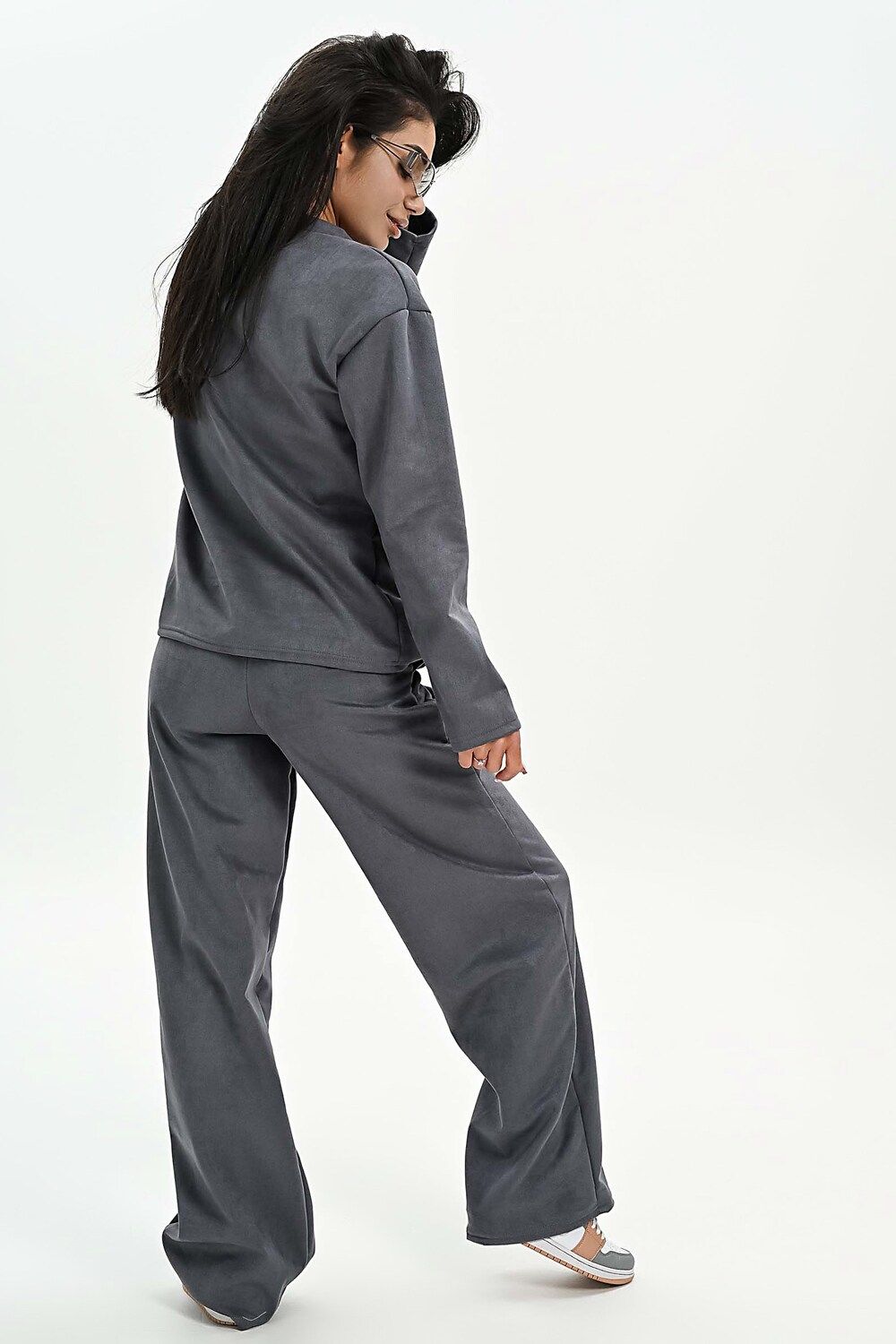 Свитшот из мягкой эко замши - серый