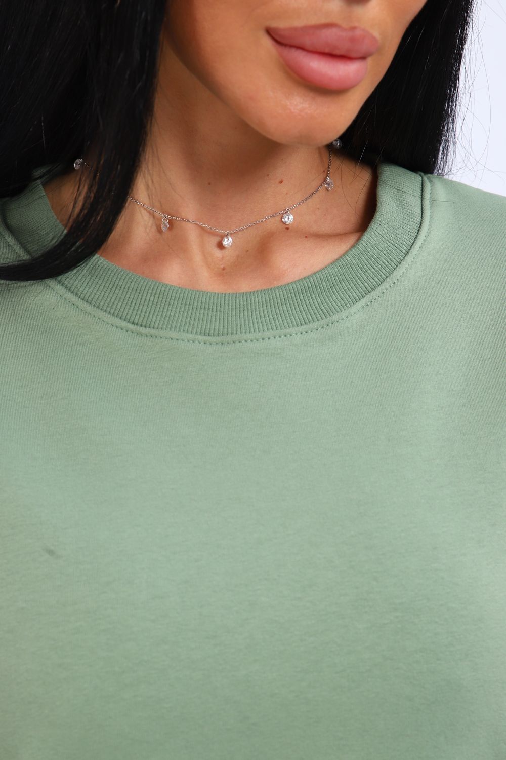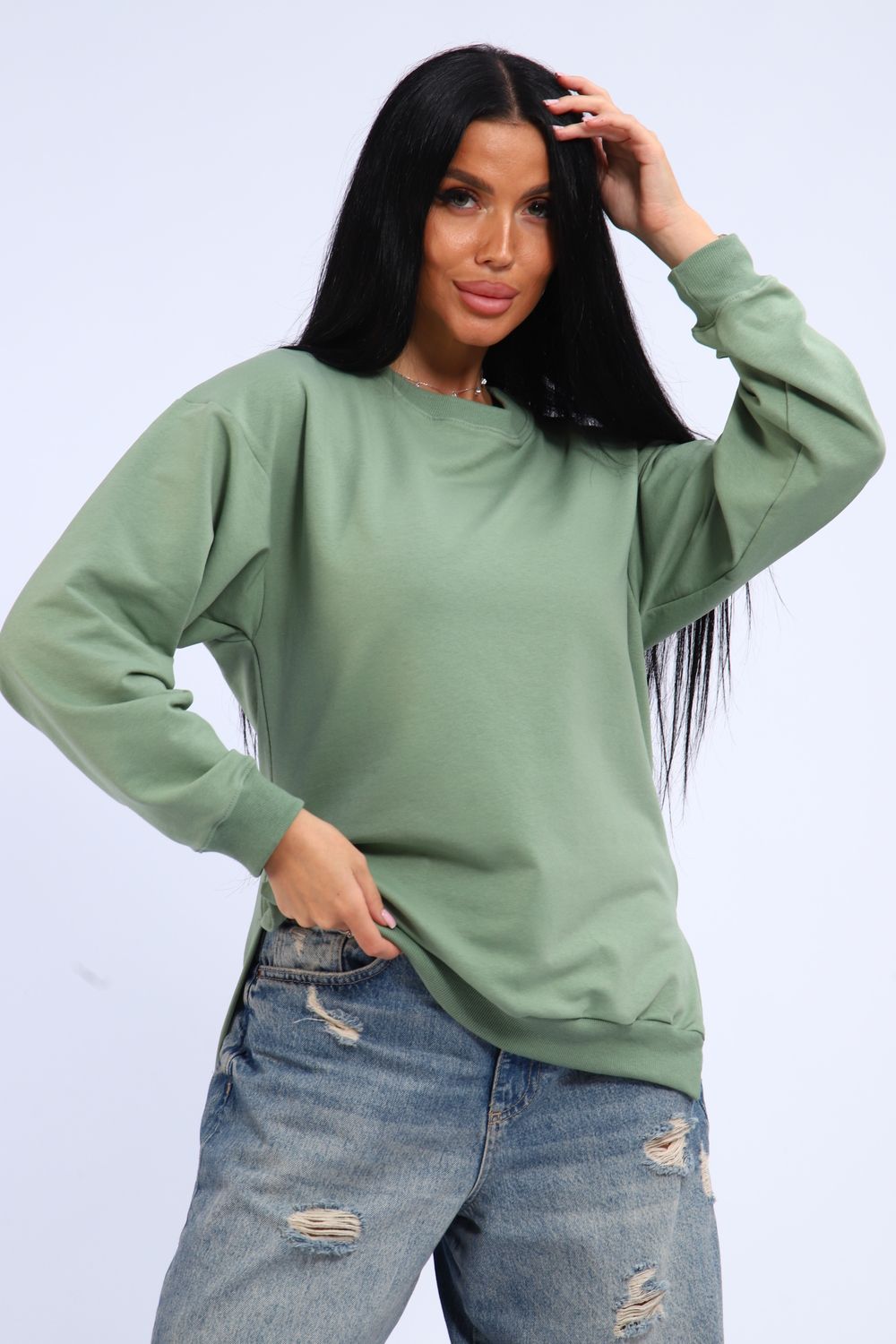 Свитшот женский свободного кроя, разрезы в боковых швах. Спинка удлиненная.
