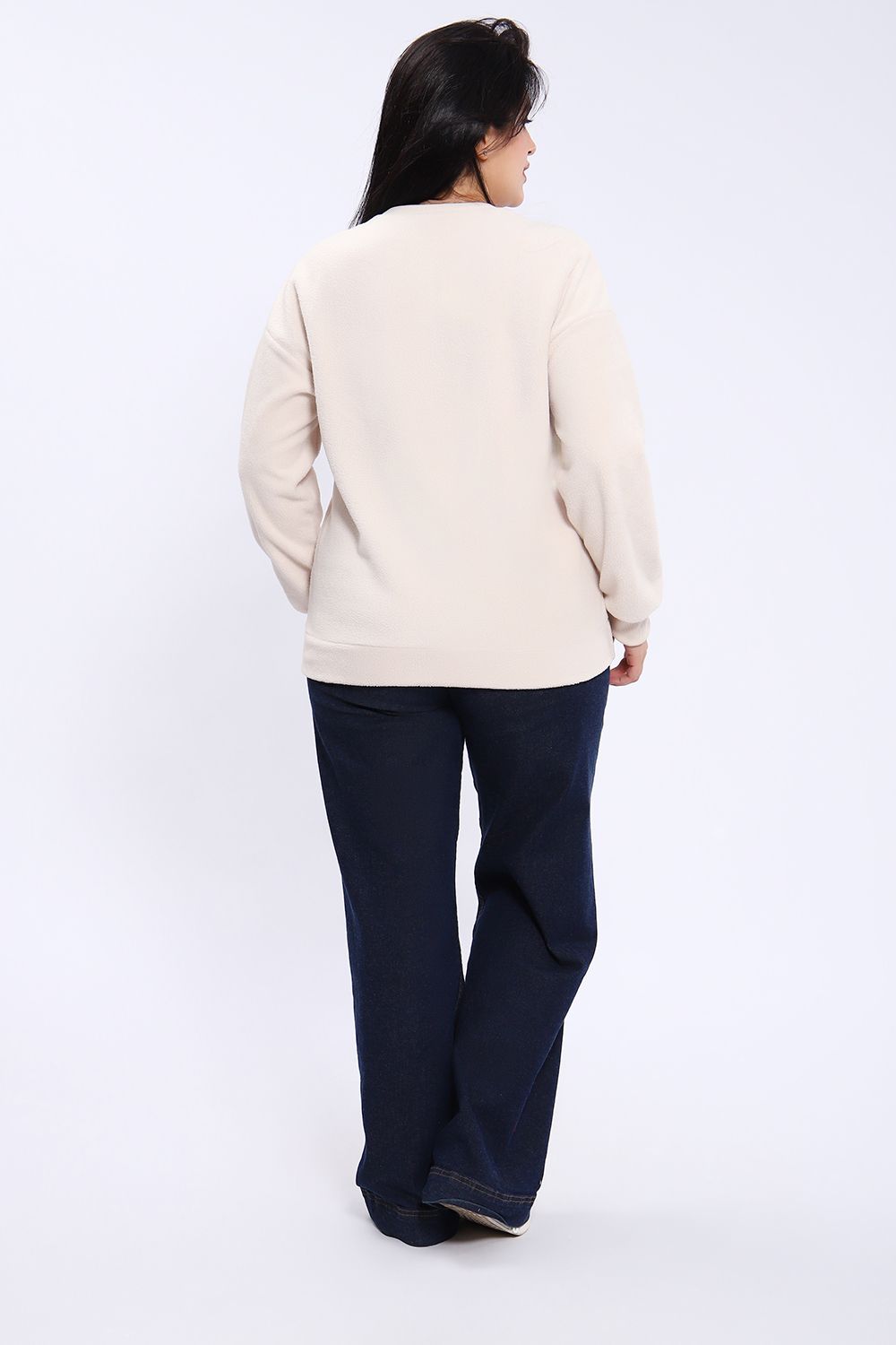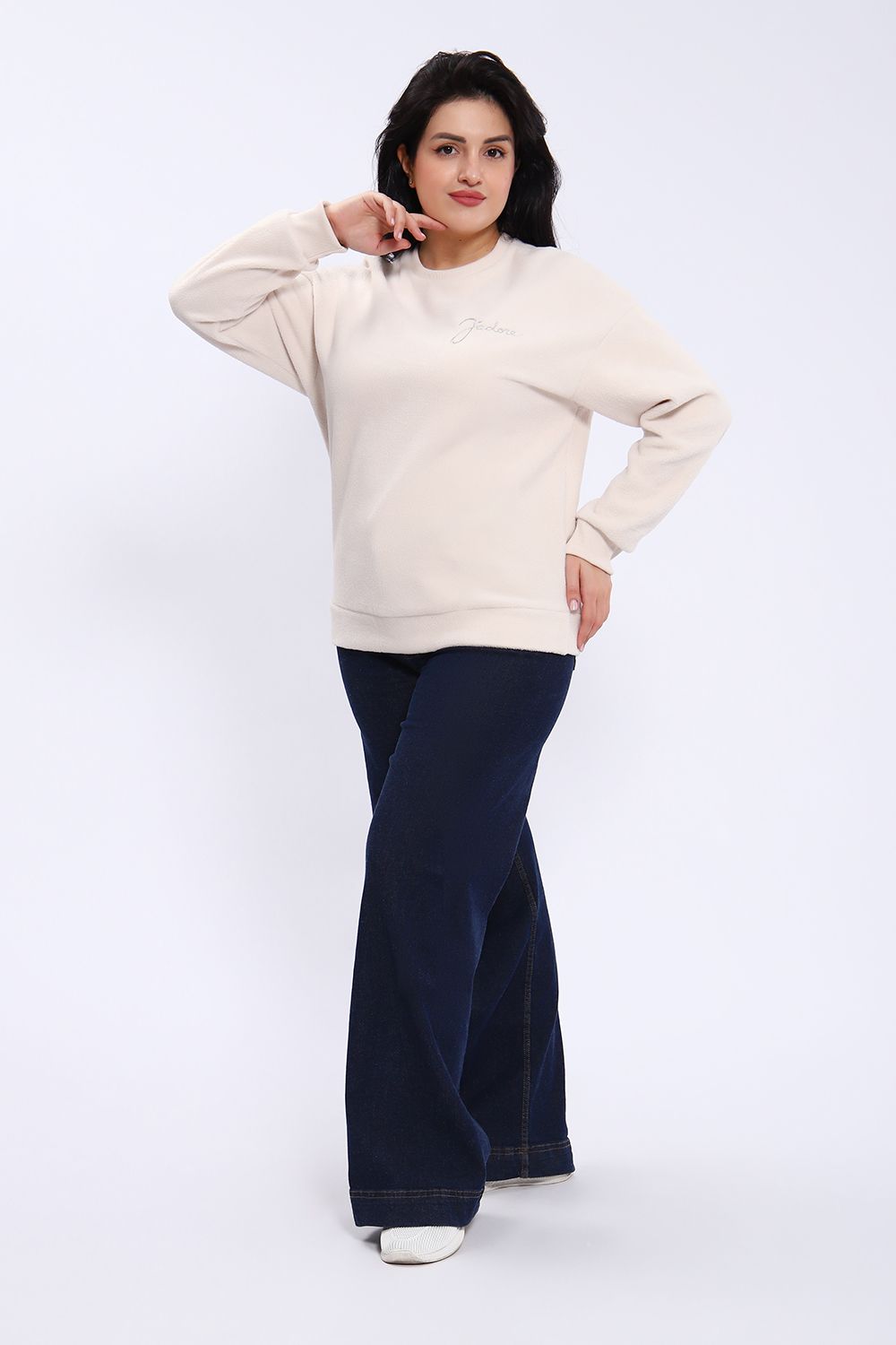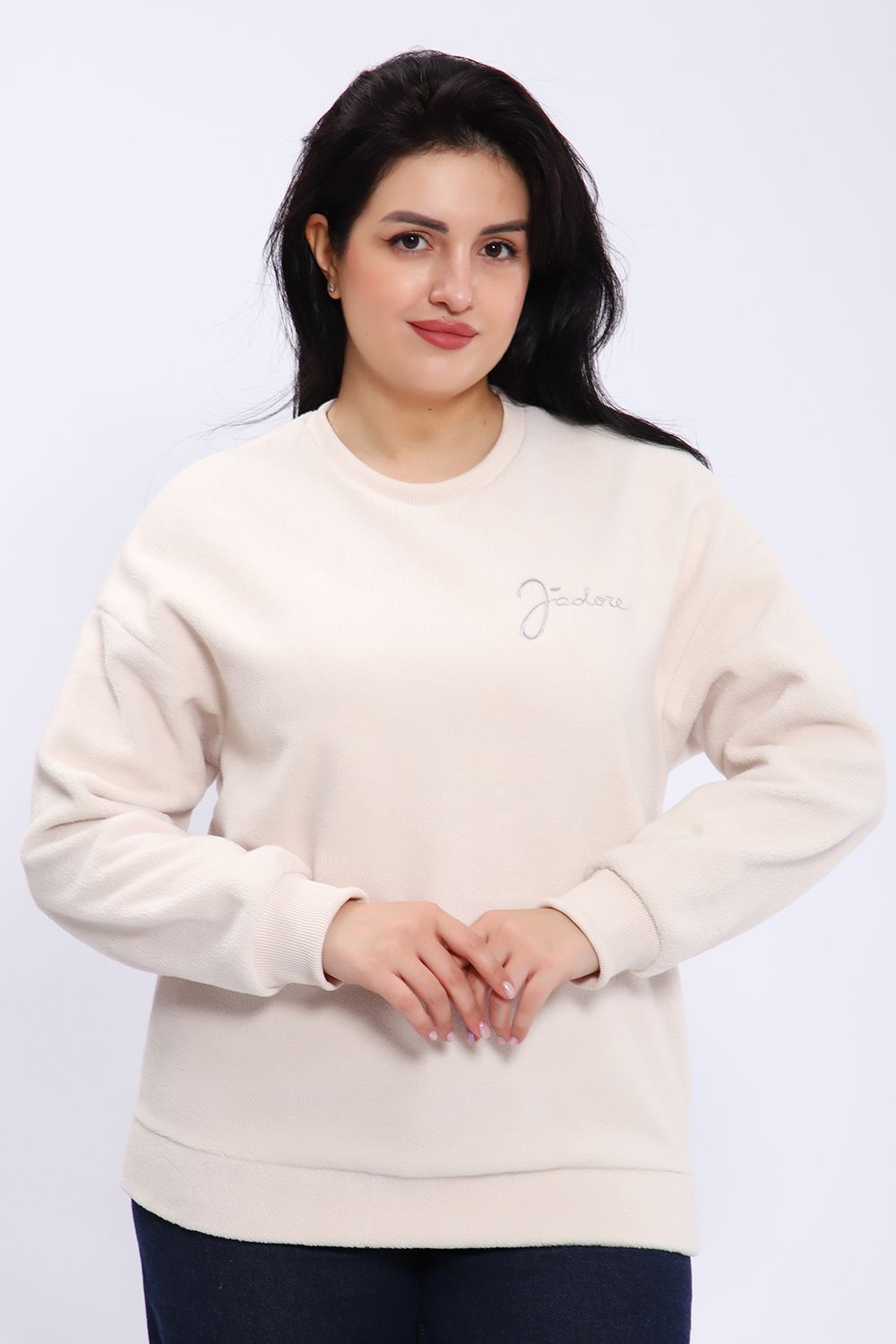 Свитшот женский из футера 3-х нитки барашек качества пенье. Модель свободного кроя в стиле оверсайз, спущенная пройма, горловина и манжеты обработаны эластичным кашкорсе, на груди слева вышивка. Низ джемпера на широком манжете из основного полотна. Толстовка стильная, приятная к телу, выполнена из двухслойного, плотного трикотажа - внутри интерлок -хлопок, с наружи начёс в виде пушистого "барашка" из полиэстера. Барашек не скатывается, не пиллингуется. Универсальный, тёплый свитшот - необходимая вещь в прохладную погоду, отлично подойдёт для прогулок, активного отдыха, занятием спортом.