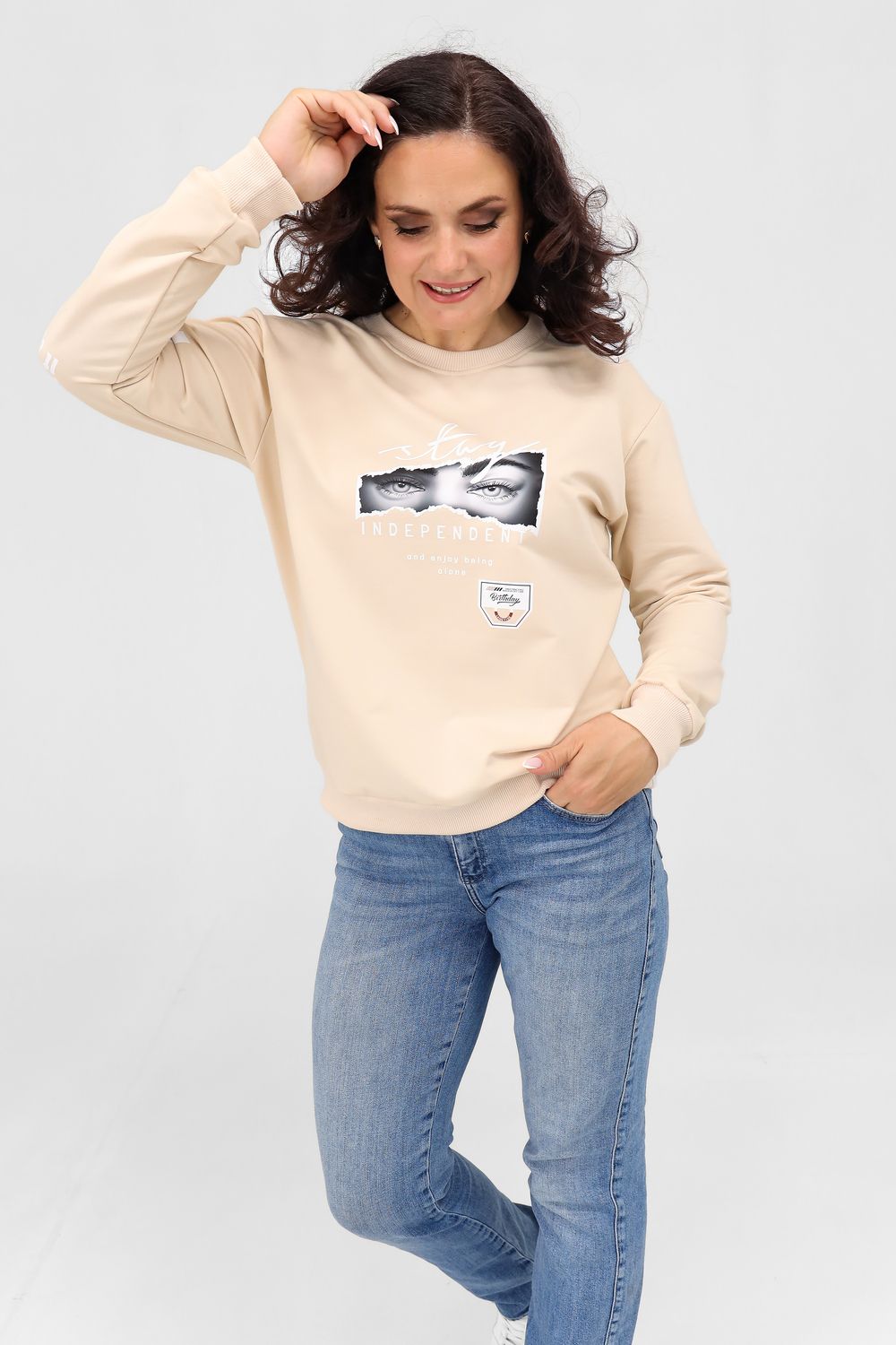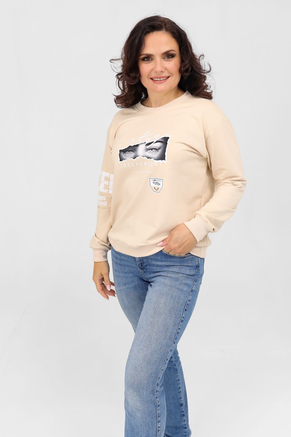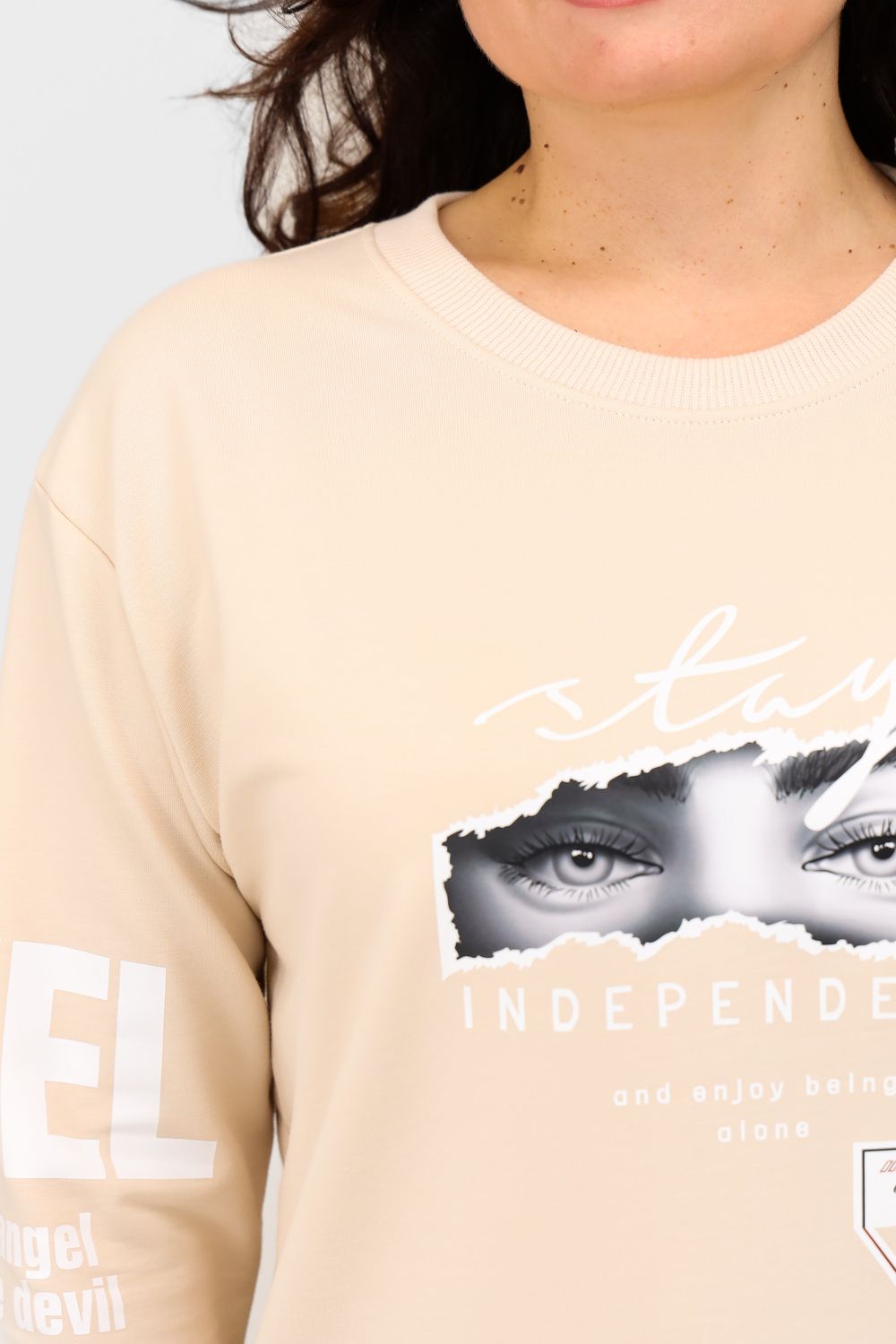 Свитшот женский с принтом больших размеров - это идеальный вариант для тех, кто ценит комфорт и стиль в одежде. Этот свитшот выполнен из футера двухнитки высокого качества, благодаря чему он нежный к телу и приятный на ощупь. Более того, он без начеса, что позволяет носить его даже в теплое время года, не беспокоясь о перегреве. Особенностью этого свитшота является его большой размер, который отлично подходит для женщин с пышными формами. Комфортная посадка придает свободу движения. Вы будете выглядеть привлекательно и стильно в любой ситуации. Кроме того, свитшот - это отличная возможность выразить свою индивидуальность. Прямой крой подчеркнёт Вашу красоту и фигуру, а принт добавит оригинальности и неповторимости Вашему образу. Также свитшот легко стирается и сохраняет свой первоначальный вид даже после многократных стирок. Свитшот с принтом - идеальный выбор для стильных и модных женщин, которые ценят комфорт и индивидуальность. Не отказывайте себе в удовольствии выглядеть стильно и элегантно с нашим свитшотов от K&M!
