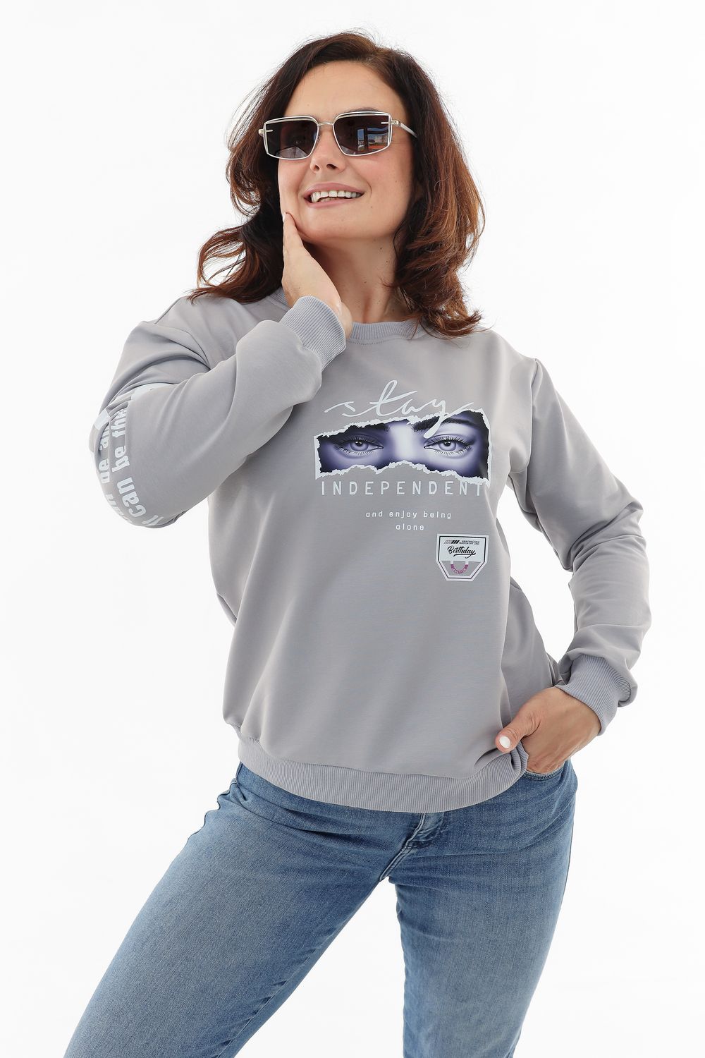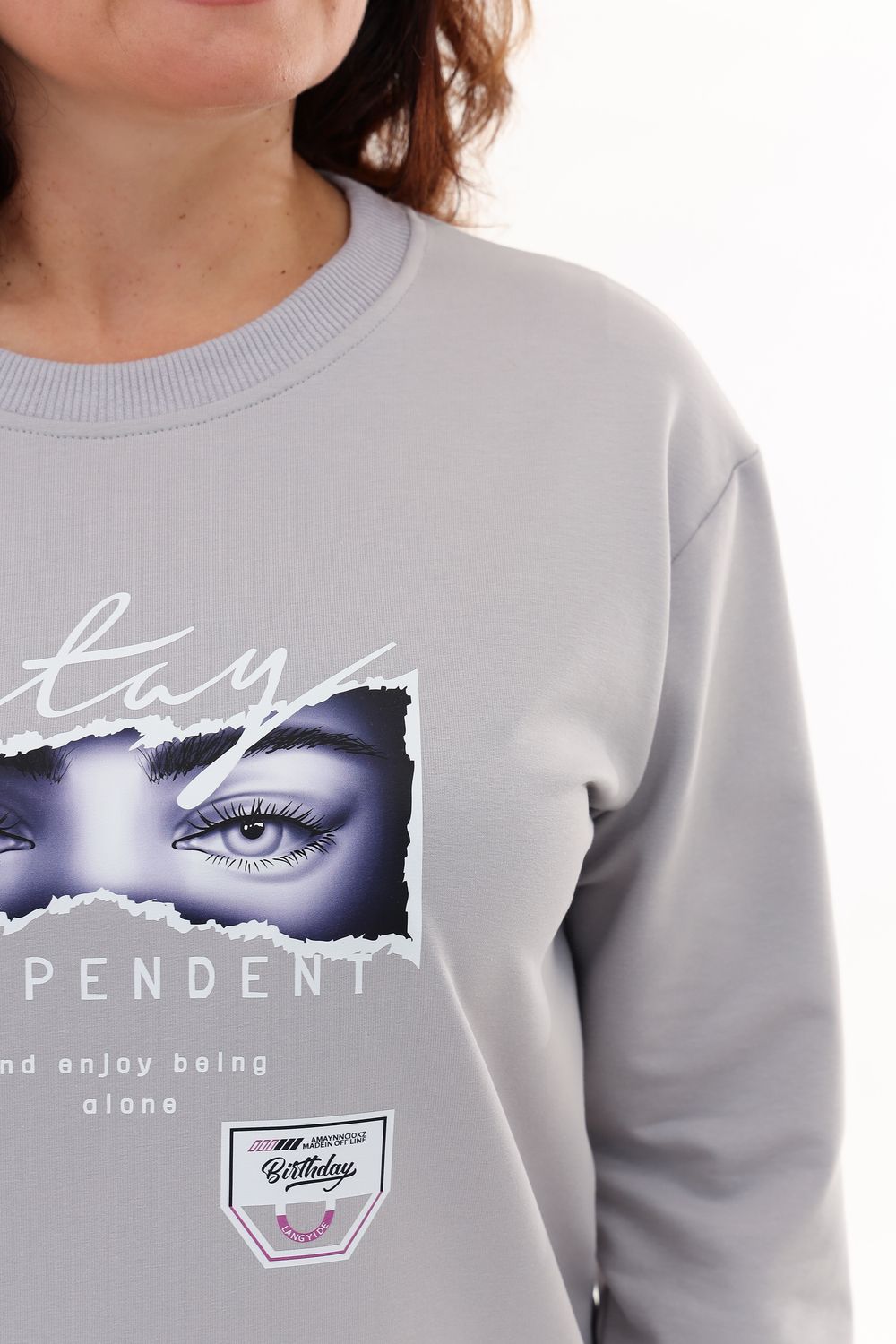 Свитшот женский с принтом больших размеров - это идеальный вариант для тех, кто ценит комфорт и стиль в одежде. Этот свитшот выполнен из футера двухнитки высокого качества, благодаря чему он нежный к телу и приятный на ощупь. Более того, он без начеса, что позволяет носить его даже в теплое время года, не беспокоясь о перегреве. Особенностью этого свитшота является его большой размер, который отлично подходит для женщин с пышными формами. Комфортная посадка придает свободу движения. Вы будете выглядеть привлекательно и стильно в любой ситуации. Кроме того, свитшот - это отличная возможность выразить свою индивидуальность. Прямой крой подчеркнёт Вашу красоту и фигуру, а принт добавит оригинальности и неповторимости Вашему образу. Также свитшот легко стирается и сохраняет свой первоначальный вид даже после многократных стирок. Свитшот с принтом - идеальный выбор для стильных и модных женщин, которые ценят комфорт и индивидуальность. Не отказывайте себе в удовольствии выглядеть стильно и элегантно с нашим свитшотов от K&M!