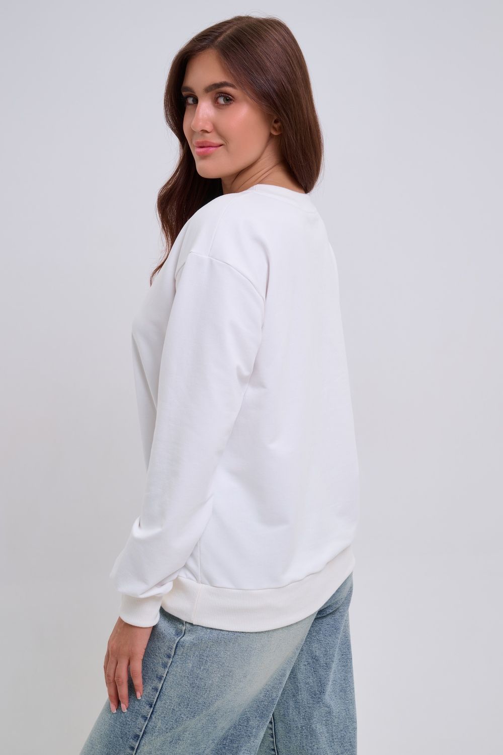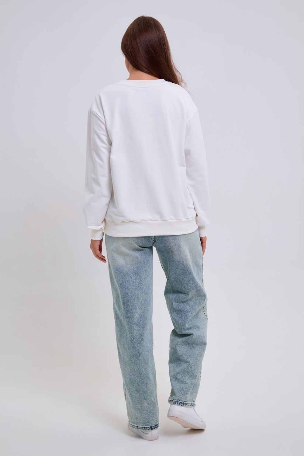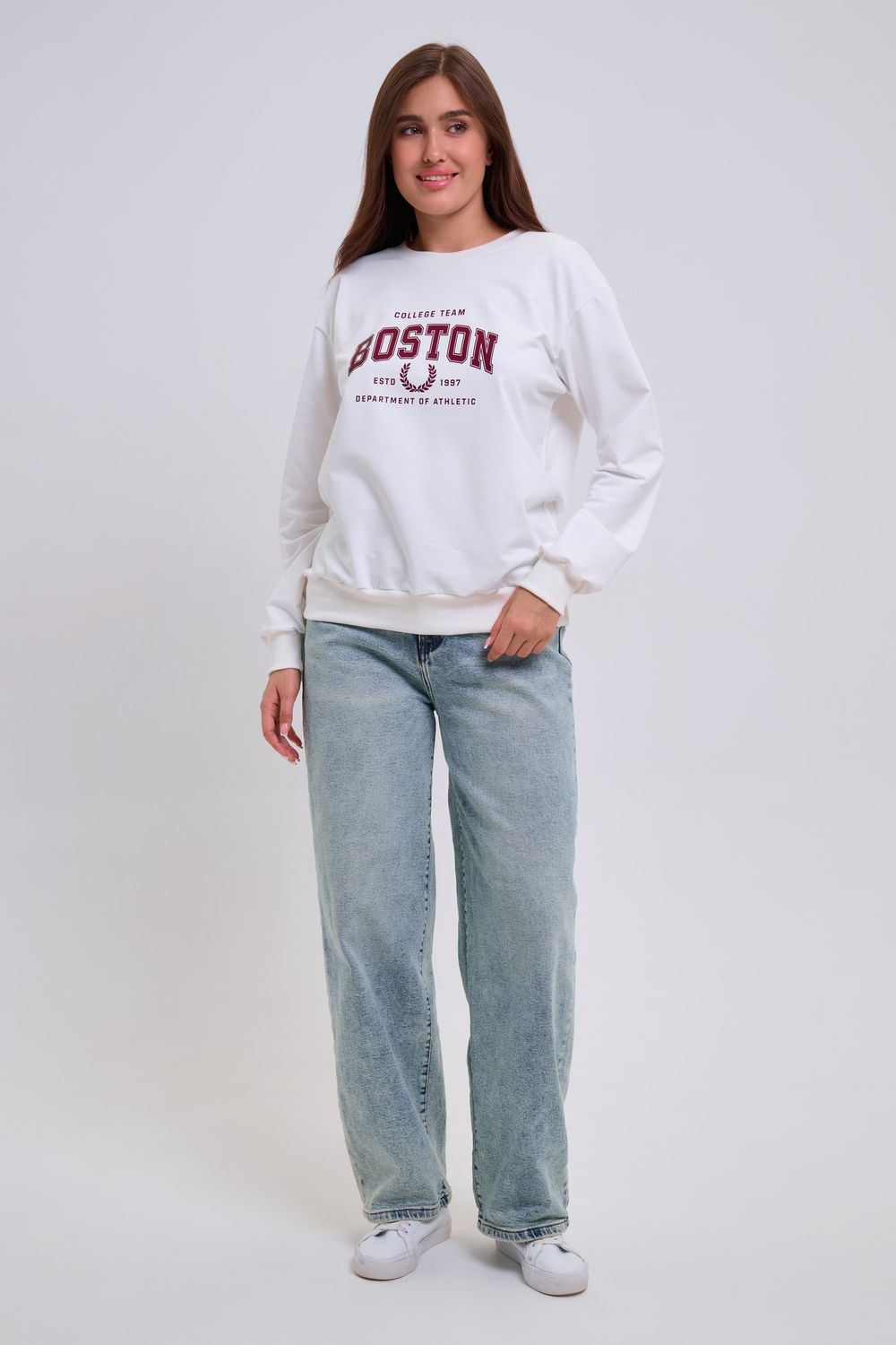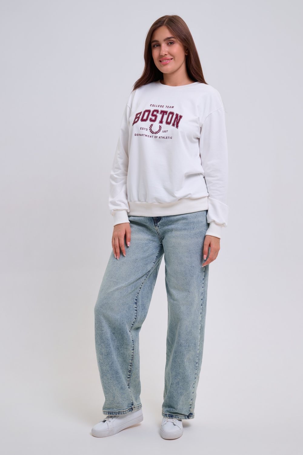 Женский свитшот свободного прямого кроя с круглой горловиной и слегка приспущенными плечами. Спереди нанесён принт в виде надписи "Boston". Выполнен из мягкого и приятного материала — футера 2-х нитки, обеспечивающего дополнительный комфорт и сохранение тепла даже в холодную погоду. Доступен в сдвоенных размерах, что удобно для подбора идеальной посадки. Подходит как для повседневной носки, так и для создания эффектных образов в любом стиле.