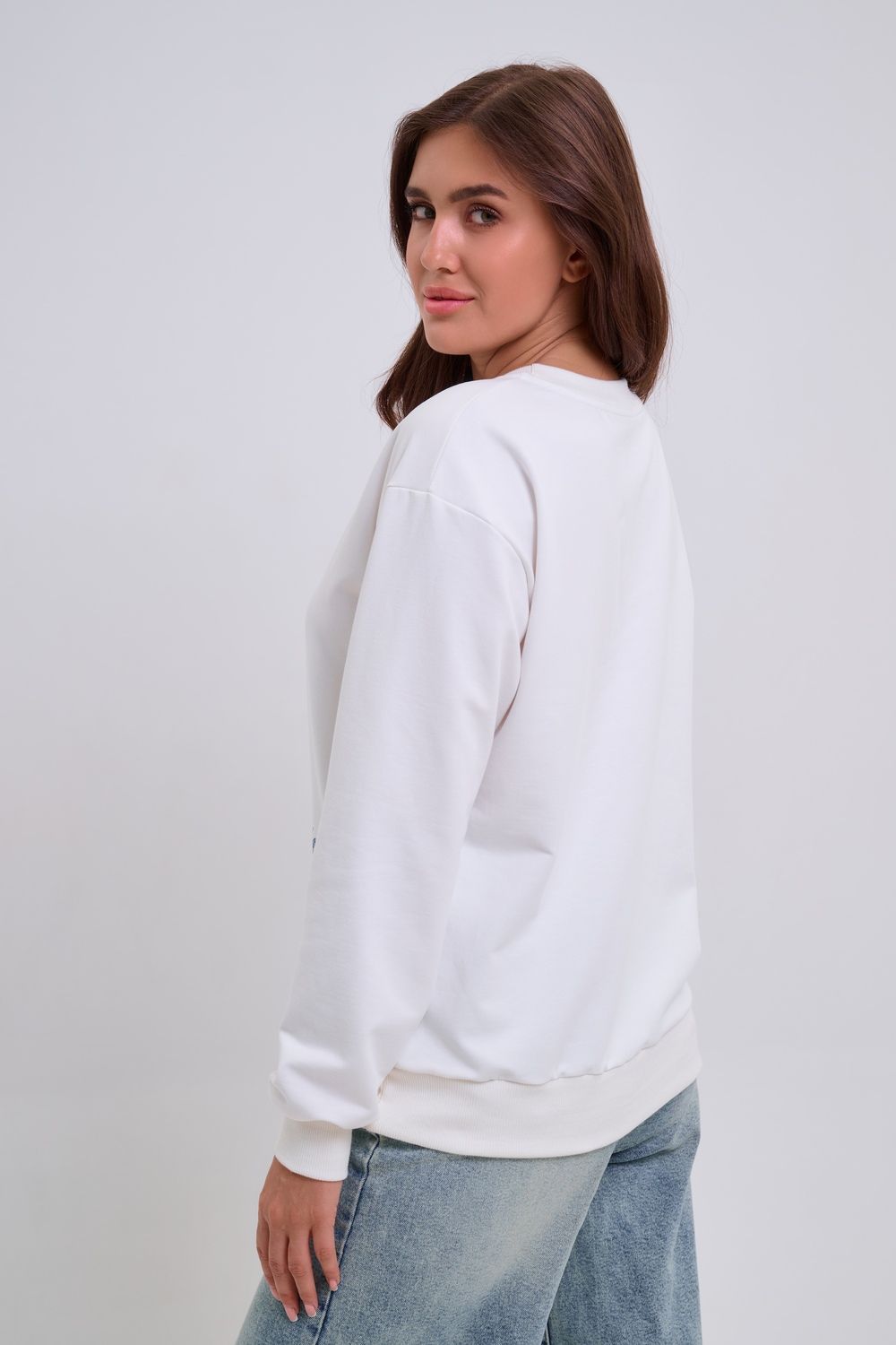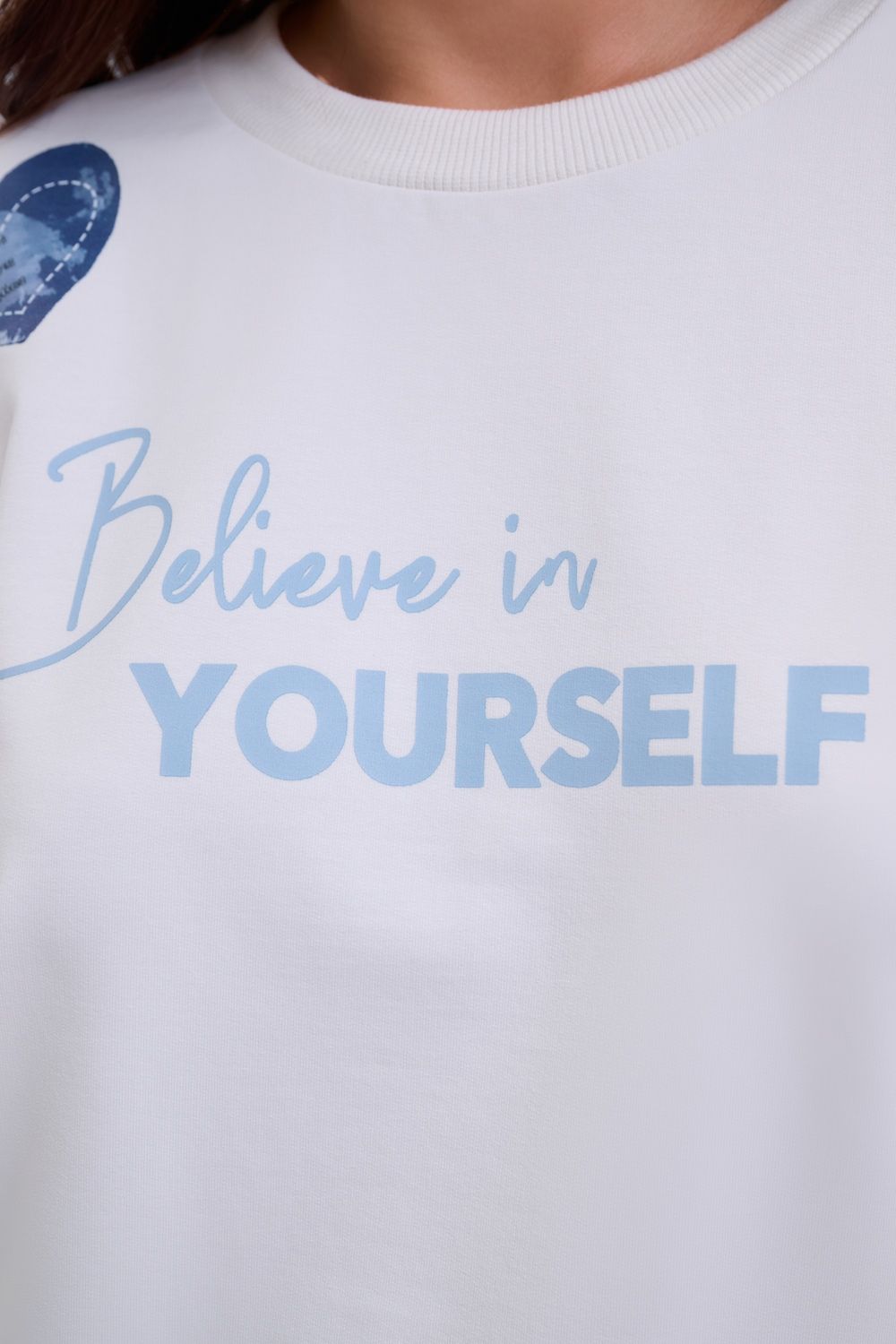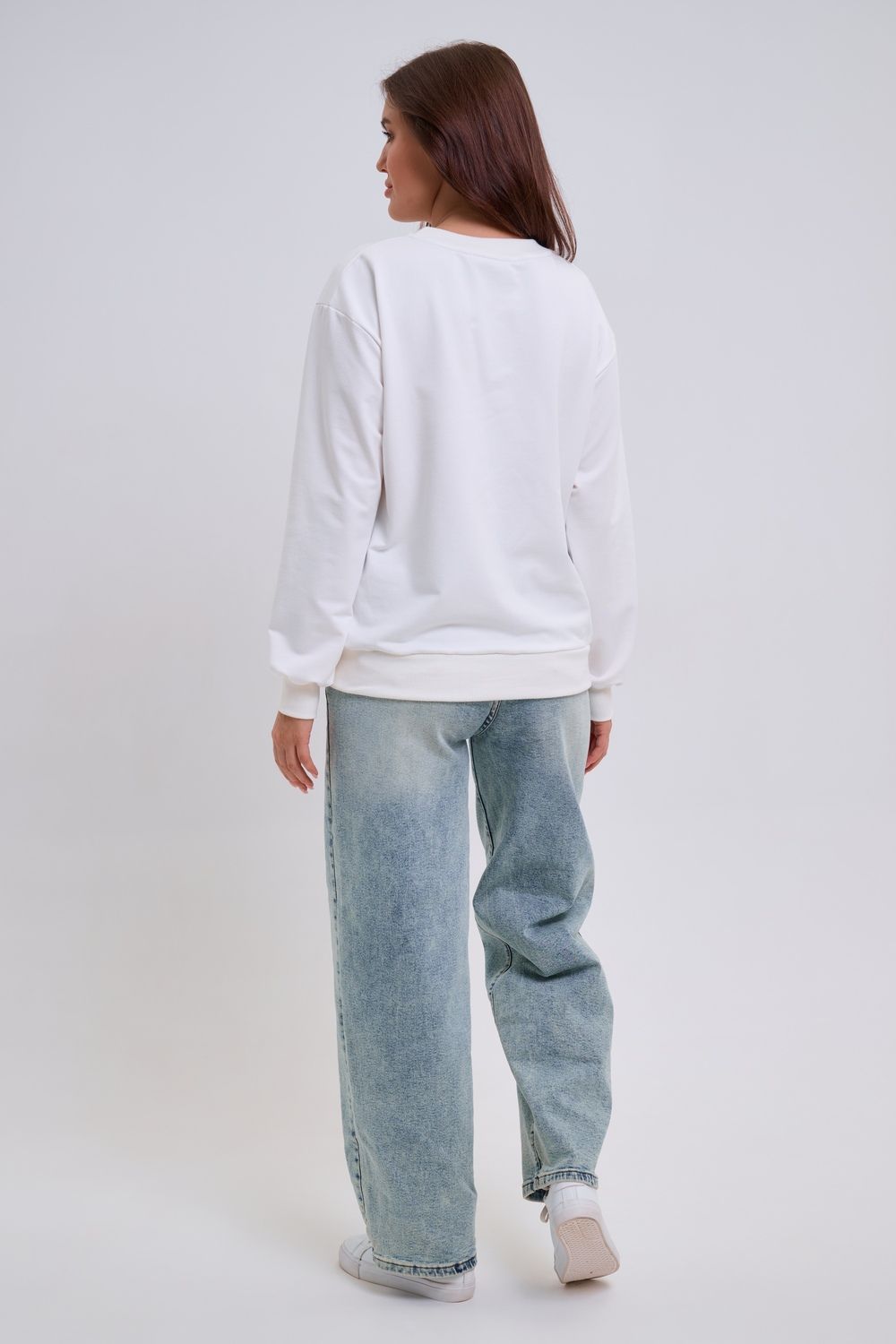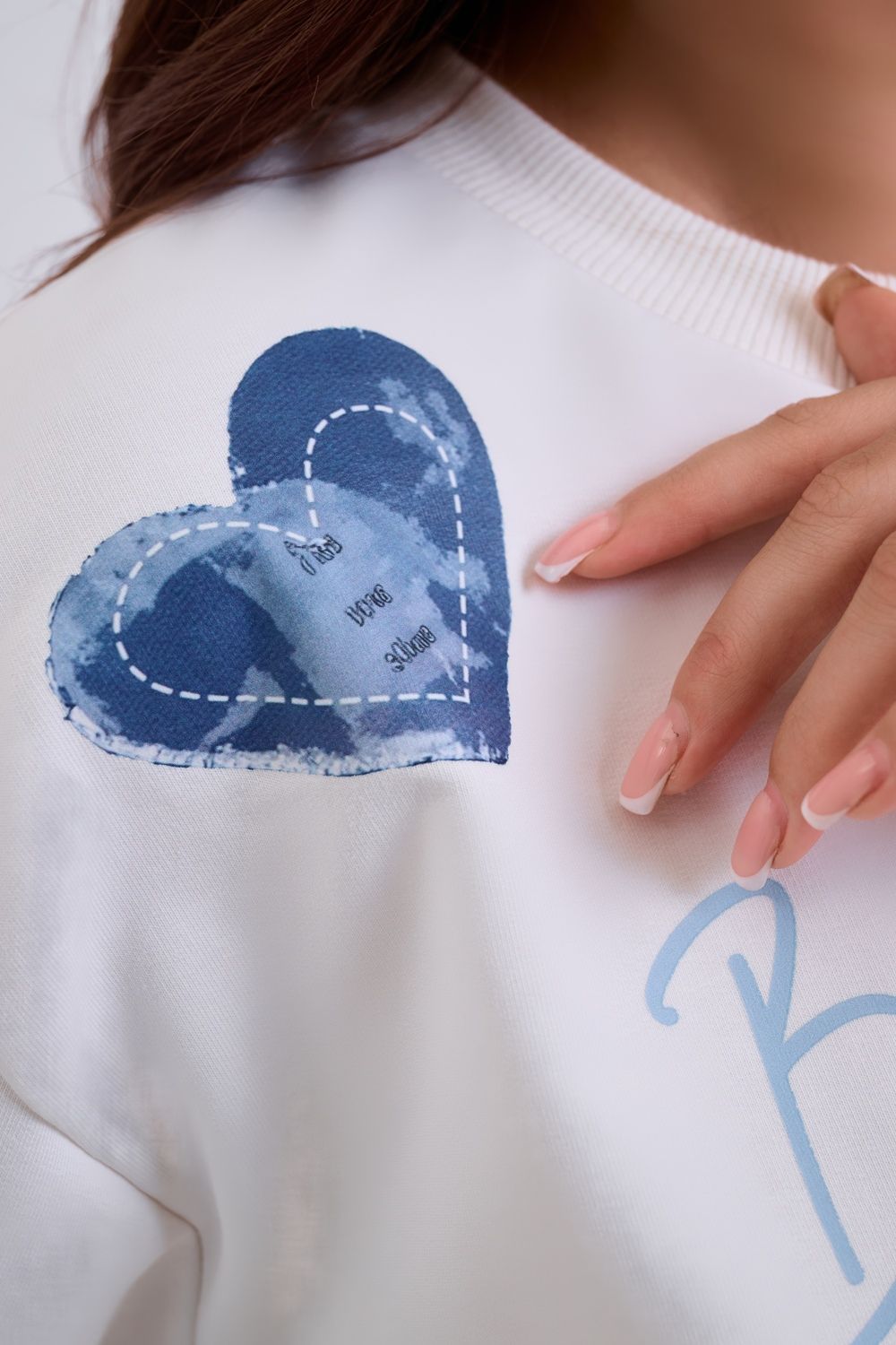 Женский свитшот свободного прямого кроя с круглой горловиной и слегка приспущенными плечами. Спереди нанесён принт в виде сердец и надписи. Выполнен из мягкого и приятного материала — футера 2-х нитки, обеспечивающего дополнительный комфорт и сохранение тепла даже в холодную погоду. Доступен в сдвоенных размерах, что удобно для подбора идеальной посадки. Подходит как для повседневной носки, так и для создания эффектных образов в любом стиле.