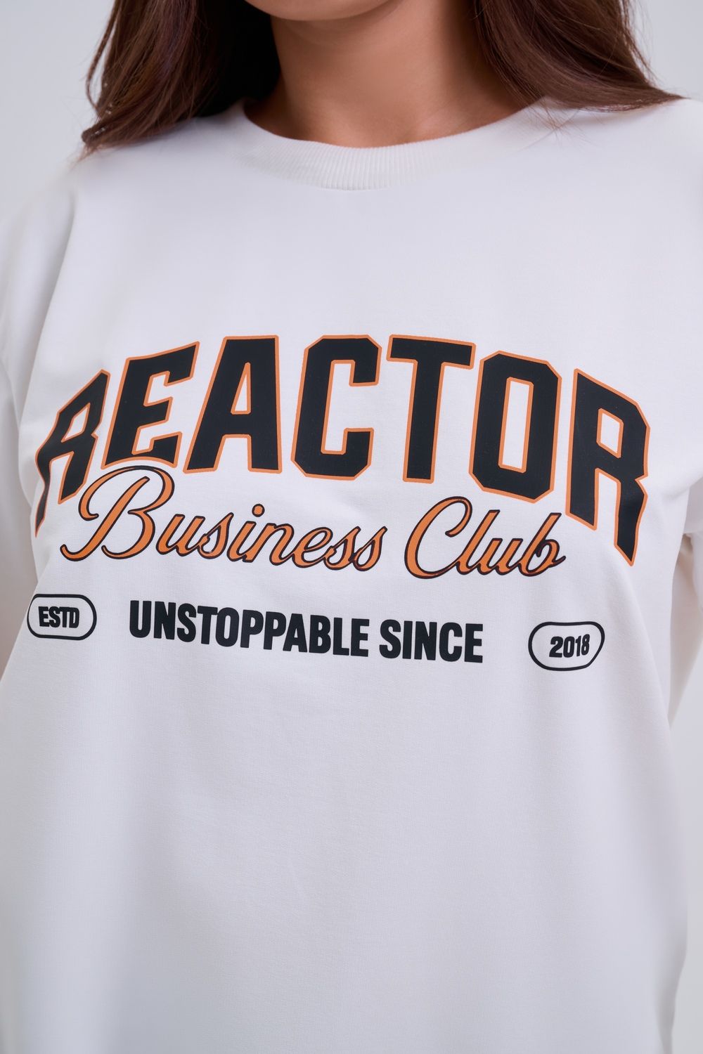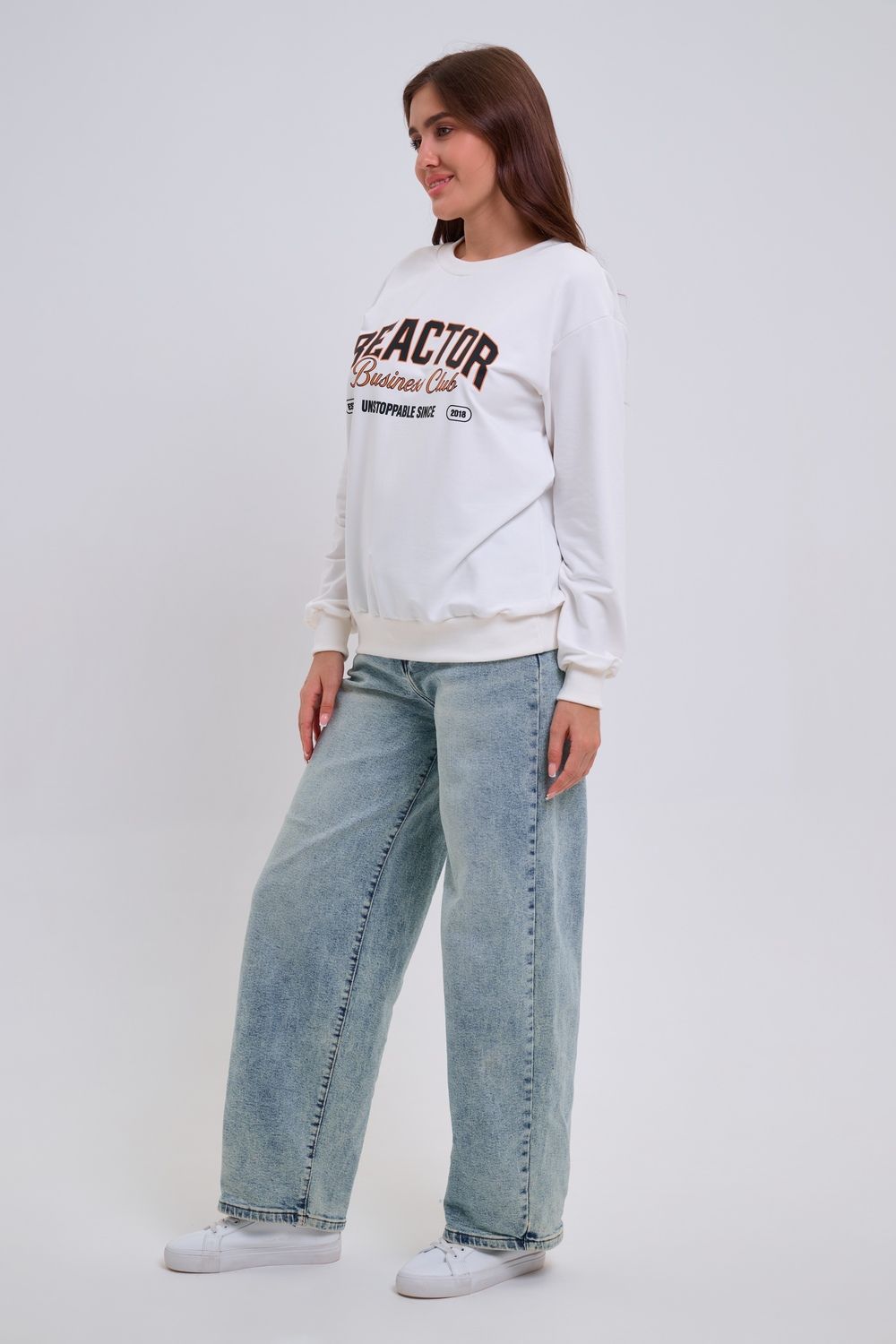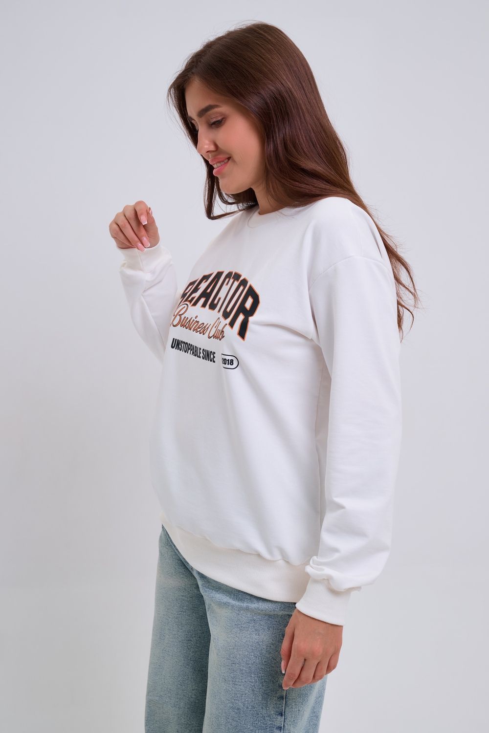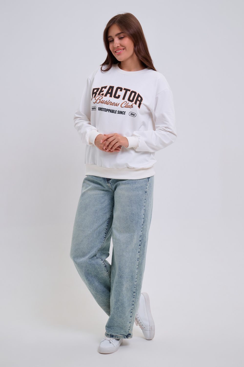 Женский свитшот свободного прямого кроя с круглой горловиной и слегка приспущенными плечами. Спереди нанесён принт в виде надписи "REACTOR". Выполнен из мягкого и приятного материала — футера 2-х нитки, обеспечивающего дополнительный комфорт и сохранение тепла даже в холодную погоду. Доступен в сдвоенных размерах, что удобно для подбора идеальной посадки. Подходит как для повседневной носки, так и для создания эффектных образов в любом стиле.
