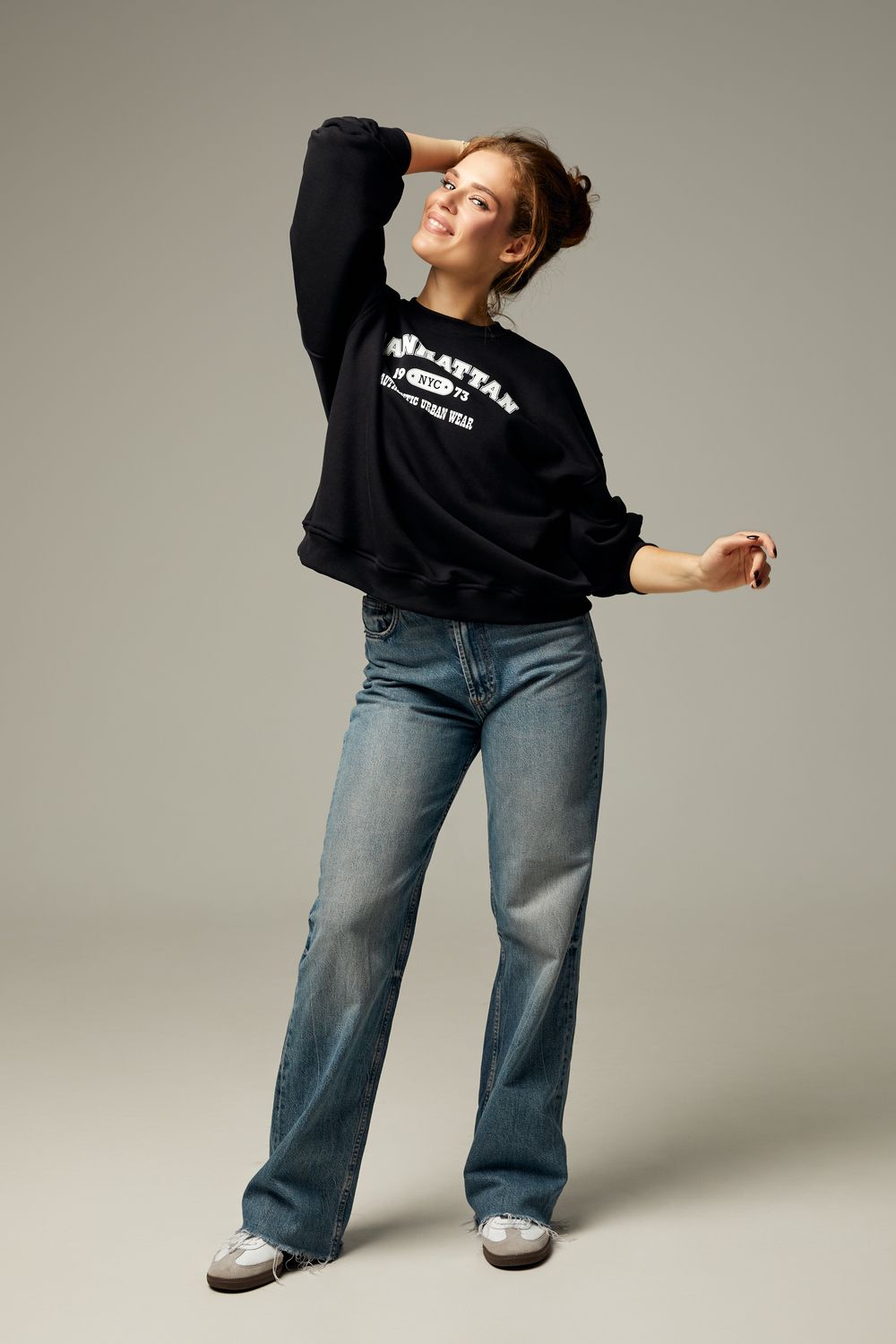 Свитшот с оригинальным принтом, сотканный из ткани премиального качества, словно мягкое объятие, согреет в прохладные дни. Женский свитшот oversize – это чистый холст для вашего воображения, гармонично вписывающийся в любой ансамбль. Дополните его дерзкими аксессуарами: массивными серьгами, экстравагантной сумкой, чтобы раскрыть грани своей индивидуальности и создать образ, уникальный, как отпечаток пальца. Толстовка женская оверсайз – это ваш пропуск в мир непринужденного шика, где уют и стиль переплетаются в едином танце, рождая образ вне времени и трендов.