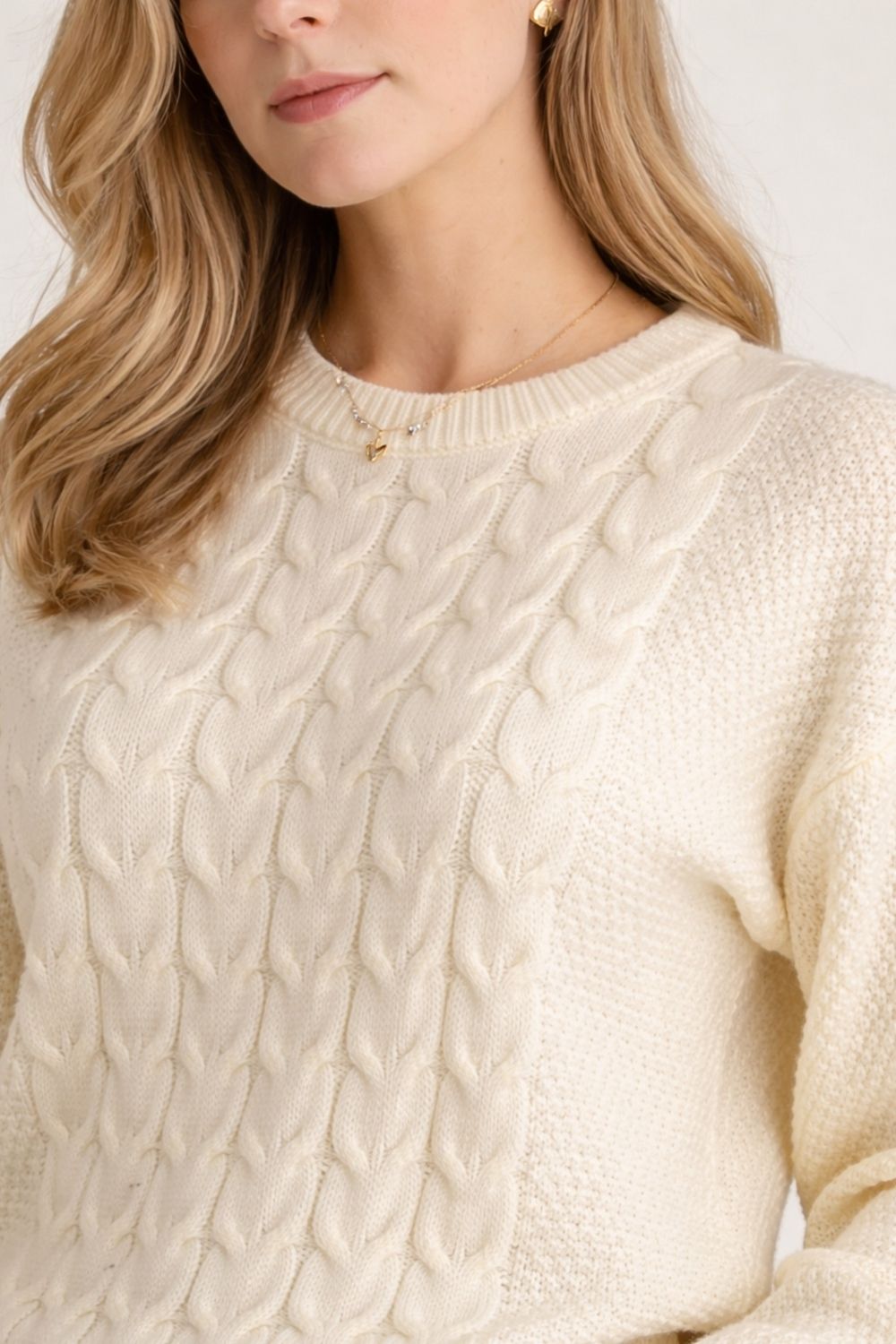 Теплая кофта Cable Knit арт. 2026 - молочный