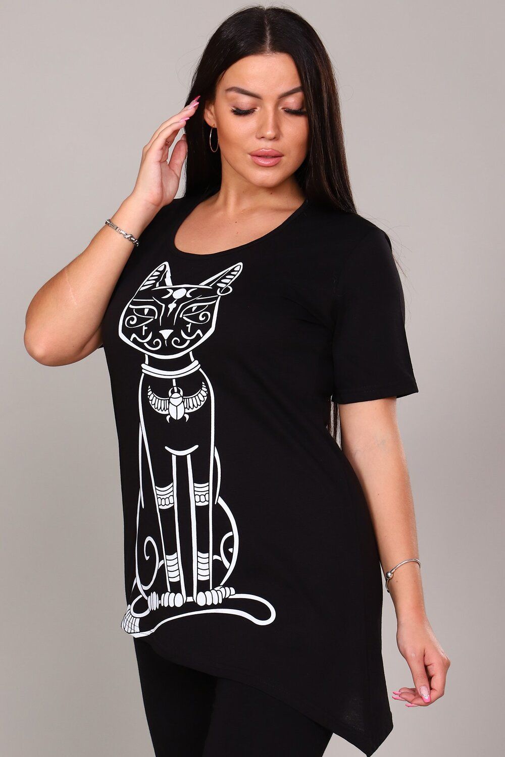 Элегантная и загадочная, эта туника идеально сочетает современный крой и элементы древней символики. Модель выполнена в классическом черном цвете, который стройнит фигуру и служит идеальным фоном для выразительного принта.