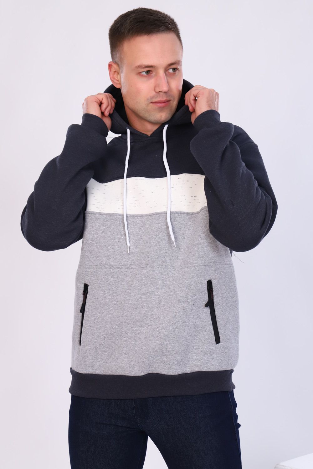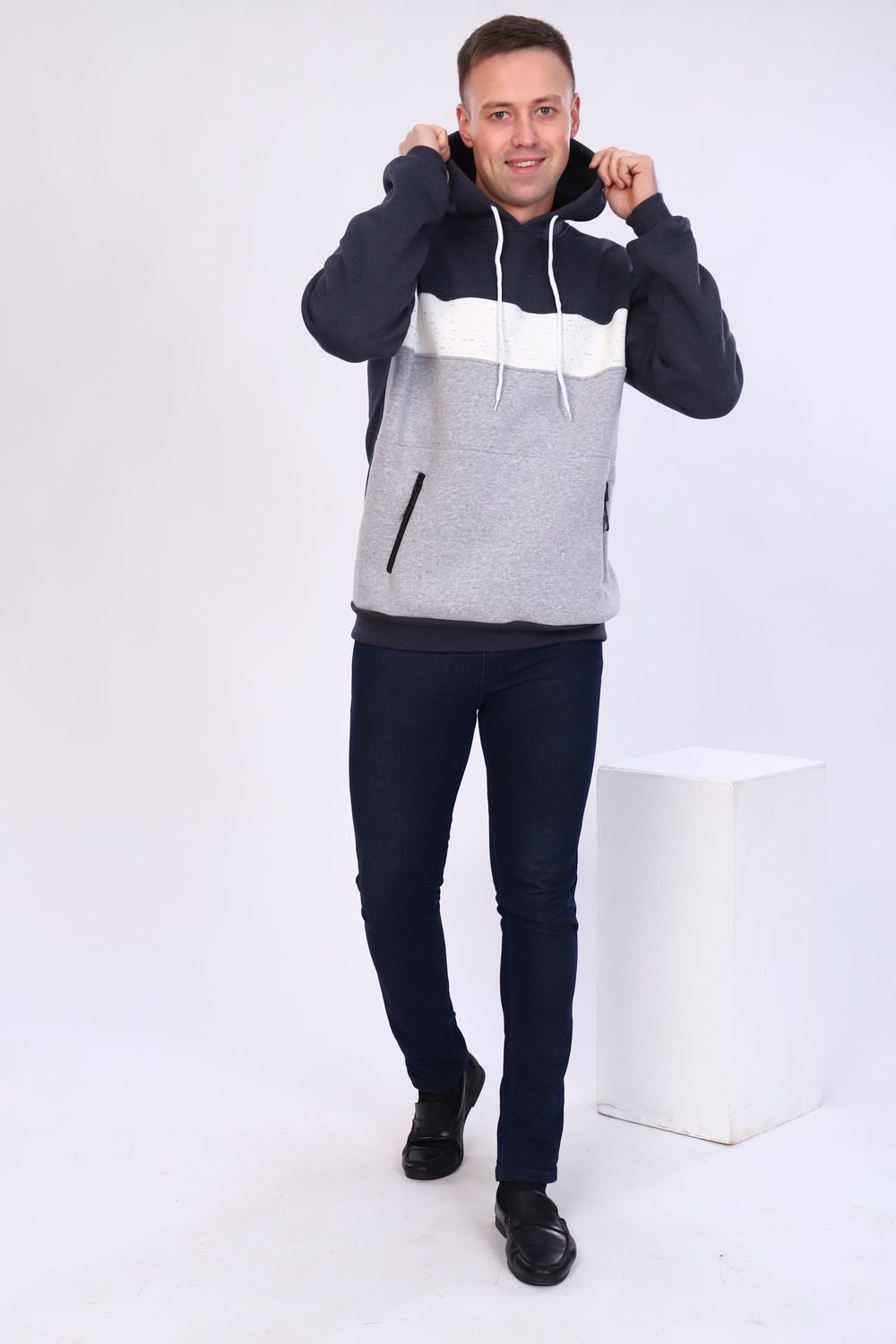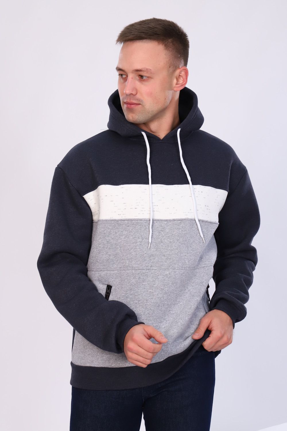 Стильная мужская толстовка с капюшоном выполнена из футера трёх нитки пенье компакт. Она имеет начес, что делает её идеальным выбором для прохладных дней. Капюшон регулируется шнурком. По бокам расположены вместительные карманы на молнии (кенгуру). Доступна в нескольких базовых расцветках с контрастными вставками по типу колор-блок. Первая стирка с изнаночной стороны при 30 градусах. При первой стирке ворс начеса полиняет. Это нормально.
