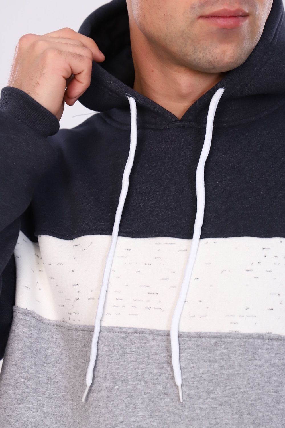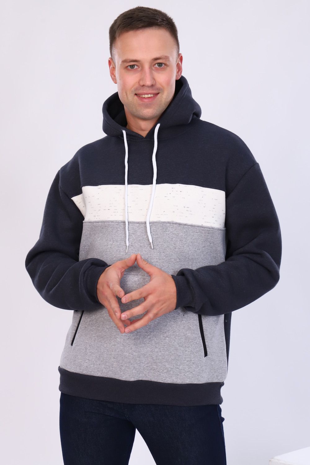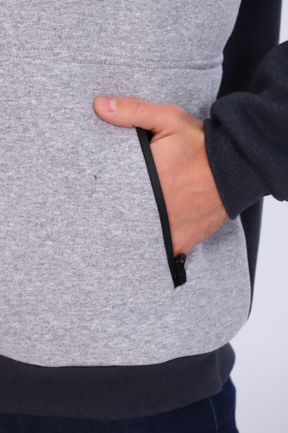 Стильная мужская толстовка с капюшоном выполнена из футера трёх нитки пенье компакт. Она имеет начес, что делает её идеальным выбором для прохладных дней. Капюшон регулируется шнурком. По бокам расположены вместительные карманы на молнии (кенгуру). Доступна в нескольких базовых расцветках с контрастными вставками по типу колор-блок. Первая стирка с изнаночной стороны при 30 градусах. При первой стирке ворс начеса полиняет. Это нормально.