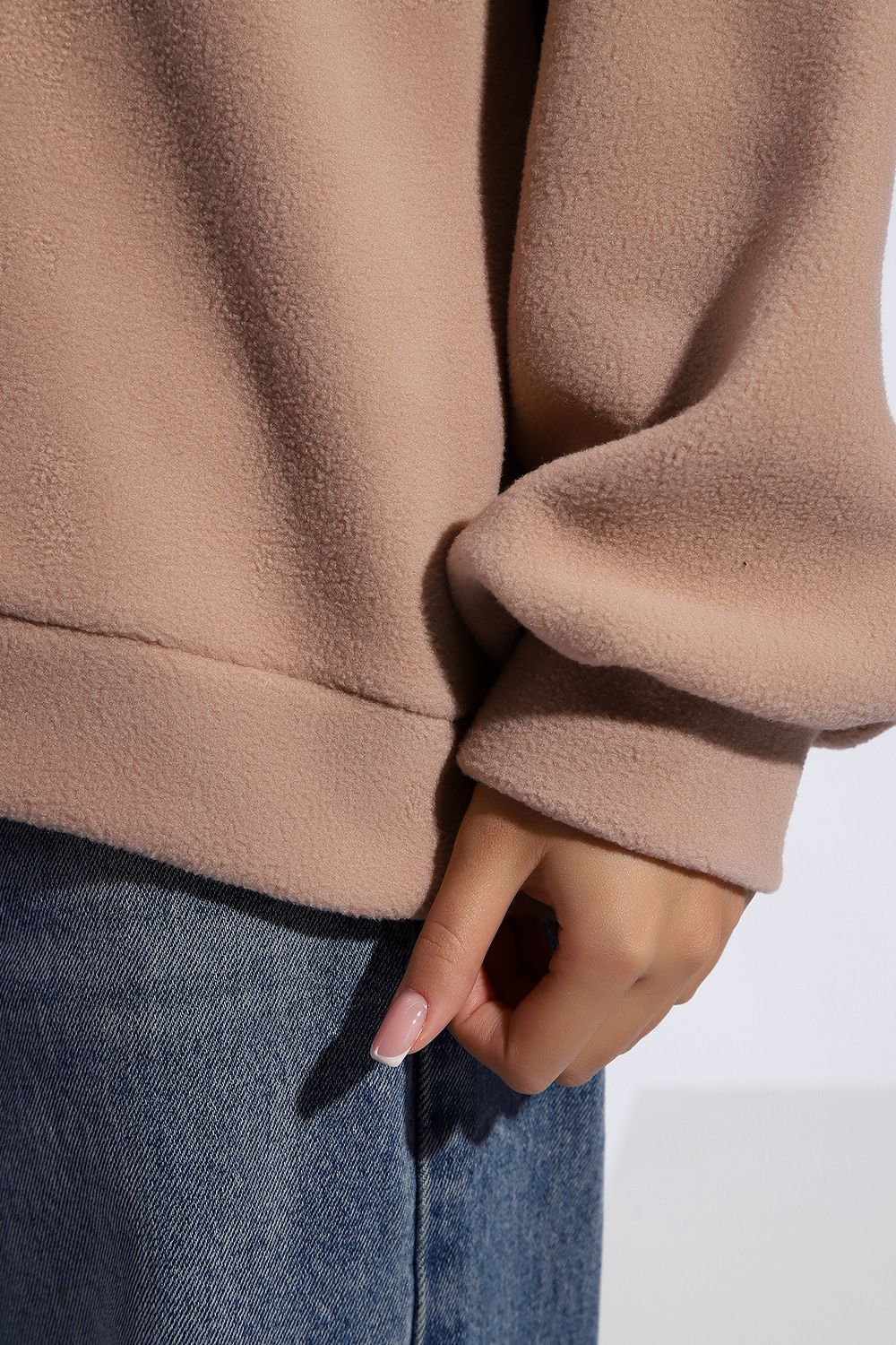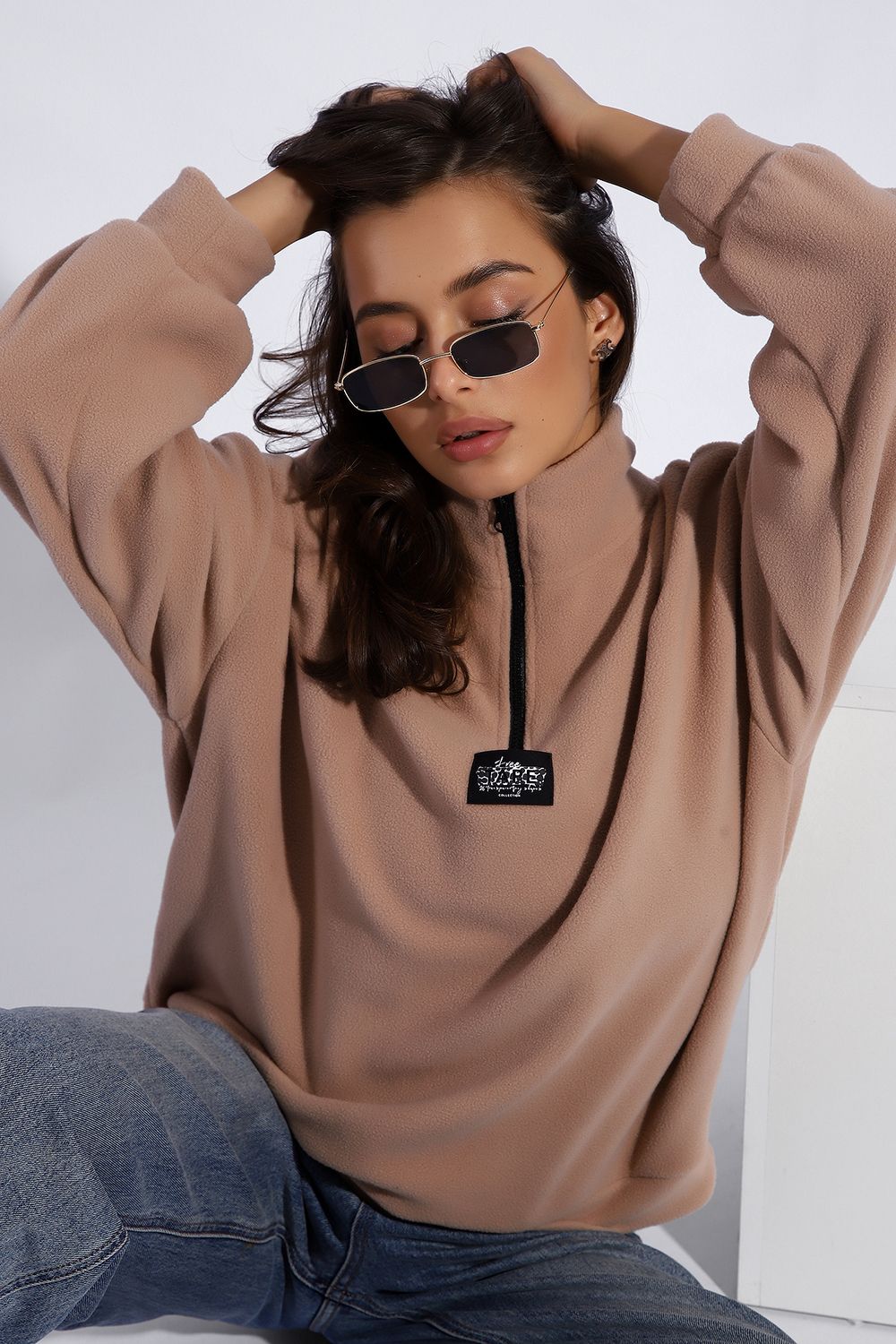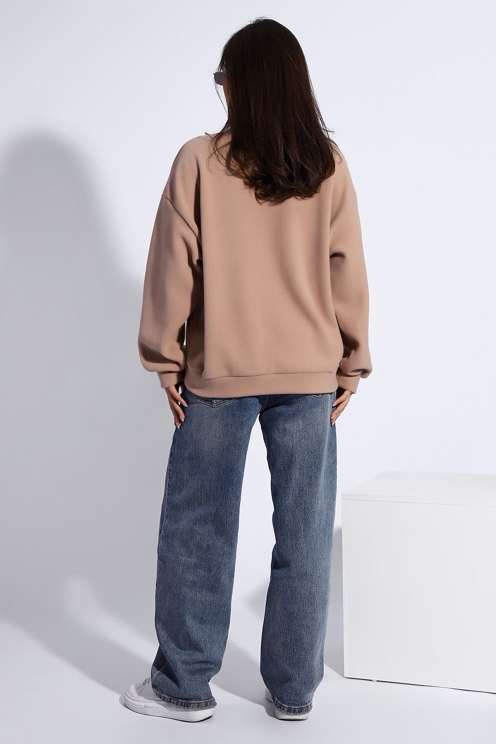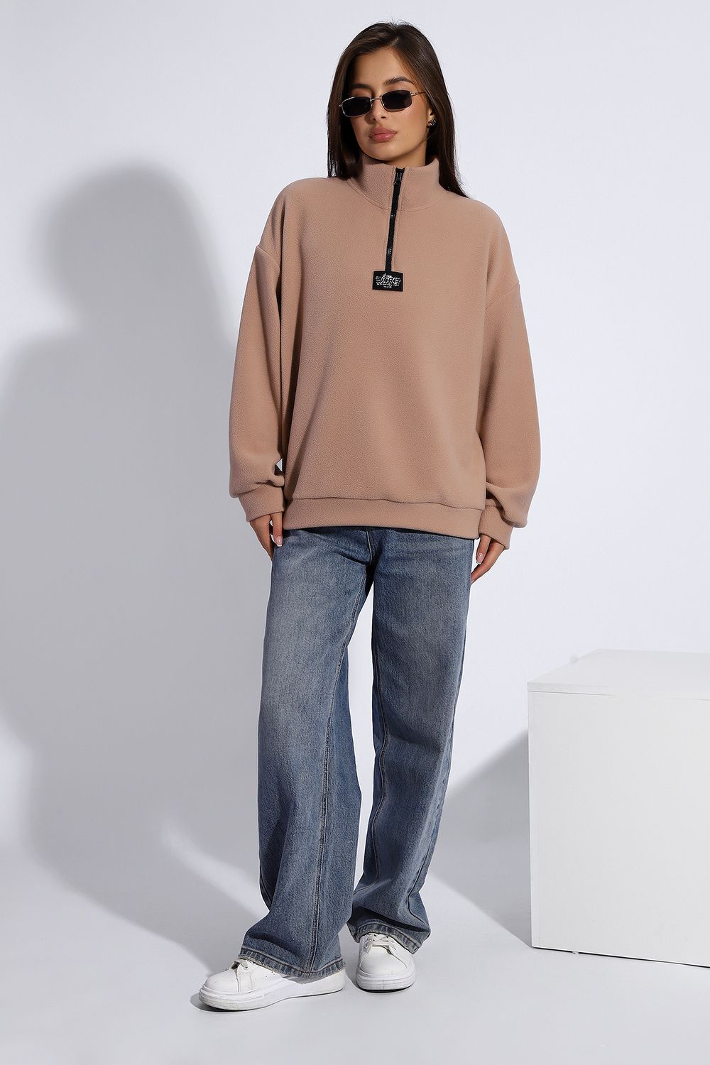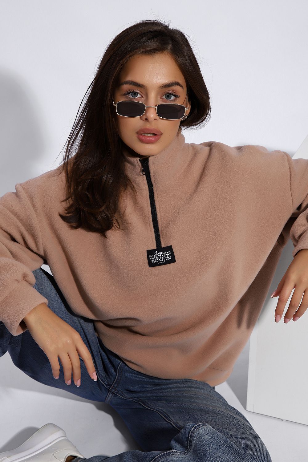 Уютная теплая толстовка из мягкого флиса. Воротник стойка, застежка молния-трактор, контрастная нашивка. Универсальный свободный крой оверсайз. Манжеты на рукавах и по низу изделия. На модели изделие 46-48 размера (параметры модели: рост 167 см., ОГ 85 см., ОТ 60 см., ОБ 89 см.)