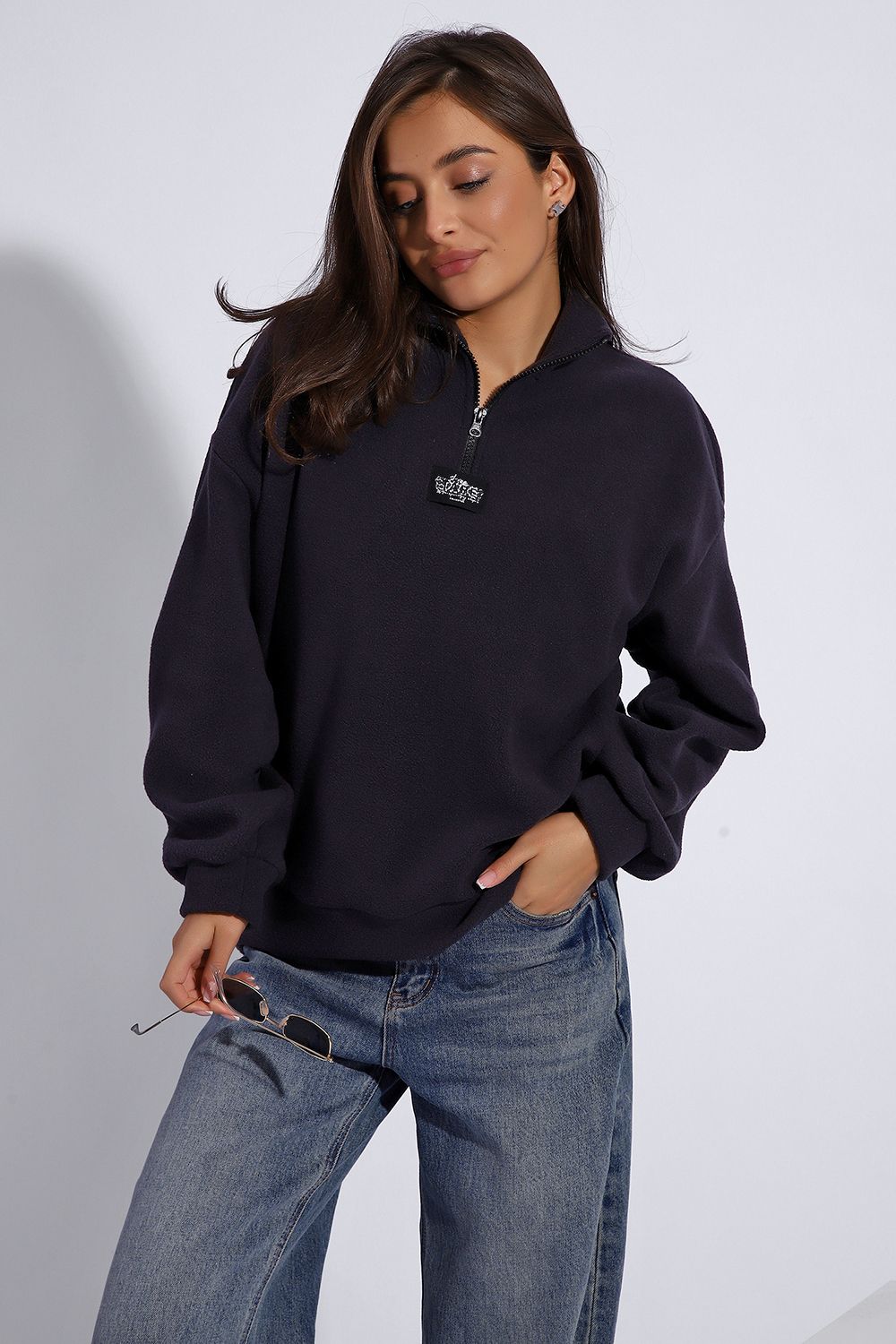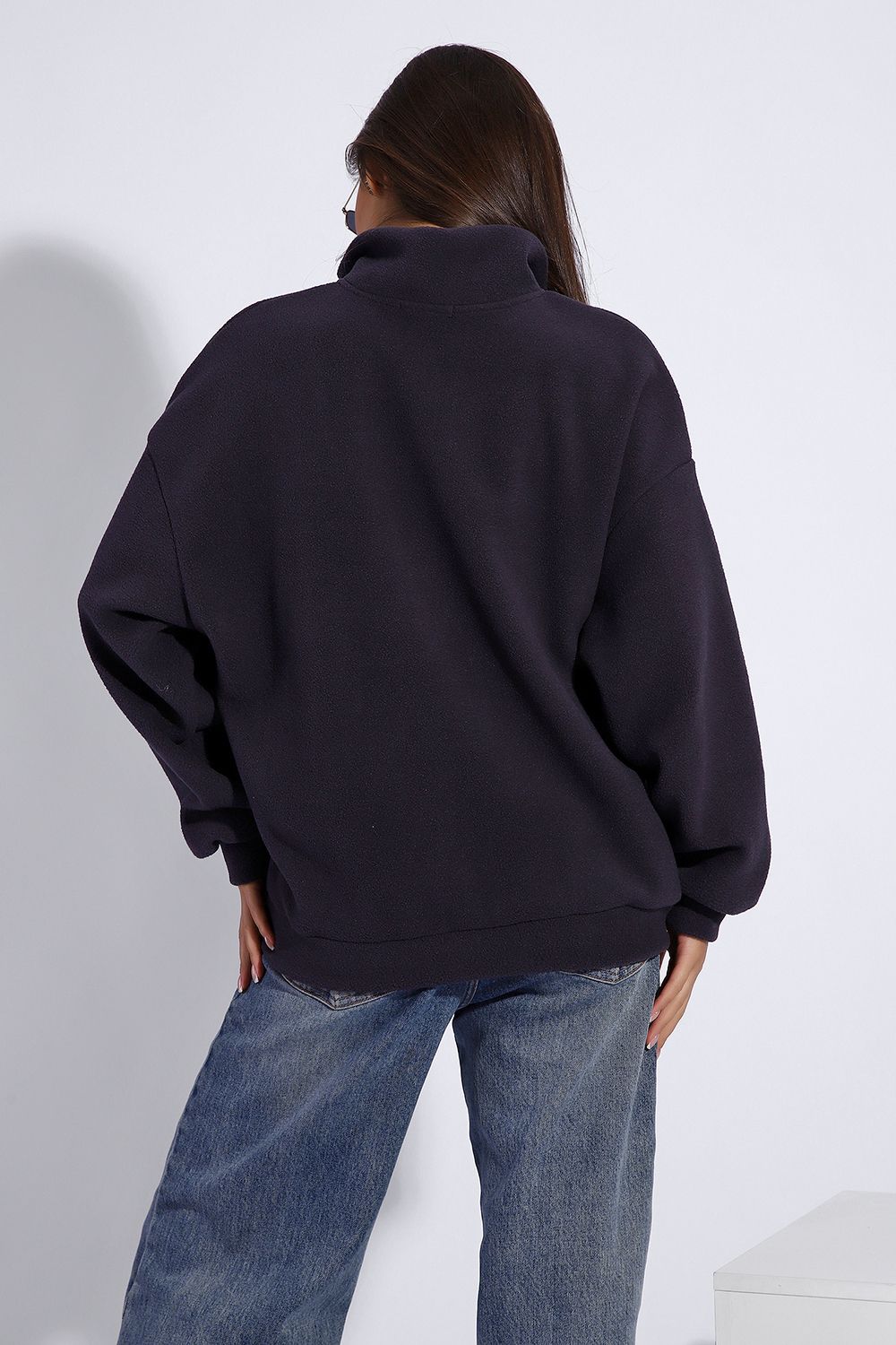 Уютная теплая толстовка из мягкого флиса. Воротник стойка, застежка молния-трактор, контрастная нашивка. Универсальный свободный крой оверсайз. Манжеты на рукавах и по низу изделия. На модели изделие 46-48 размера (параметры модели: рост 167 см., ОГ 85 см., ОТ 60 см., ОБ 89 см.)