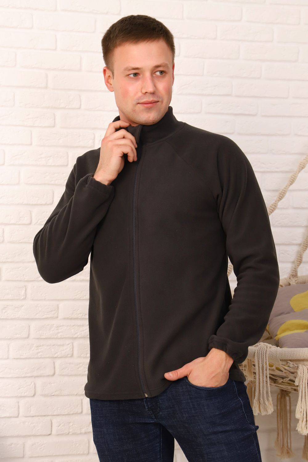 Теплая мужская куртка из флиса с рукавом-регланом.