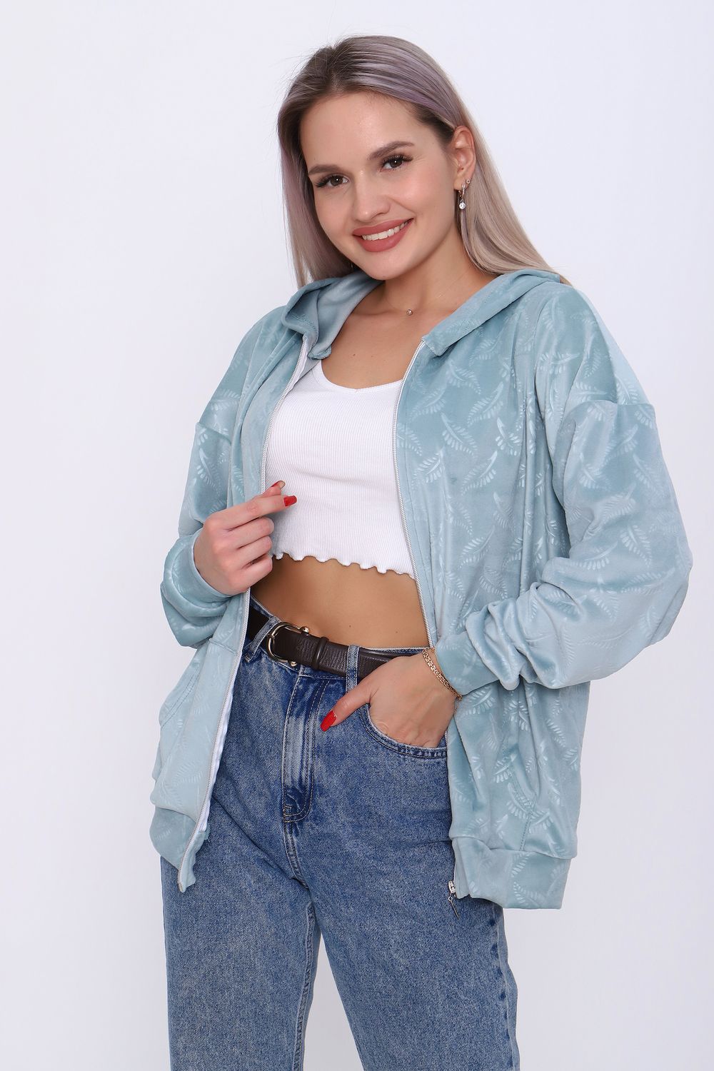 Толстовка женская оверсайз, застегивается на длинную молнию, выполнена из велюра с теснением. Толстовка застегивается на молнию, боковые глубокие карманы и несъемный капюшон. Толстовка теплая женская с капюшоном выполнена из мягкого, нежного и приятного трикотажного полотна, имеет свободный крой оверсайз, благодаря чему прекрасно подойдет как для стройных и худеньких девочек или девушек, так и для полных и высоких женщин. Худи женская на молнии - это удобный повседневный вариант верхней одежды в качестве кофты для дома. Можно сочетать с джинсами, брюками, штанами, спортивными брюками, леггинсами и юбками. Женская толстовка идеальна для дома, улицы, прогулок, занятия спортом на свежем воздухе и походов - вещь абсолютно необходимая. Подойдет для девушек и женщин с разным типом фигуры. Замечательный подарок маме, дочери, сестре, бабушке, коллеге или подруге на праздничный день.
