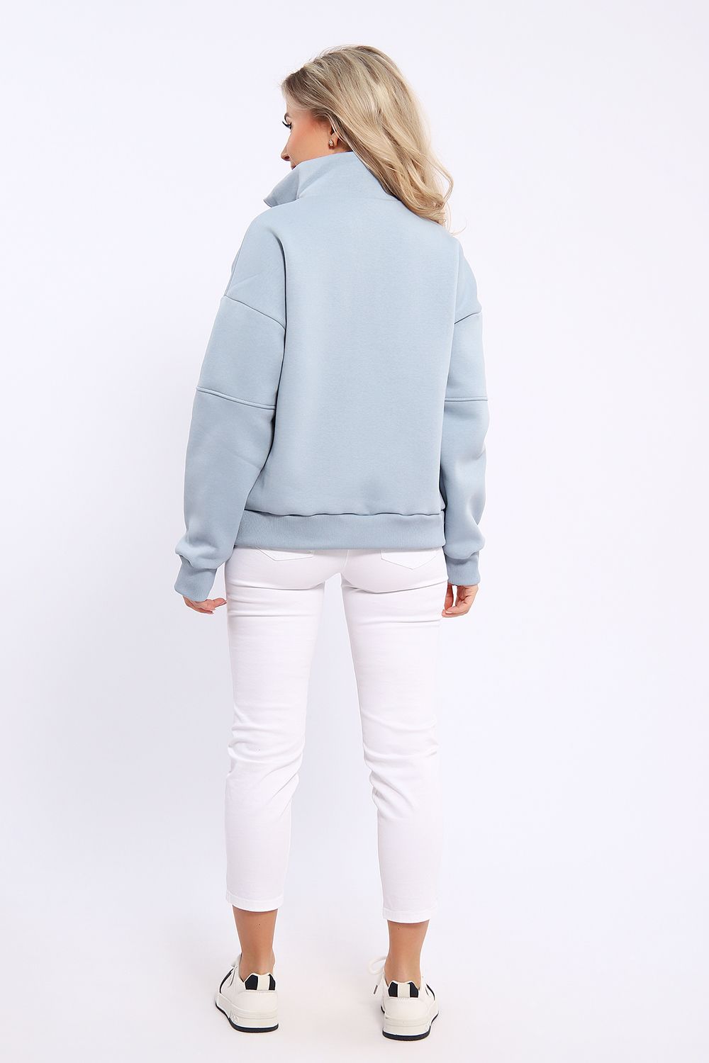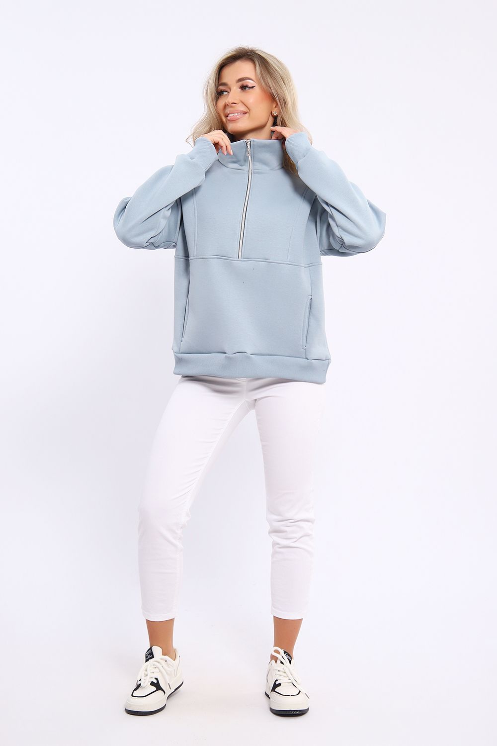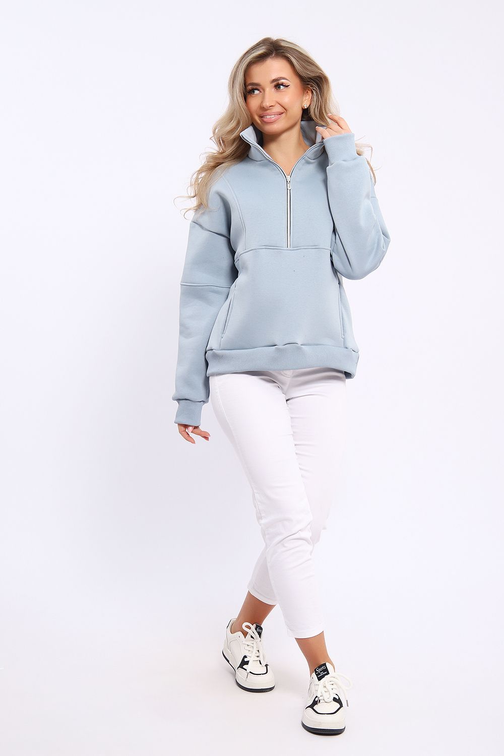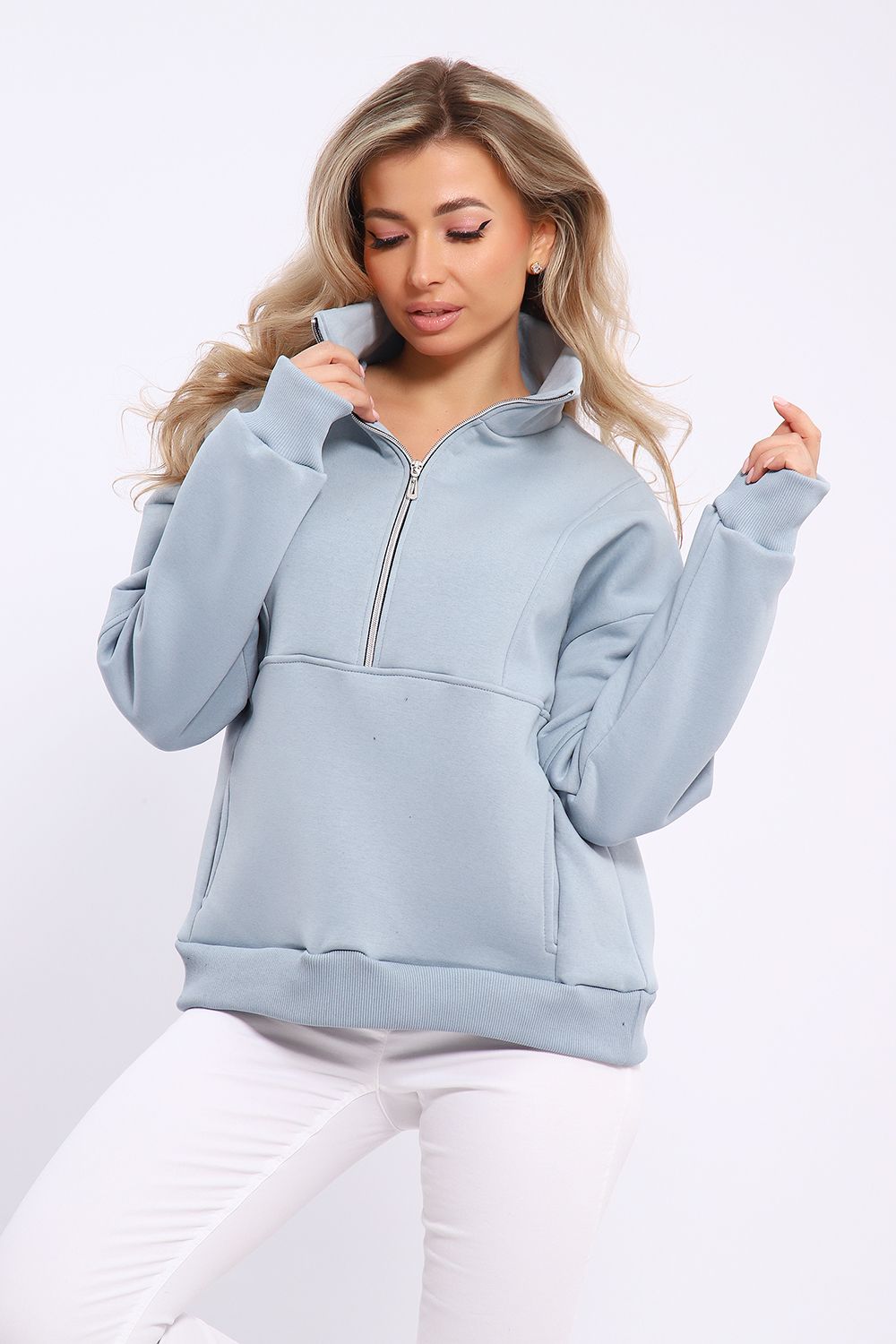 Толстовка свободного силуэта с длинными рукавами на спущенном плече. Рукава на манжетах. Воротник - стойка с застежкой на молнию.