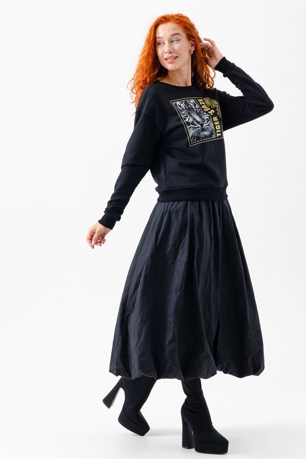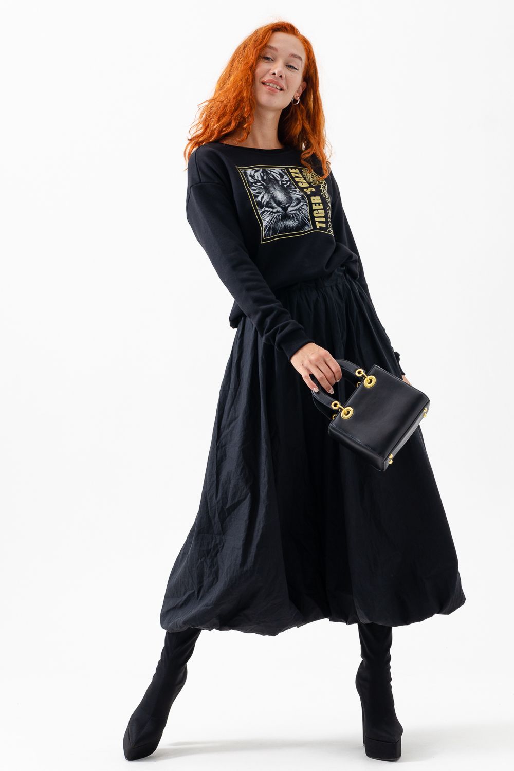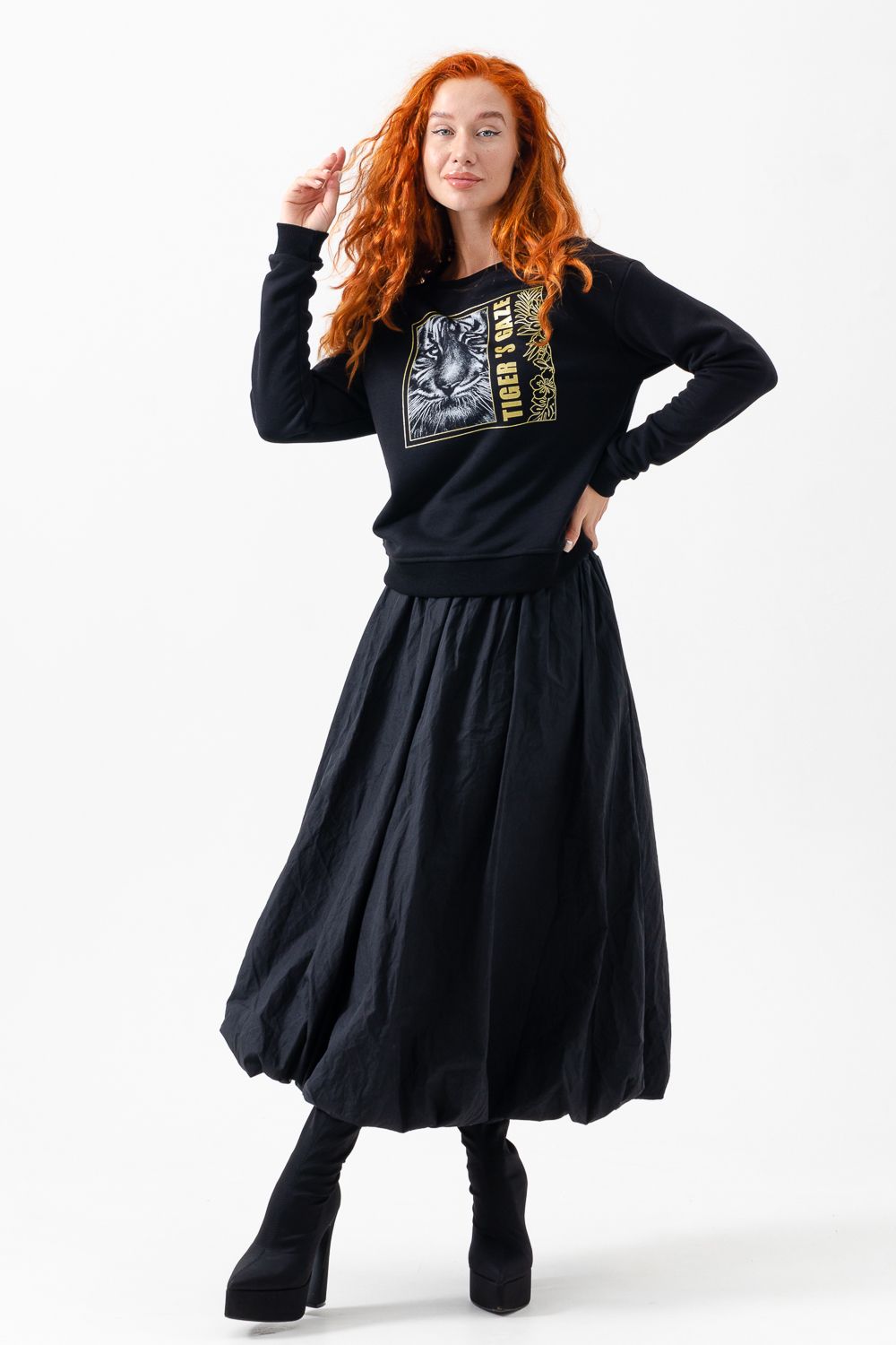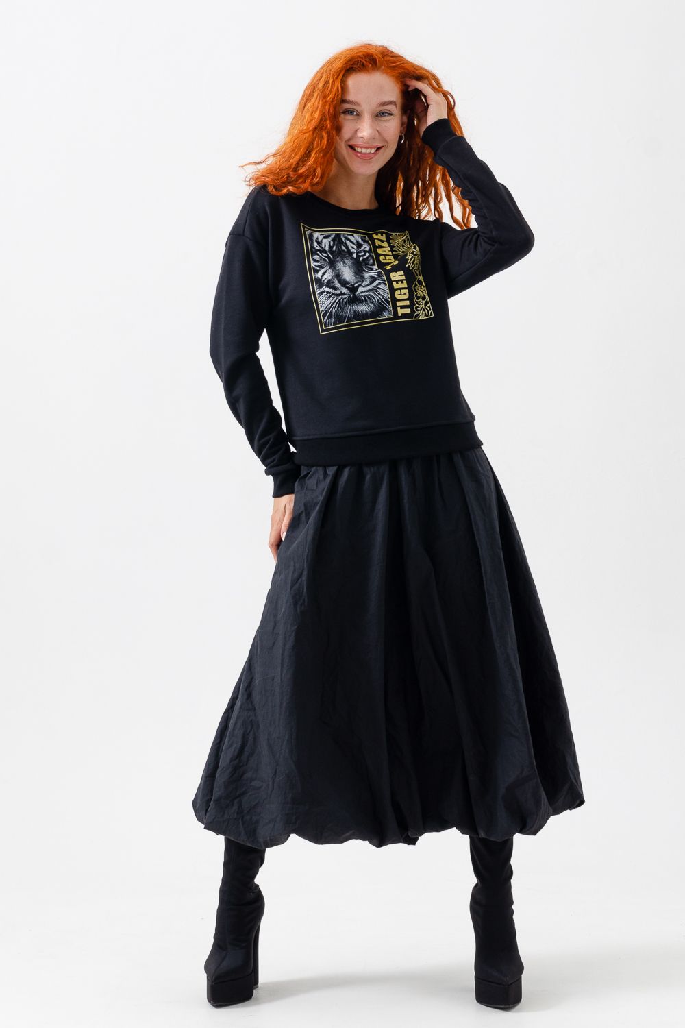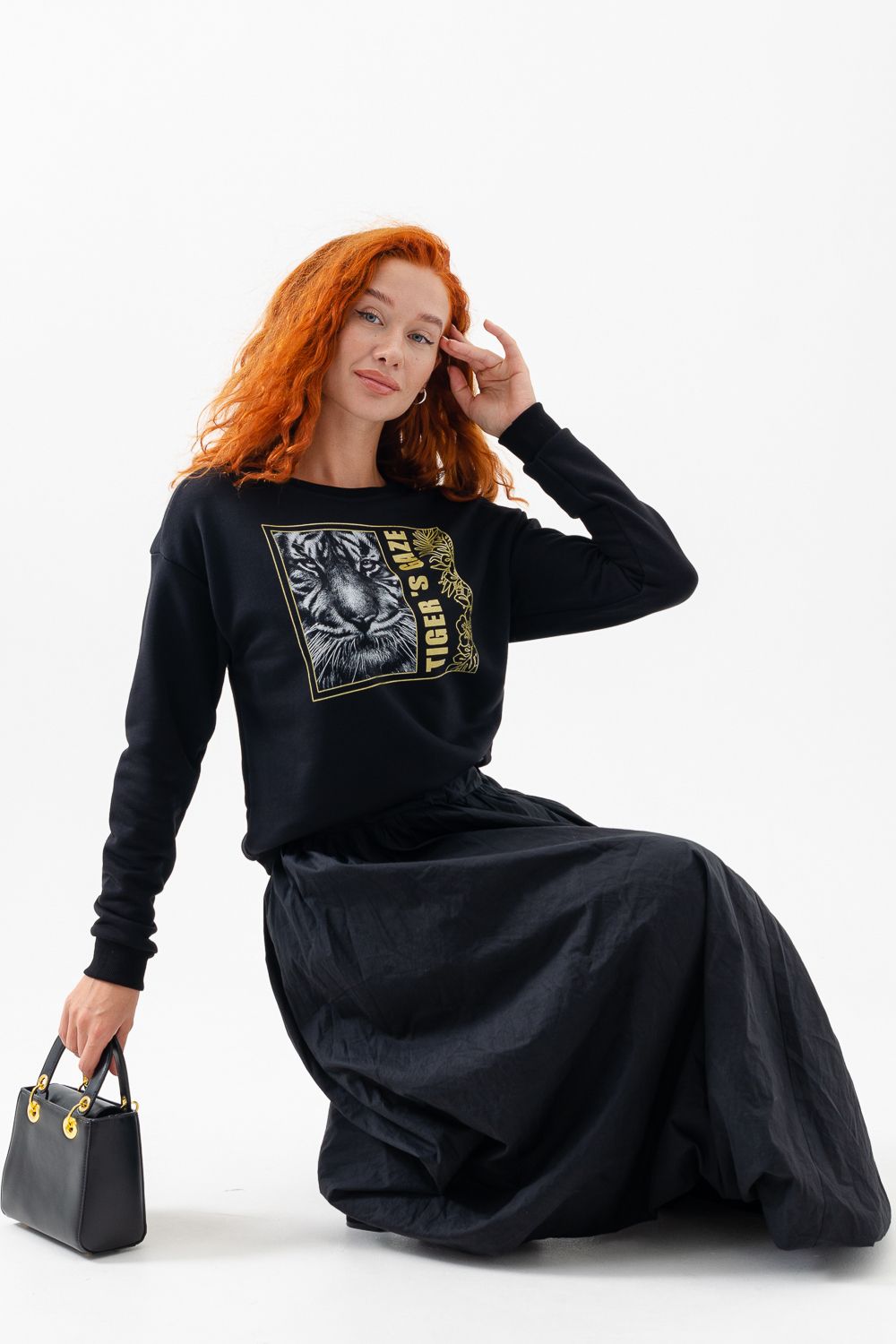Модная, стильная, удобная толстовка с красивым принтом - "Взгляд тигра". Шелкография с золотым глиттером. Благодаря наличию в составе 60% хлопка очень комфортна к телу. Горловина и низ обработаны декоративной строчкой. Шов на горловине спинки закрыт киперной лентой. Длина рукава в измерениях указана от основания шеи. Толстовка предназначена для активного отдыха и повседневной носки.