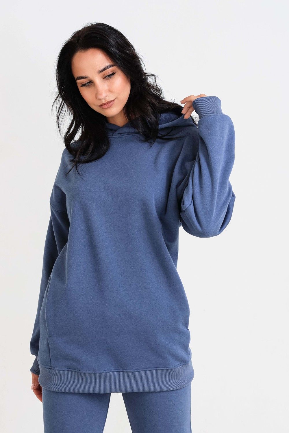 Худи, выполненное из очень качественной ткани - интерсофт с начёсом "барашек". Плотность 320гр. В отличие от ткани футер 3-х нитка, начёс не осыпается и не пилингуется. Ткань плотная, упругая, мягкая, одна из толстых и тёплых видов трикотажа в своей группе. Начёс ткани обработан специально в виде барашка. Очень красивый и приятный к телу. Ткань двухсторонняя - интерлок пенье плюс флис. Худи идеально подходит для холодного время года. Имеет средний объём и прямой силуэт. Поэтому в измерениях указаны одинаковые значения обхватов груди, талии, бёдер. Спущенная линия плеч обеспечит комфорт и свободу движений. Капюшон свободный. На полочке имеется подрезной бочок, в котором располагаются внутренние глубокие карманы. Манжеты выполнены из качественного кашкорсе, которые не растягиваются после стирки. Рекомендуется ручная стирка. В комплект к толстовке можно приобрести брюки 21558; продаются отдельно