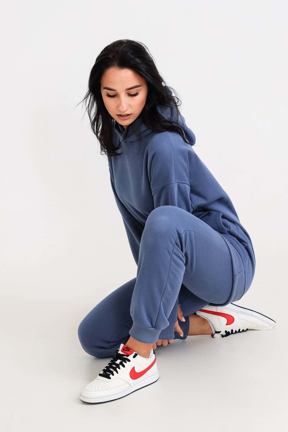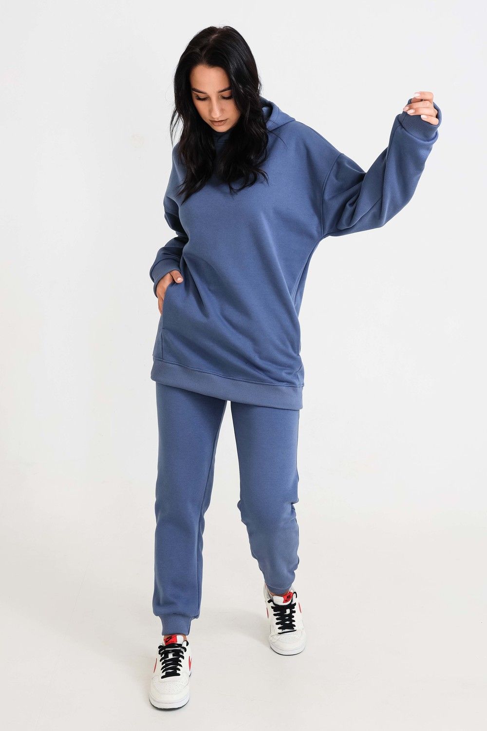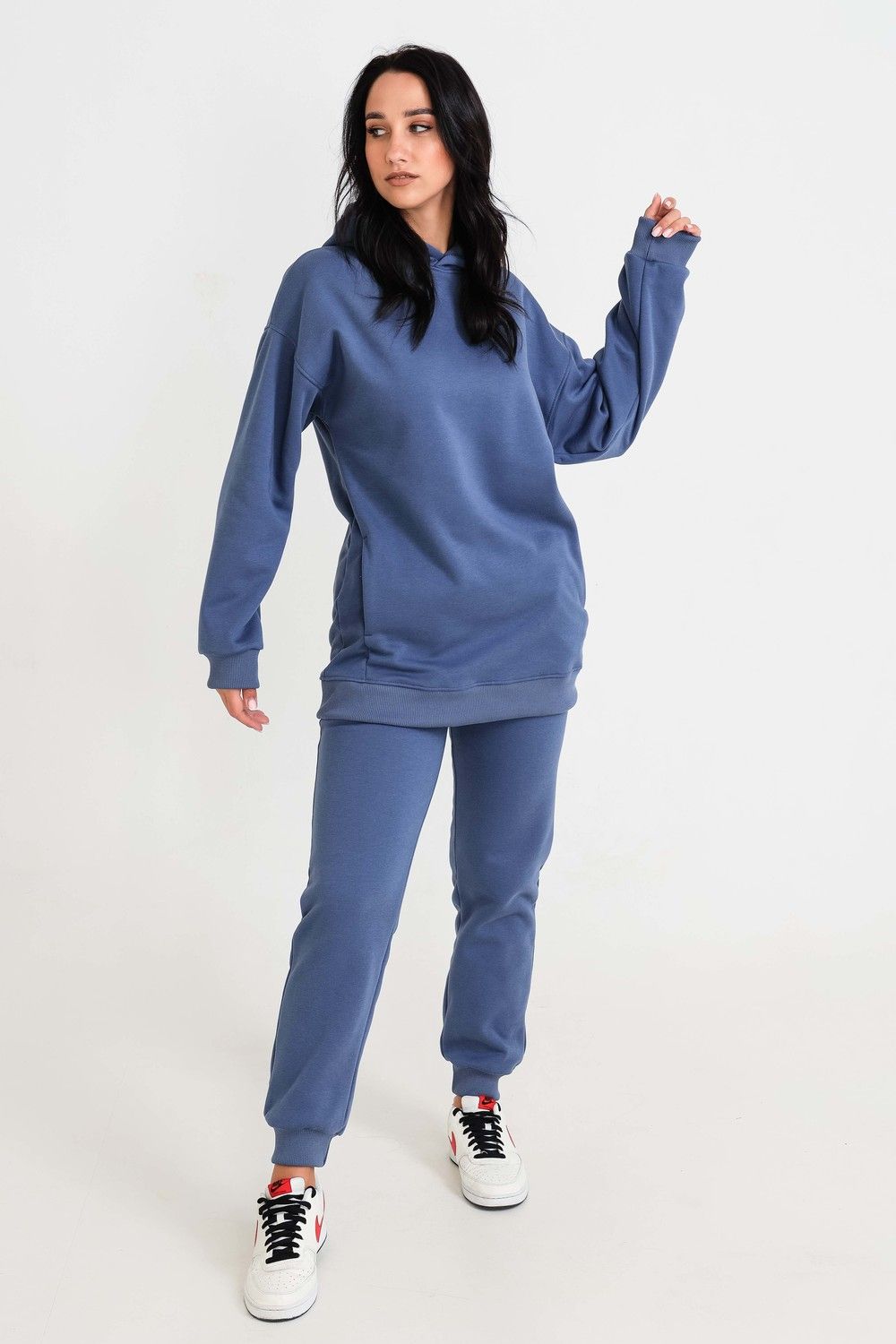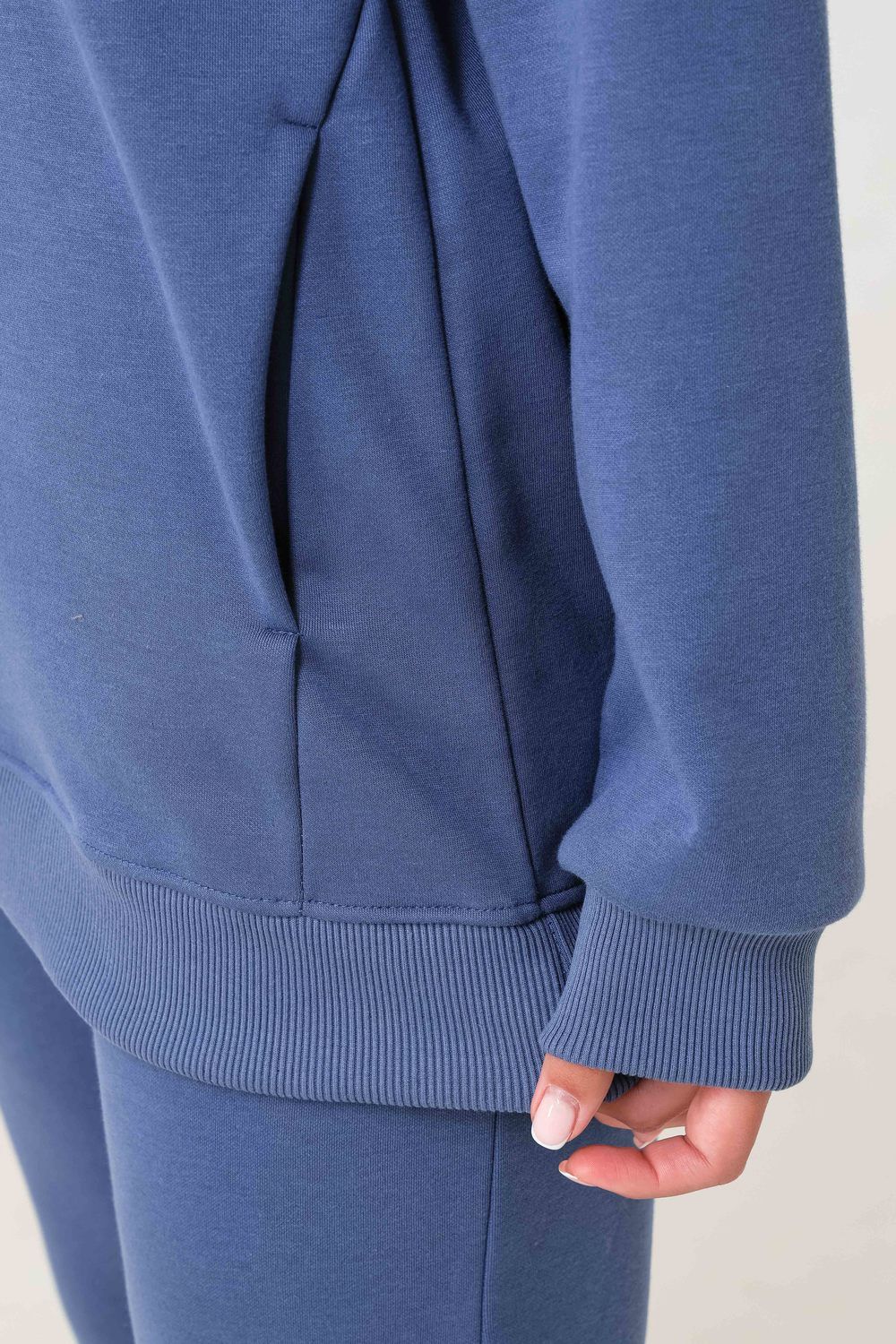 Худи, выполненное из очень качественной ткани - интерсофт с начёсом "барашек". Плотность 320гр. В отличие от ткани футер 3-х нитка, начёс не осыпается и не пилингуется. Ткань плотная, упругая, мягкая, одна из толстых и тёплых видов трикотажа в своей группе. Начёс ткани обработан специально в виде барашка. Очень красивый и приятный к телу. Ткань двухсторонняя - интерлок пенье плюс флис. Худи идеально подходит для холодного время года. Имеет средний объём и прямой силуэт. Поэтому в измерениях указаны одинаковые значения обхватов груди, талии, бёдер. Спущенная линия плеч обеспечит комфорт и свободу движений. Капюшон свободный. На полочке имеется подрезной бочок, в котором располагаются внутренние глубокие карманы. Манжеты выполнены из качественного кашкорсе, которые не растягиваются после стирки. Рекомендуется ручная стирка. В комплект к толстовке можно приобрести брюки 21558; продаются отдельно