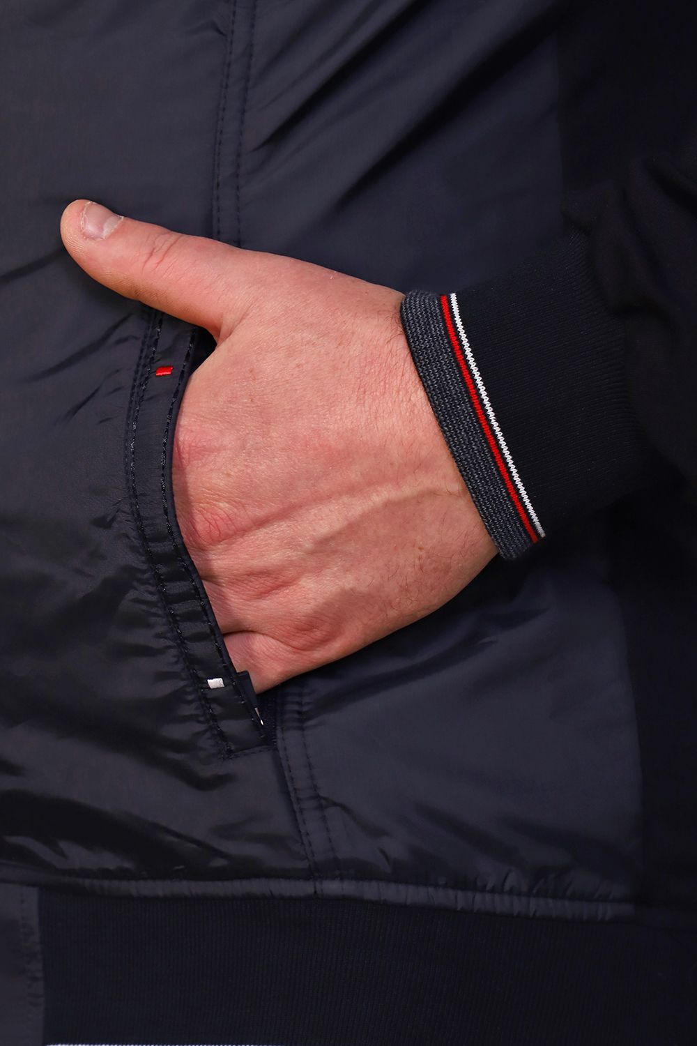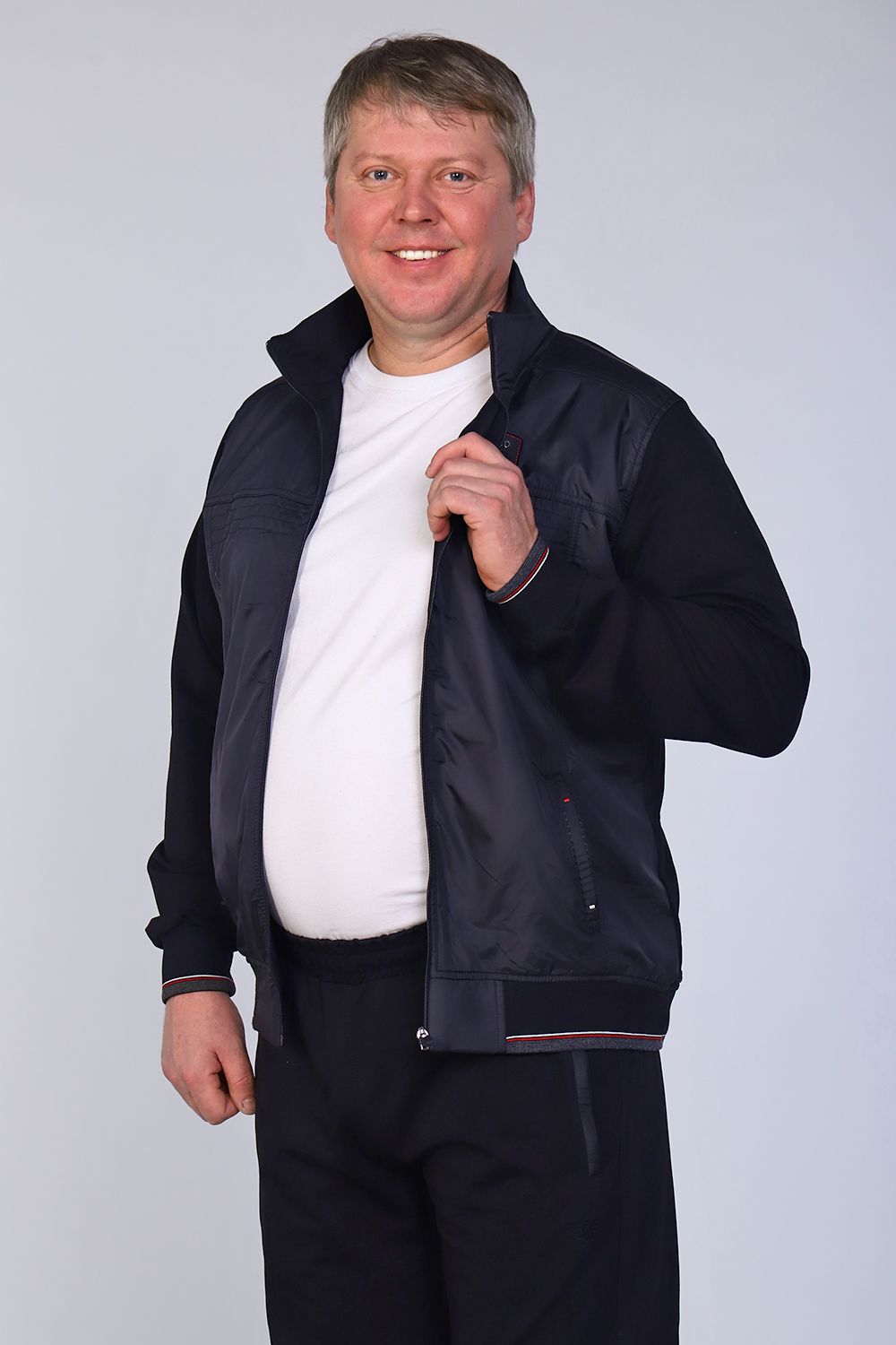 Стильная, спортивная мужская толстовка. Кофта на молнии, низ и рукава на манжетах, карманы декоративные на молнии. Передняя часть кофты с вставкой из плащевки, слева на груди декоративная эмблема, воротник - стойка.
