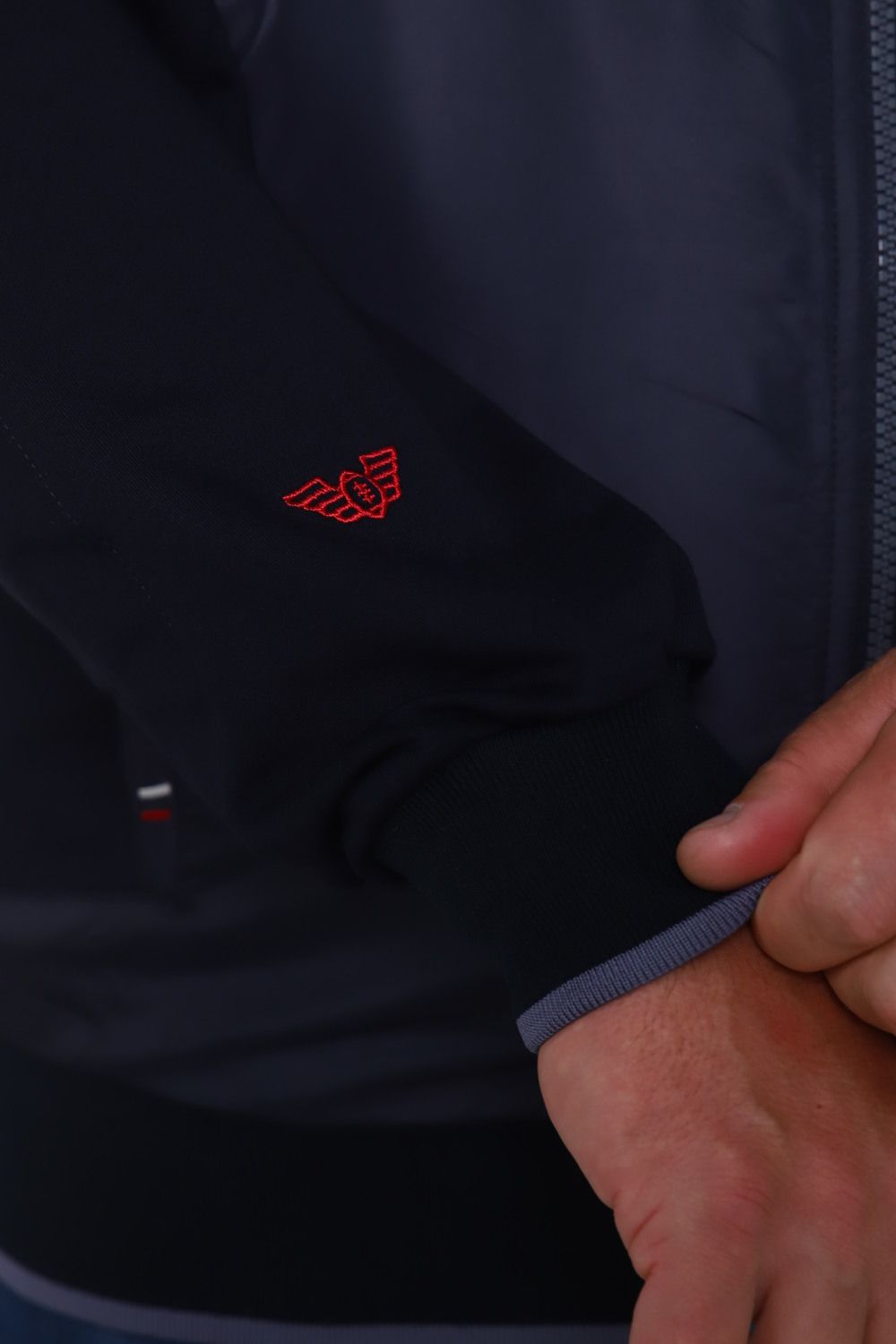 Мужская толстовка, отличного качества, турецкая ткань. Кофта на молнии, два боковых кармана также на молнии, воротник стойка, рукава и низ кофты на манжете, спереди вставка из плащевки. На одном рукаве декоративная вышивная эмблема.