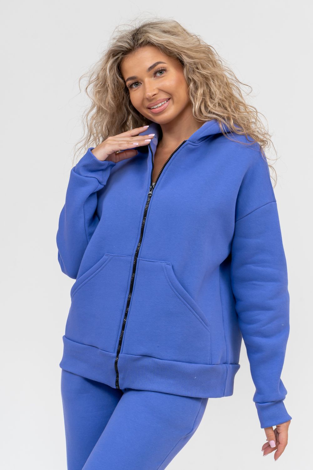 Стильная толстовка выполнена из качественного футера 3-нитки с начёсом, который обладает необыкновенной мягкостью, натуральностью, гипоаллергенностью (не раздражает кожные покровы и не провоцирует аллергическую реакцию), гигроскопичностью (толстовка из футера с начесом вбирает и удерживает влагу в волокнах), износостойкостью (полотно отличается повышенной прочностью, устойчиво к повреждениям) и формоустойчивостью (при правильном уходе и стирке 30-40 °С), и обеспечивает максимальное удобство и комфорт при носке. "Zip hoodi" свободного силуэта, которую дополняет: рукав с актуальной сейчас спущенной линией плеча, удобные карманы кенгуру и манжеты. Молния выполнена из качественных пластиковых зубьев закрепленных на прочной тесьме, что обеспечивает плавное скольжение бегунка. Длина рукава указана от точки основания шеи. Толстовка прекрасно подходит для вечерних и повседневных образов, для прогулок и занятий спортом, а также для дома. Худи такого плана не сковывает движения, поэтому идеально подойдёт для беременных и мам с детьми. Наша толстовка сделает комфортным любое Ваше путешествие. А большой и тёплый капюшон защитит Вас от непогоды. Наша продукция отличается высоким качеством, доступной ценой и упакована в практичные ZIP- пакеты.