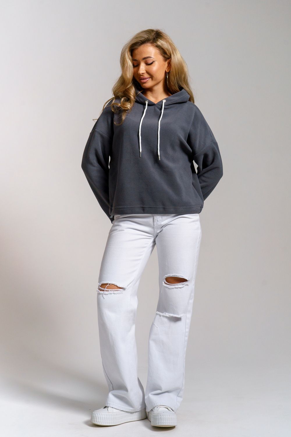 Женская толстовка выполнена из флиса высокого качества. Флис - ткань с ворсистой поверхностью, что позволяет эффективно сохранять тепло. Материал прочный, эластичный, влагостойкий. Хорошо пропускает влагу, при этом не впитывает ее. По теплостойкости превосходит шерсть, но намного легче. Воздухопроницаемая гигроскопичная ткань создает для тела комфортный микроклимат. Материал гипоаллергенный, подходит для изготовления одежды детям, в том числе новорожденным. Изделия из флиса легкие, не мнутся, не деформируются, не вытягиваются. В такой одежде удобно и комфортно. Эластичность материала позволяет легко двигаться. Толстовка с капюшоном и шнурком. Линия плеча спущена, длинный рукав. По низу толстовки имеется резинка с фиксатором, с помощью которой Вы можете собрать изделие как вам хочется и нравится. Свободный крой прекрасно будет смотреться на дамах с любыми формами. Толстовка такого плана представлена в широкой размерной сетке, что позволяет выбрать её как девушке, так и женщине. Однотонная толстовка модных расцветок будет удачным выбором для поездок в отпуск, на пикник, для школы, для активного отдыха и прогулок по городу. Будет гармонично сочетаться с брюками, джинсами, кроссовками и ботинками. Используя эту модель в качестве домашней одежды Вы поймёте, что это именно тот самый идеальный вариант, в котором будете себя чувствовать удобно, комфортно и современно. Толстовка - это настоящая находка для тех, кто ценит свою индивидуальность!