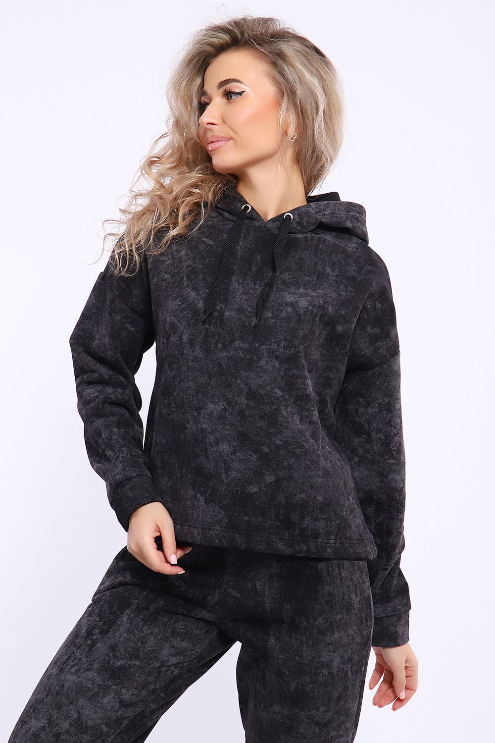 Женская толстовка выполнена из футера на меху высокого качества с дизайном варёнка. Вареная ткань - особым образом обработанная ткань, что придает ей некий красивый, специфический цвет. Эта ткань обладает мягкой текстурой и повышенной теплоизоляцией благодаря наличию меха. Она сочетает в себе прочность, что делает ее отличным вариантом для пошива спортивной одежды. Материал отличается уникальными свойствами: футер на меху способен удерживать тепло, обеспечивая максимальный комфорт в холодное время года. Его хорошо использовать для изготовления теплых толстовок и костюмов. Ткань выполнена из высококачественного сырья и обладает высокой износостойкостью. Она не теряет форму после стирки и не выцветает, что гарантирует долгий срок службы вашего изделия. Толстовка с капюшоном и шнурком. Линия плеча спущена, длинный рукав. По низу толстовки имеется резинка с фиксатором, с помощью которой Вы можете собрать изделие как вам хочется и нравится. Свободный крой прекрасно будет смотреться на дамах с любыми формами. Толстовка такого плана представлена в широкой размерной сетке, что позволяет выбрать её как девушке, так и женщине. Толстовка модных расцветок будет удачным выбором для поездок в отпуск, на пикник, для школы, для активного отдыха и прогулок по городу. Будет гармонично сочетаться с брюками, джинсами, кроссовками и ботинками.