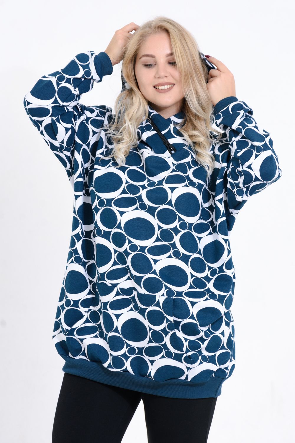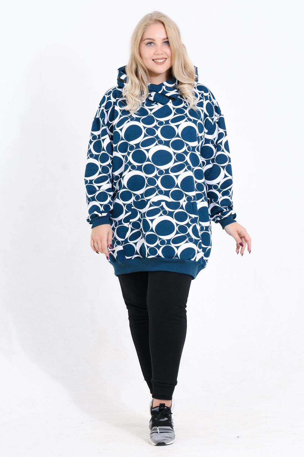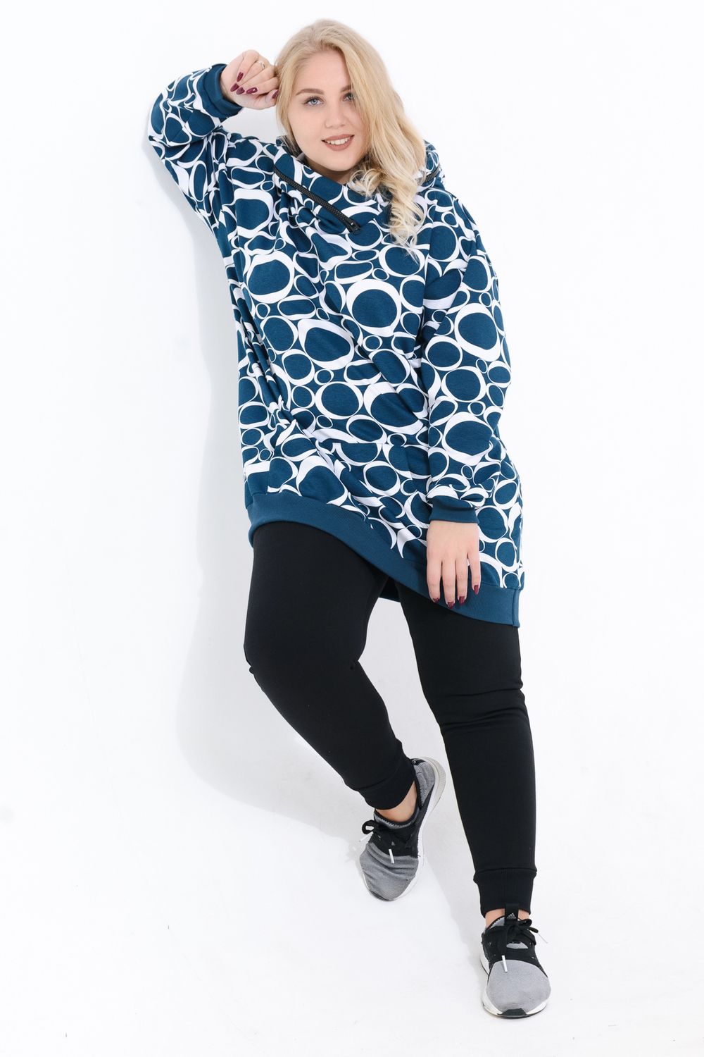 Платье-толстовка - сочетание женственности и практичности. Она служит основой для образов в спортивном и повседневном стилях. Толстовка имеет свободный удлиненный крой. Высокий капюшон с декоративной отделкой молнией, накладной карман. Чаще всего под платье-толстовку надевают колготки, как тонкие капроновые, так и теплые. Также толстовка будет хорошо смотреться с джинсами и леггинсами. Осенью поверх платья-толстовки можно смело надевать бомберы и кожаные куртки. С этой универсальной моделью комбинировать можно бесконечно!