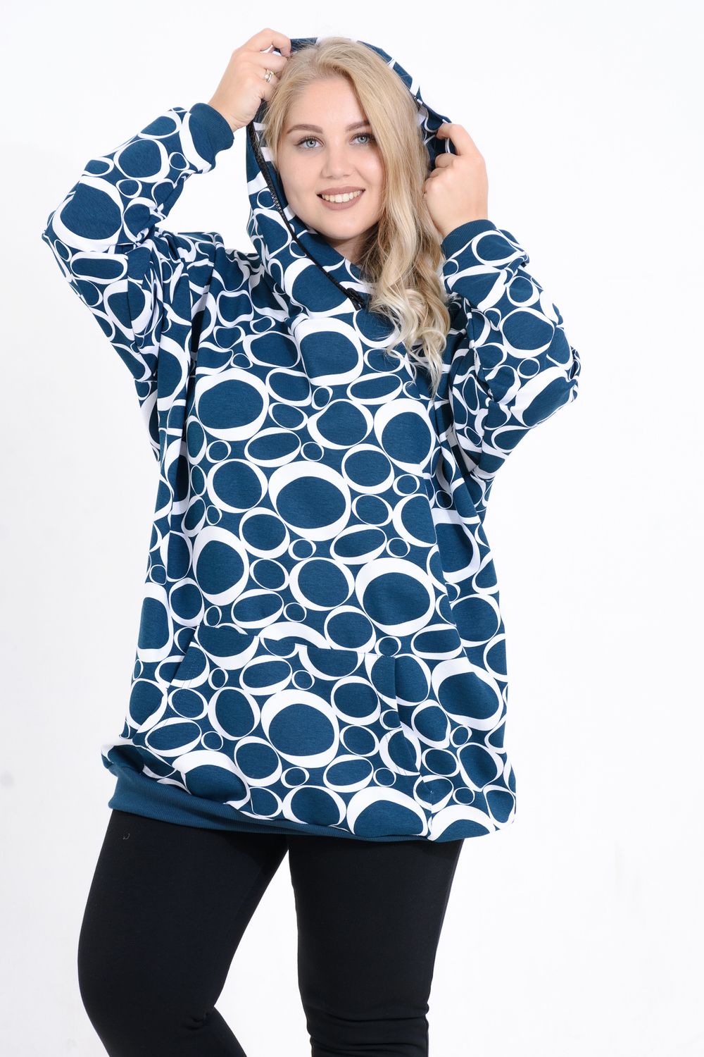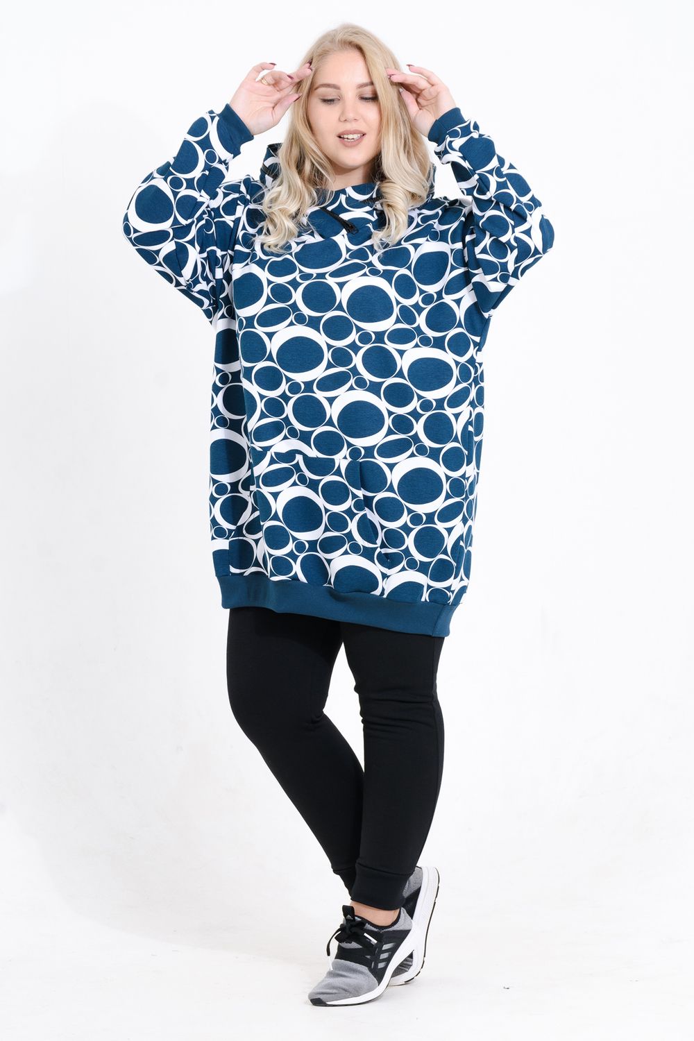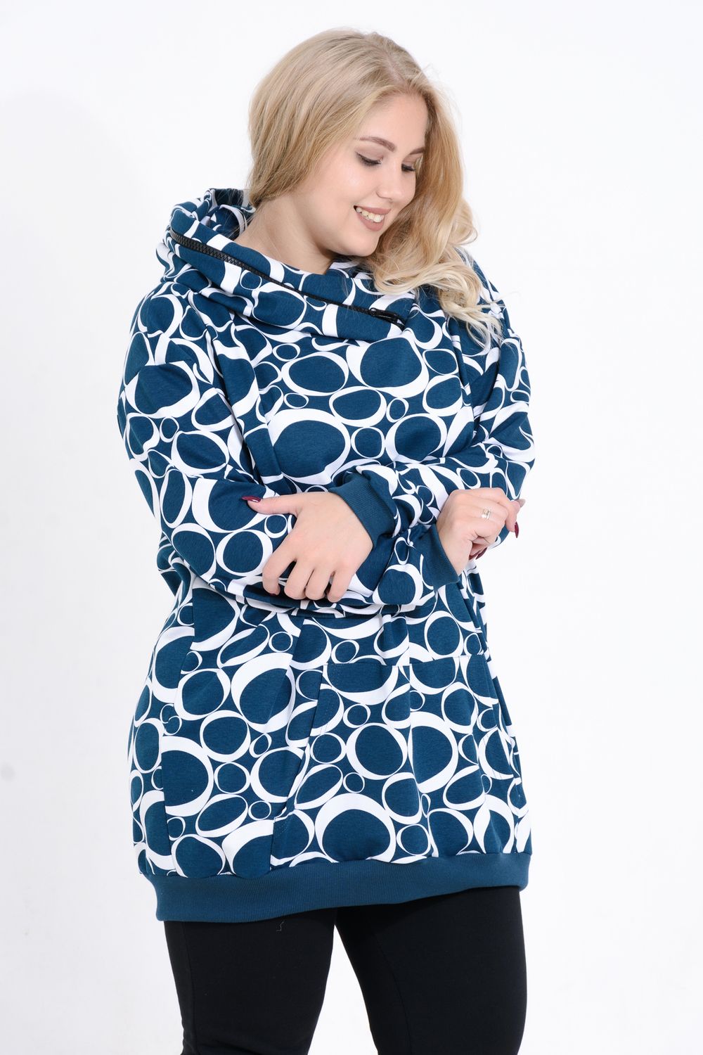 Платье-толстовка - сочетание женственности и практичности. Она служит основой для образов в спортивном и повседневном стилях. Толстовка имеет свободный удлиненный крой. Высокий капюшон с декоративной отделкой молнией, накладной карман. Чаще всего под платье-толстовку надевают колготки, как тонкие капроновые, так и теплые. Также толстовка будет хорошо смотреться с джинсами и леггинсами. Осенью поверх платья-толстовки можно смело надевать бомберы и кожаные куртки. С этой универсальной моделью комбинировать можно бесконечно!
