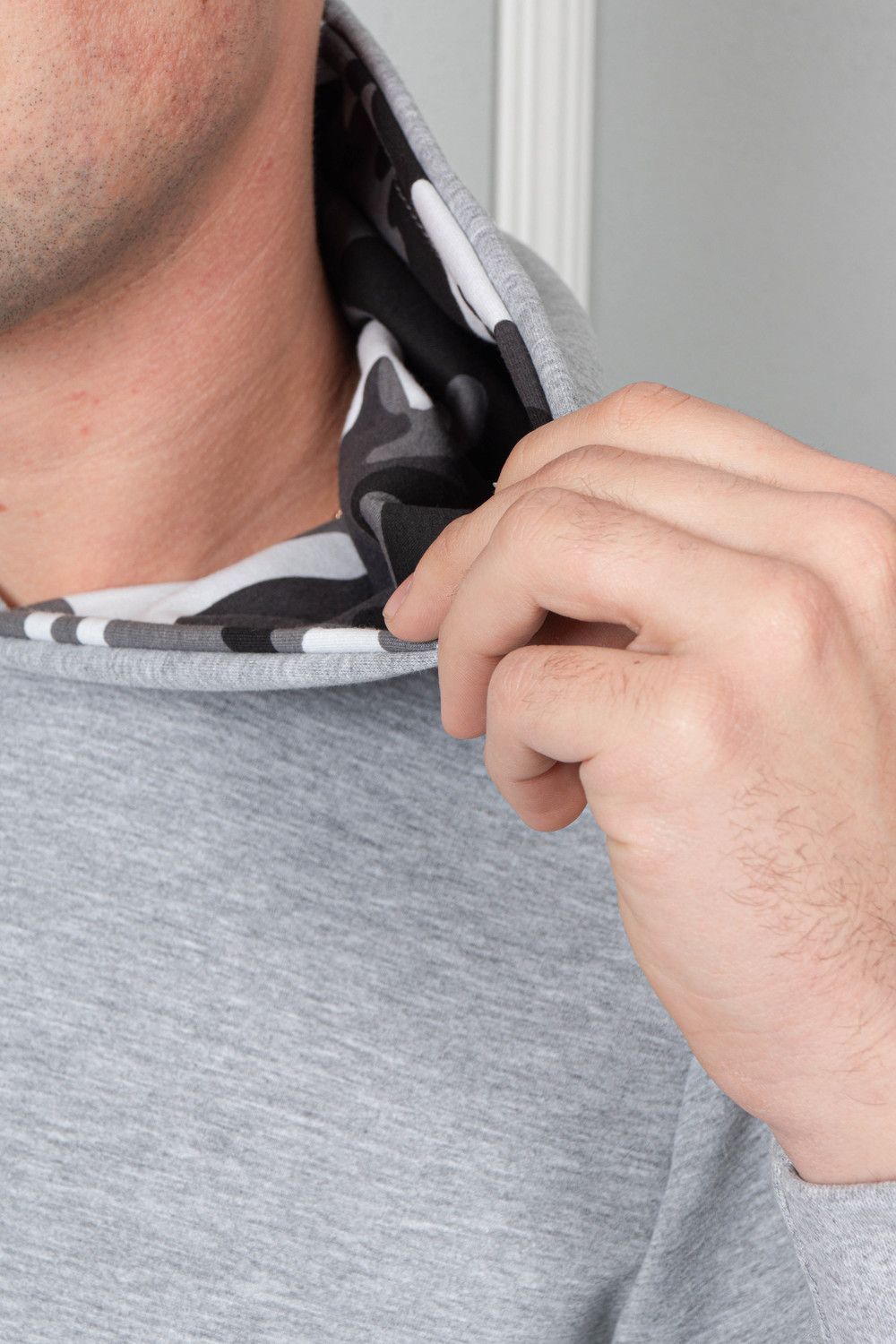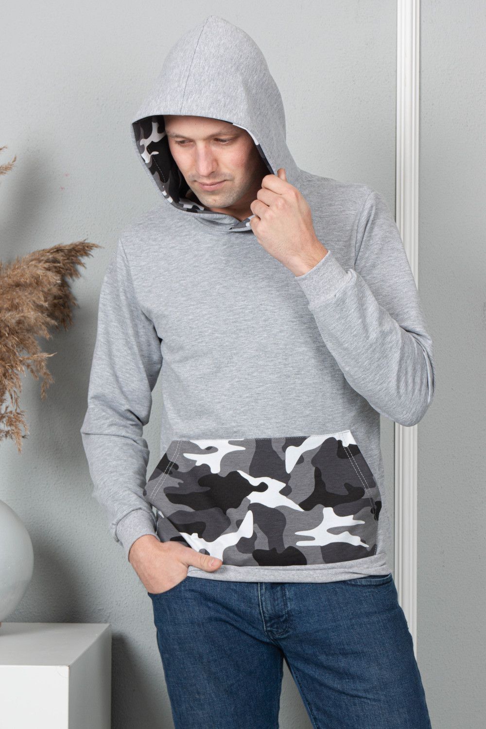 Толстовка в стиле милитари. Изготовлена из футера 2-х нитки. Характеризуется практичностью в носке и отличным внешним видом. Внутренняя часть капюшона и кармана - кенгуру отделана футером, расцветка камуфляж. Свободный крой изделия придаёт комфорт и не сковывает движений. Манжеты и пояс изготовлены из эластичного материала - рибана с лайкрой.