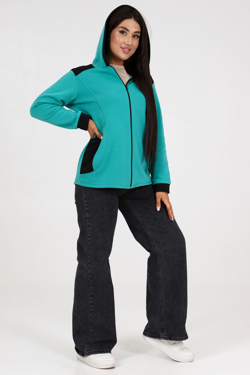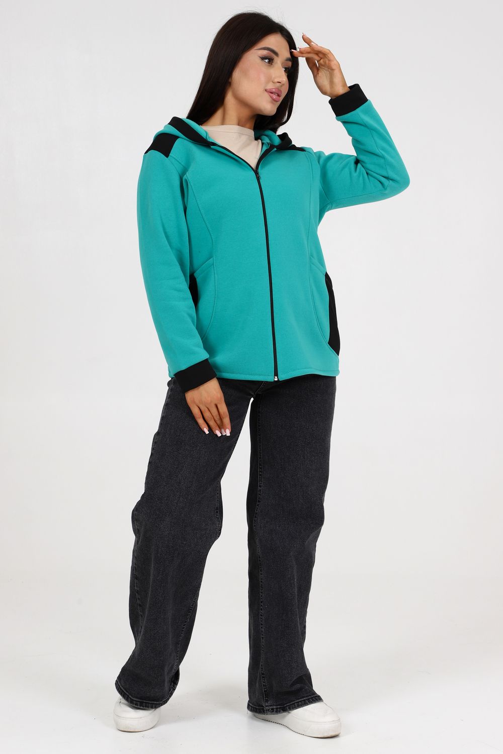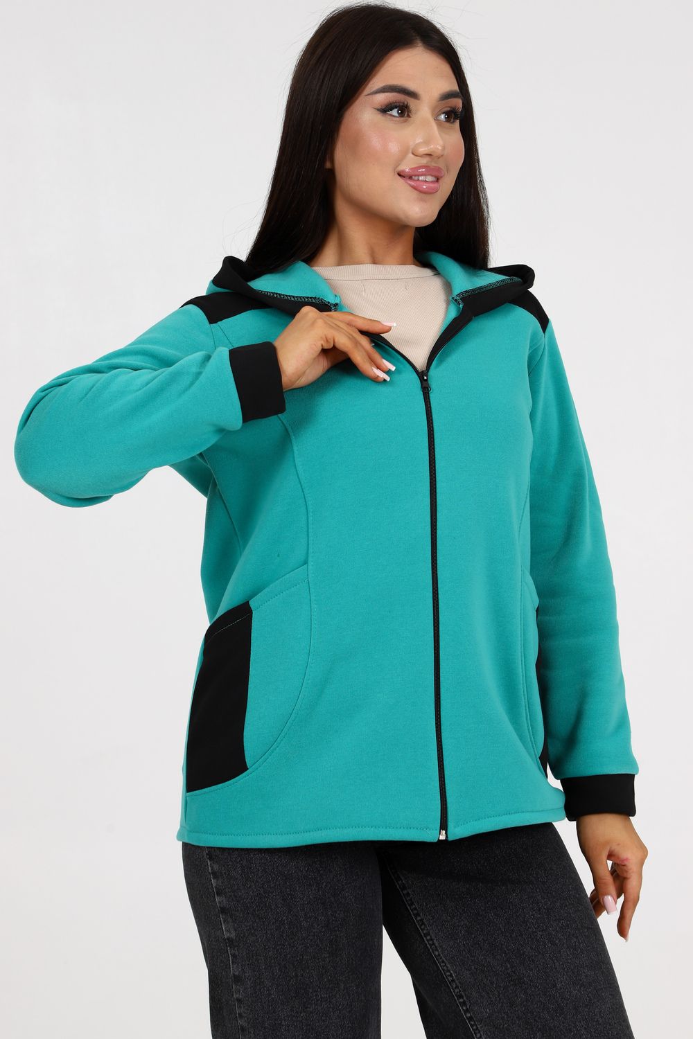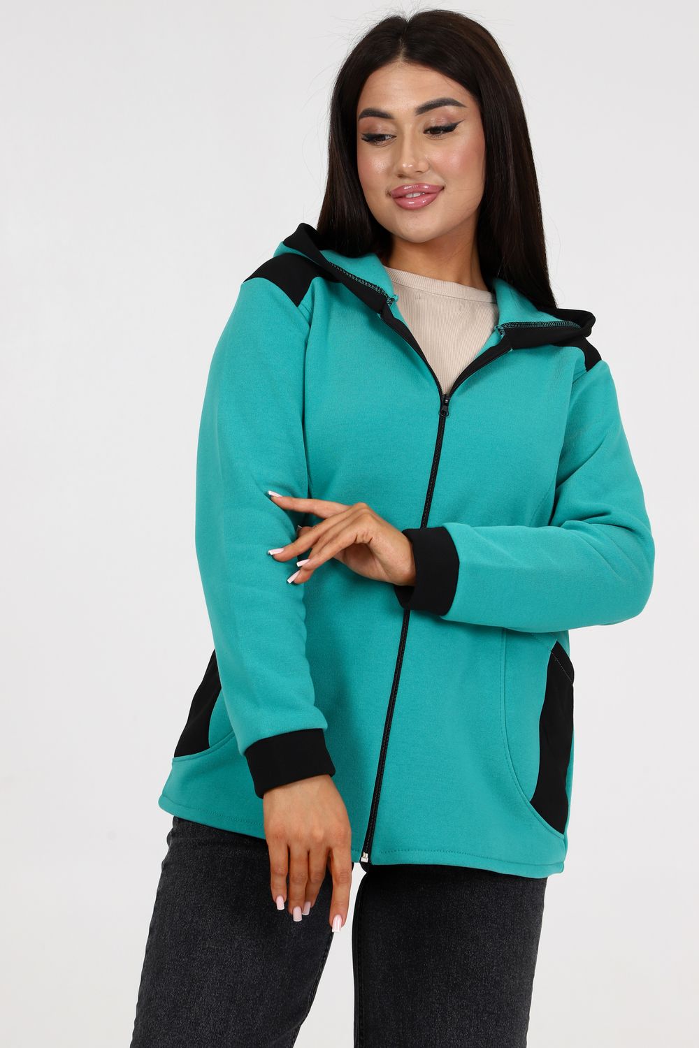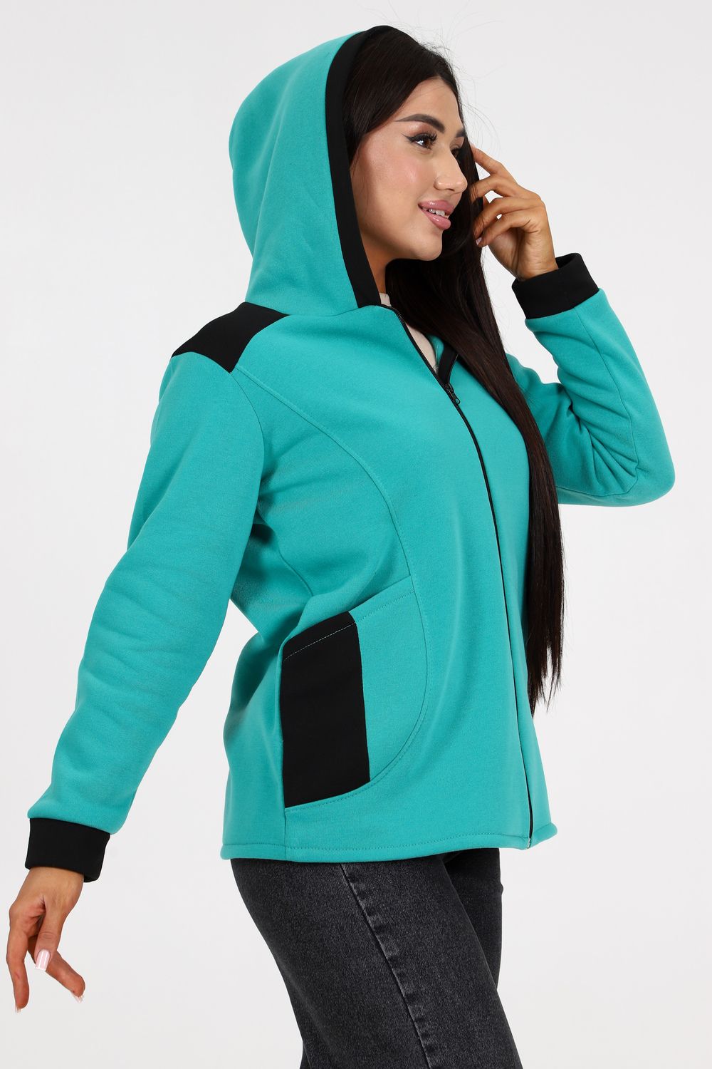 Толстовка женская утепленная на молнии с капюшоном. Длинный рукав на манжете, на передней полочке рельефы, в которых расположены карманы. Практично и удобно. В бежевой расцветке возможны вставки коричневого и рыжего цветов.