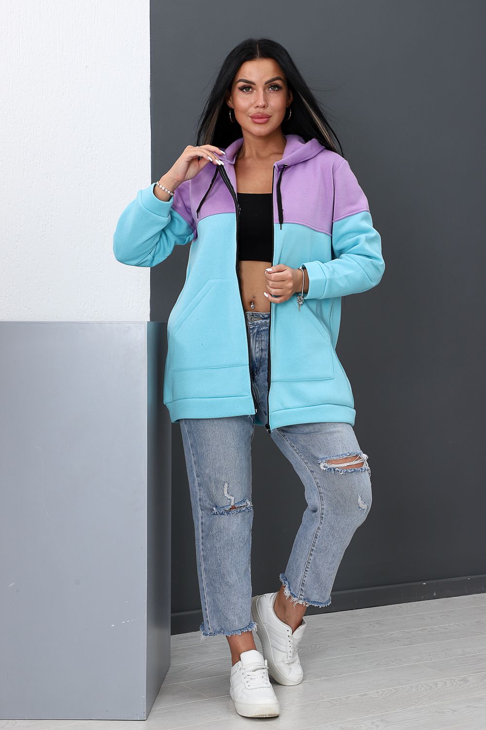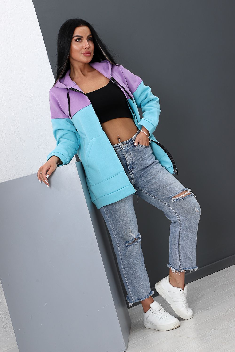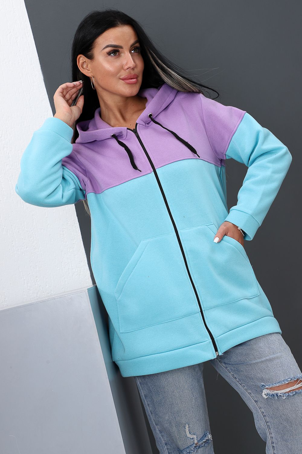 Толстовка женская на молнии, с капюшоном на шнуровке через люверсы. Накладные карманы "кенгуру", рукав и низ изделия на манжете. Теплая и удобная.