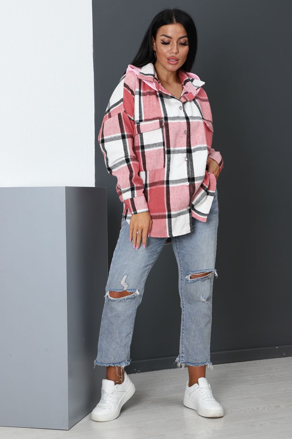 Толстовка женская на пуговицах с капюшоном. Рукав на манжете(длина от шва), застежка на пуговицу. Воротник рубашечного типа, на груди накладные карманы. Изделие состоит из разных тканей. Удобная и практичная. Капюшон из футера 2-х нитки.
