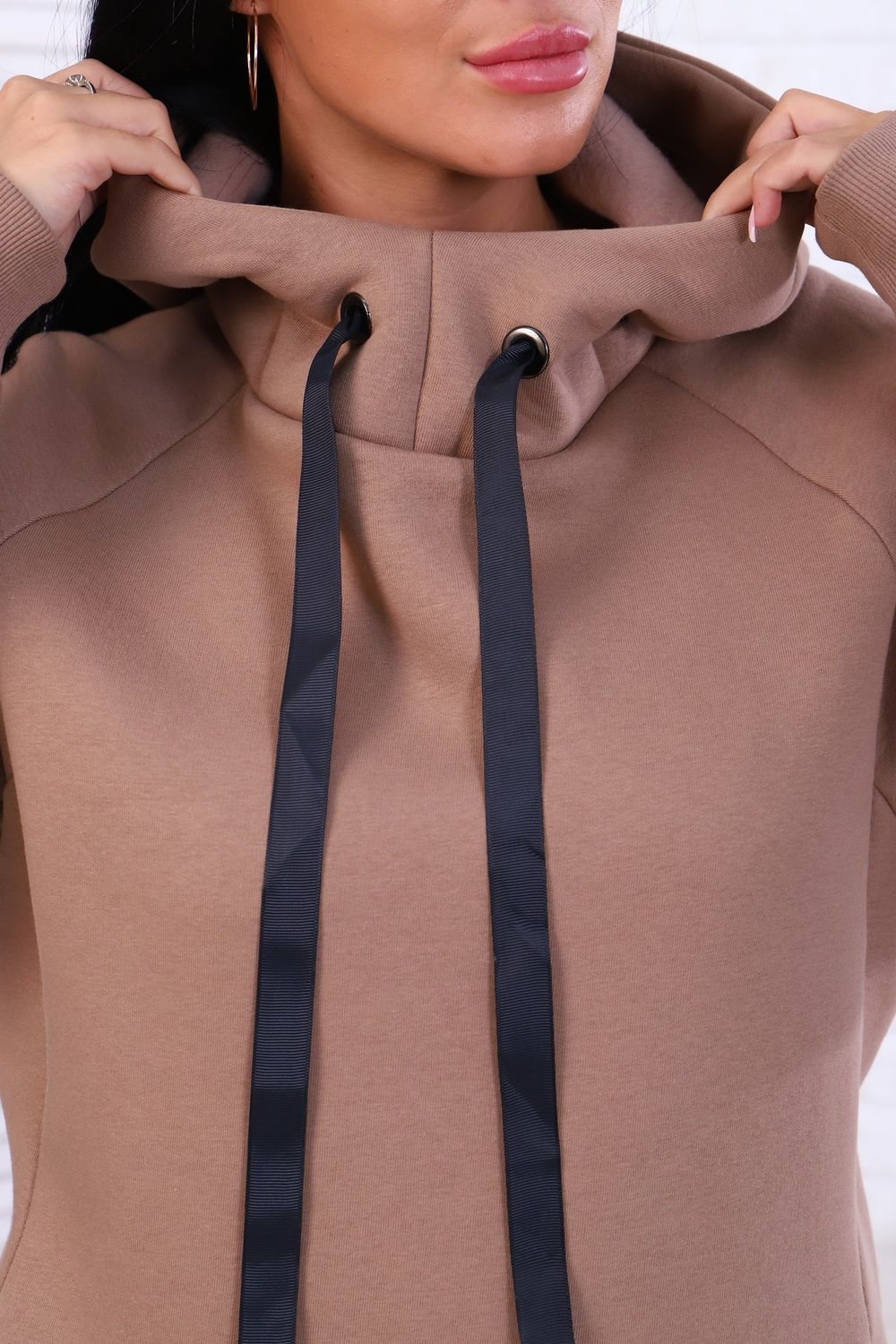 Толстовка женская: рукав реглан с манжетами, капюшон с люверсами и с отделочной лентой, 2 внутренних кармана, низ изделия - пояс из кашкорсе