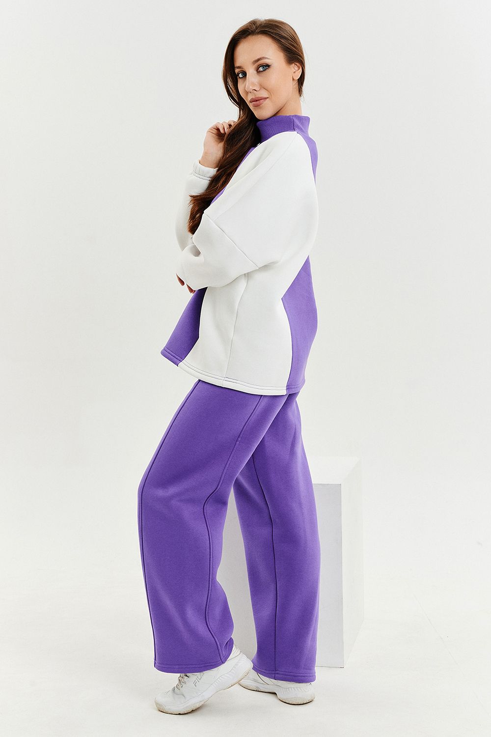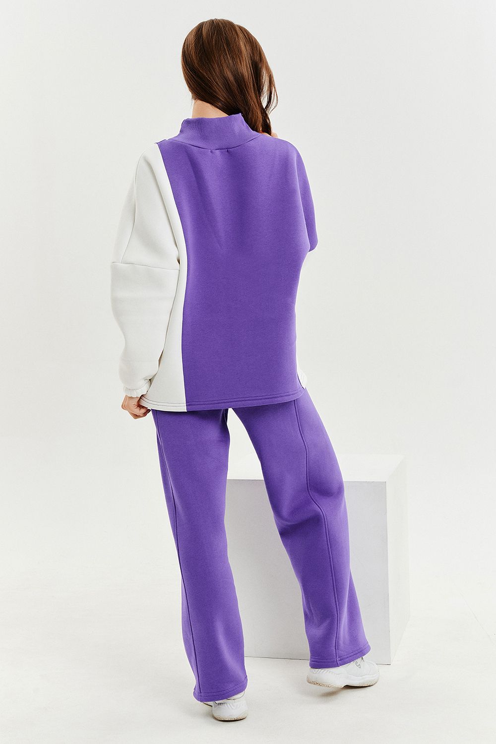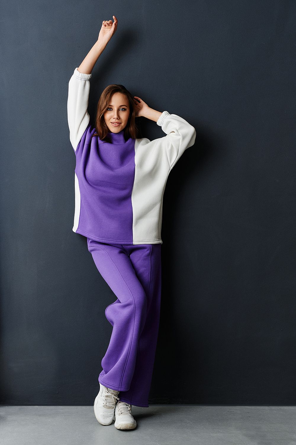 Свитшот oversize женский. Материал - футер с начёсом. Сезон - осень-зима. Свитшот выполнен в технике Color Block (цветовые блоки). Модель свободная, объемная, прямого силуэта. Горловина выполнена из кашкорсе. Рукав со спущенной проймой, манжета на резинке. Рукава разного цвета. По бокам полочки - разномасштабные, округлые вставки.
