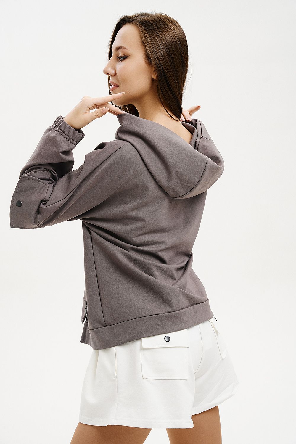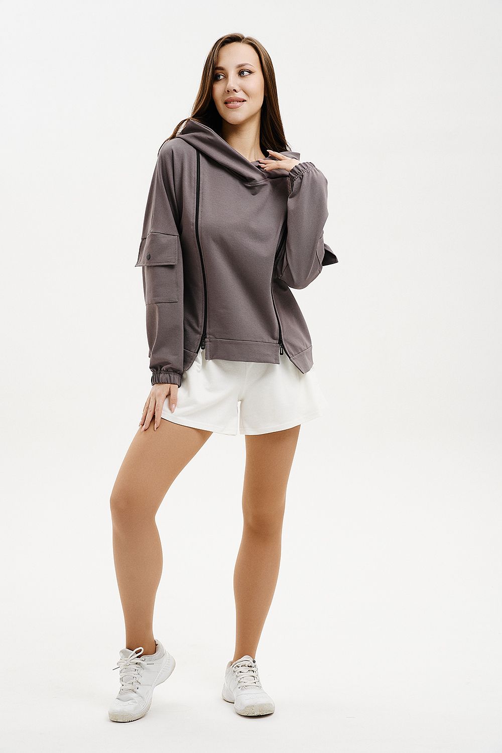 Женская толстовка с двумя молниями, капюшоном, карманами на рукавах. Свободного силуэта для тех, кто ценит комфорт.