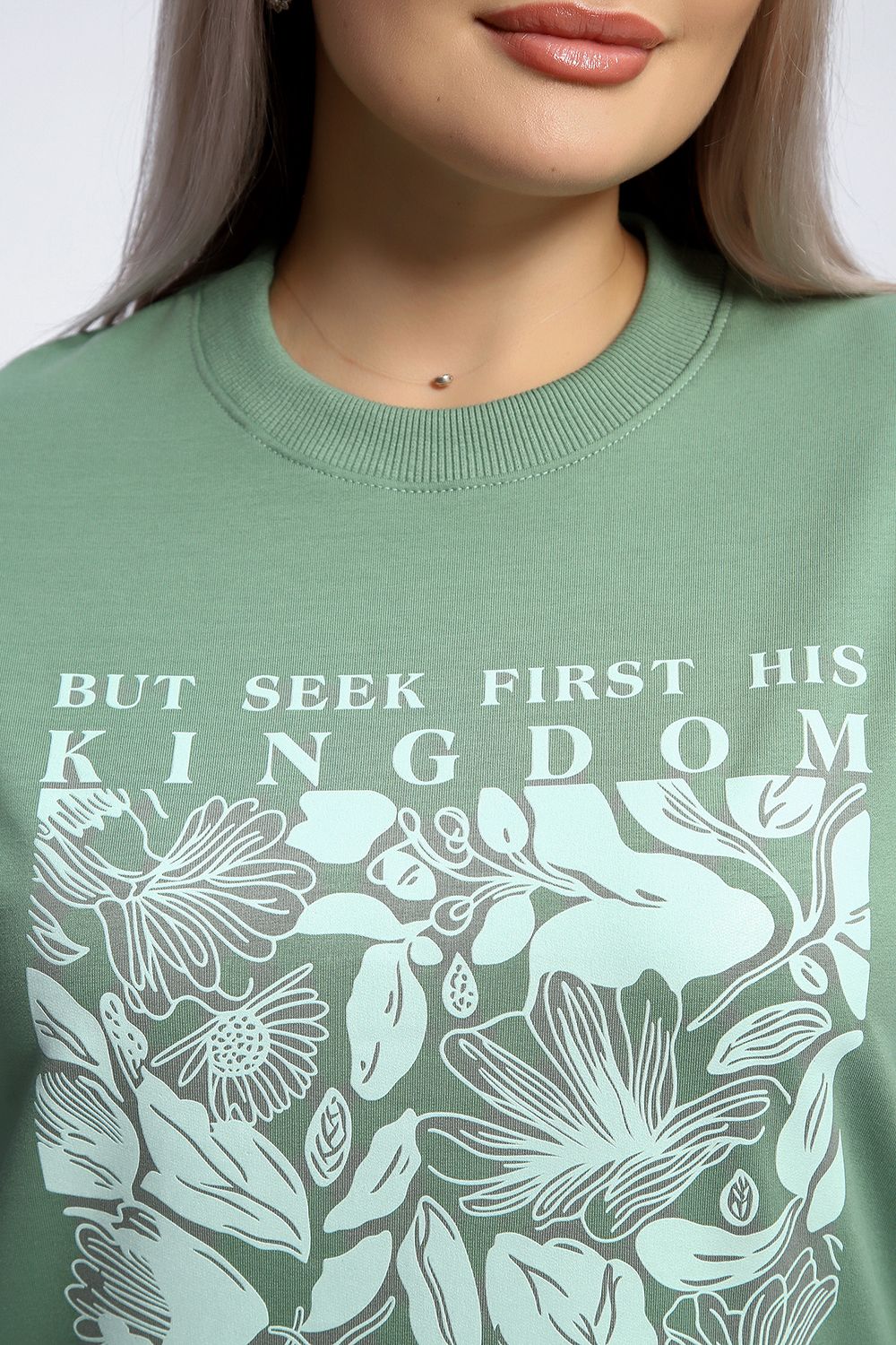 Толстовка свободного кроя "оверсайз" со спущенной линией плеча прекрасный вариант для прохладной погоды! Мягкое, эластичное кашкорсе в тон ткани использовано для отделки горловины, манжет и пояса. На полочке декоративный принт.