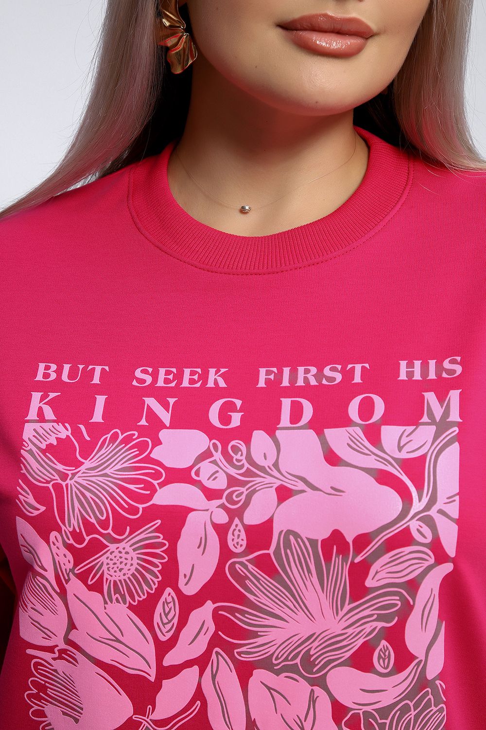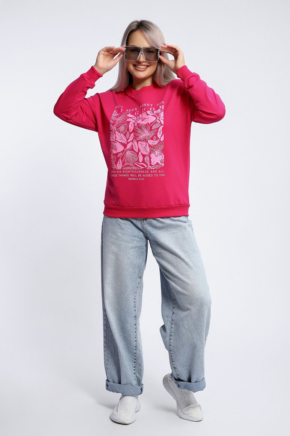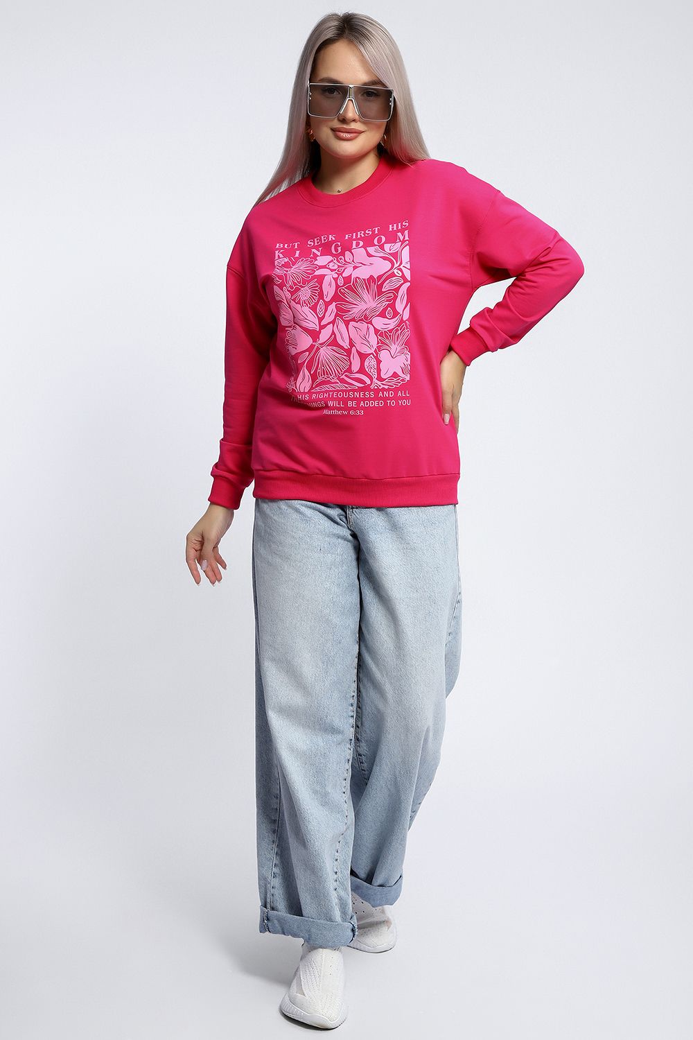 Толстовка свободного кроя "оверсайз" со спущенной линией плеча прекрасный вариант для прохладной погоды! Мягкое, эластичное кашкорсе в тон ткани использовано для отделки горловины, манжет и пояса. На полочке декоративный принт.
